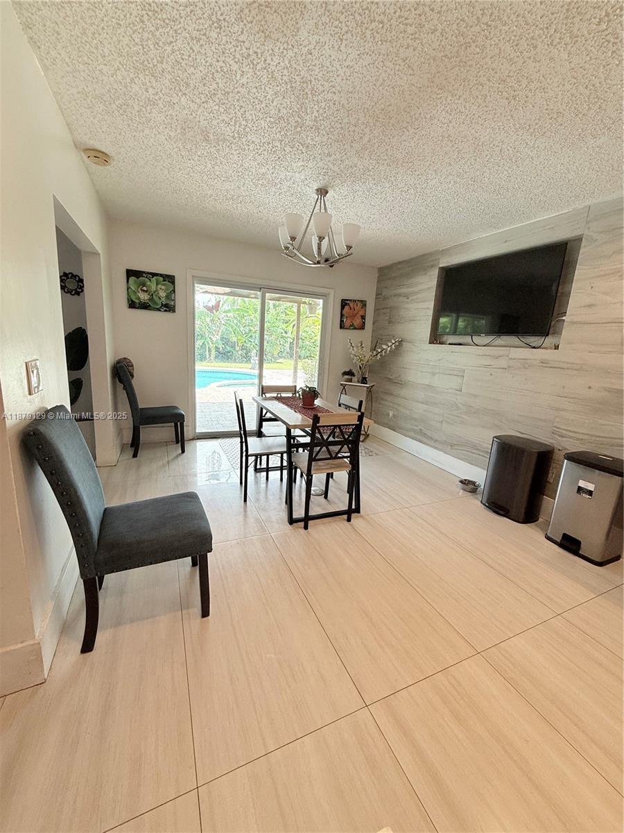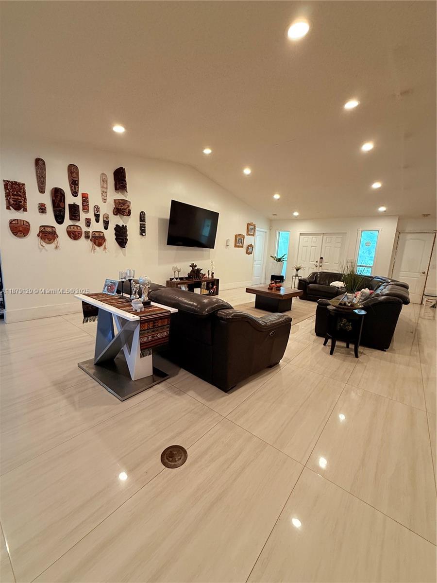 Beautiful single-family home featuring 3 bedrooms, 2 baths plus a den. Enjoy a spacious layout, new kitchen, updated bathrooms, and elegant porcelain floors throughout. The garage is currently an office but can easily be converted back if desired. Step outside to your private pool, surrounded by lakerfront and fruit trees, passion fruit, mango , avocado, papaya, coconut, lime and more. A circular paver driveway adds curb appeal and convenience. This home blends comfort, style, and outdoor living—perfect for relaxing or entertaining.