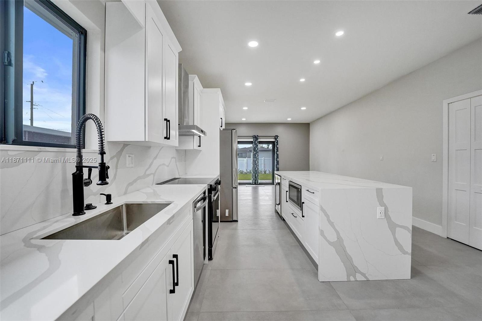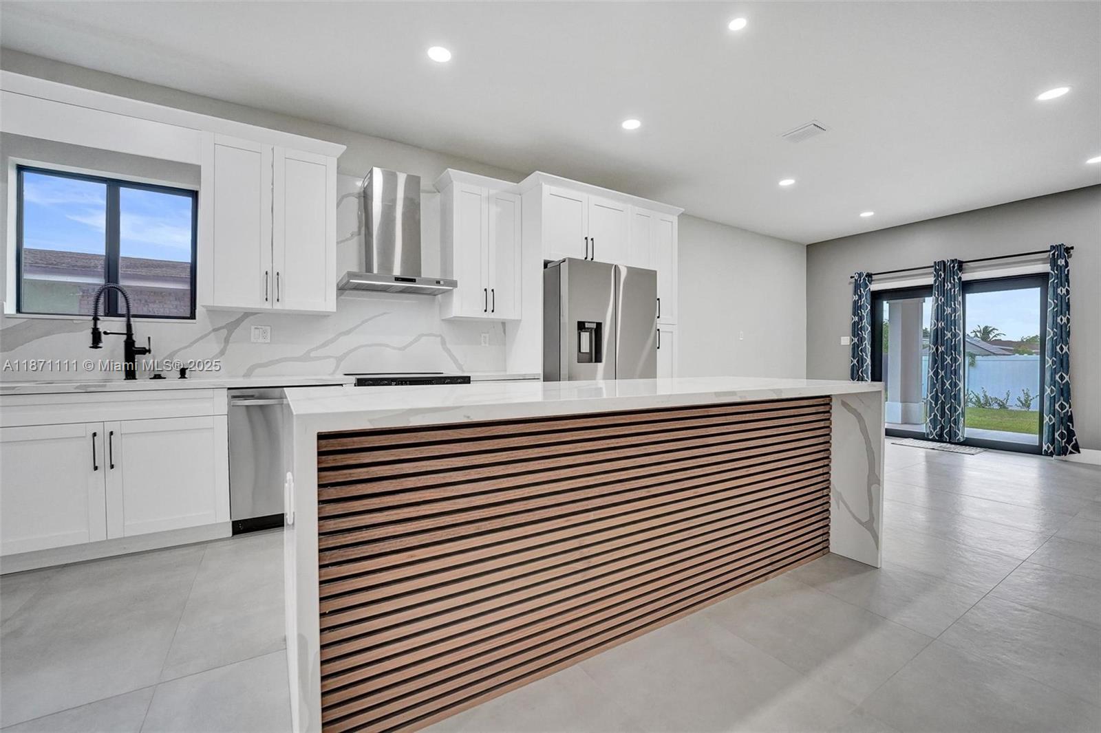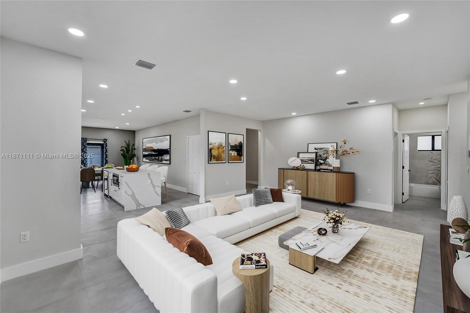 Stunning new construction minutes to the beach, Hard Rock Hotel & Casino, Hard Rock Stadium & Gulfstream Park. Designer-finished 4BR/3BA features an open-concept split bedroom plan, sleek porcelain tile, impact windows/doors & custom closets. Chef's kitchen showcases a quartz waterfall island & stainless steel appliances. Luxe primary suite offers an oversized custom closet & spa bath w/ separate shower & soaking tub. Two tankless water heaters. Expansive lanai extends outdoor living—ideal for entertaining. Large fenced yard w/ irrigation & room for a pool. 1-car garage w/ its own A/C for multipurpose use. No HOA! Not in a flood zone. Close to the airport for easy travel—central to beaches, stadiums, shops, dining, nightlife. Hurry, won't last!!!