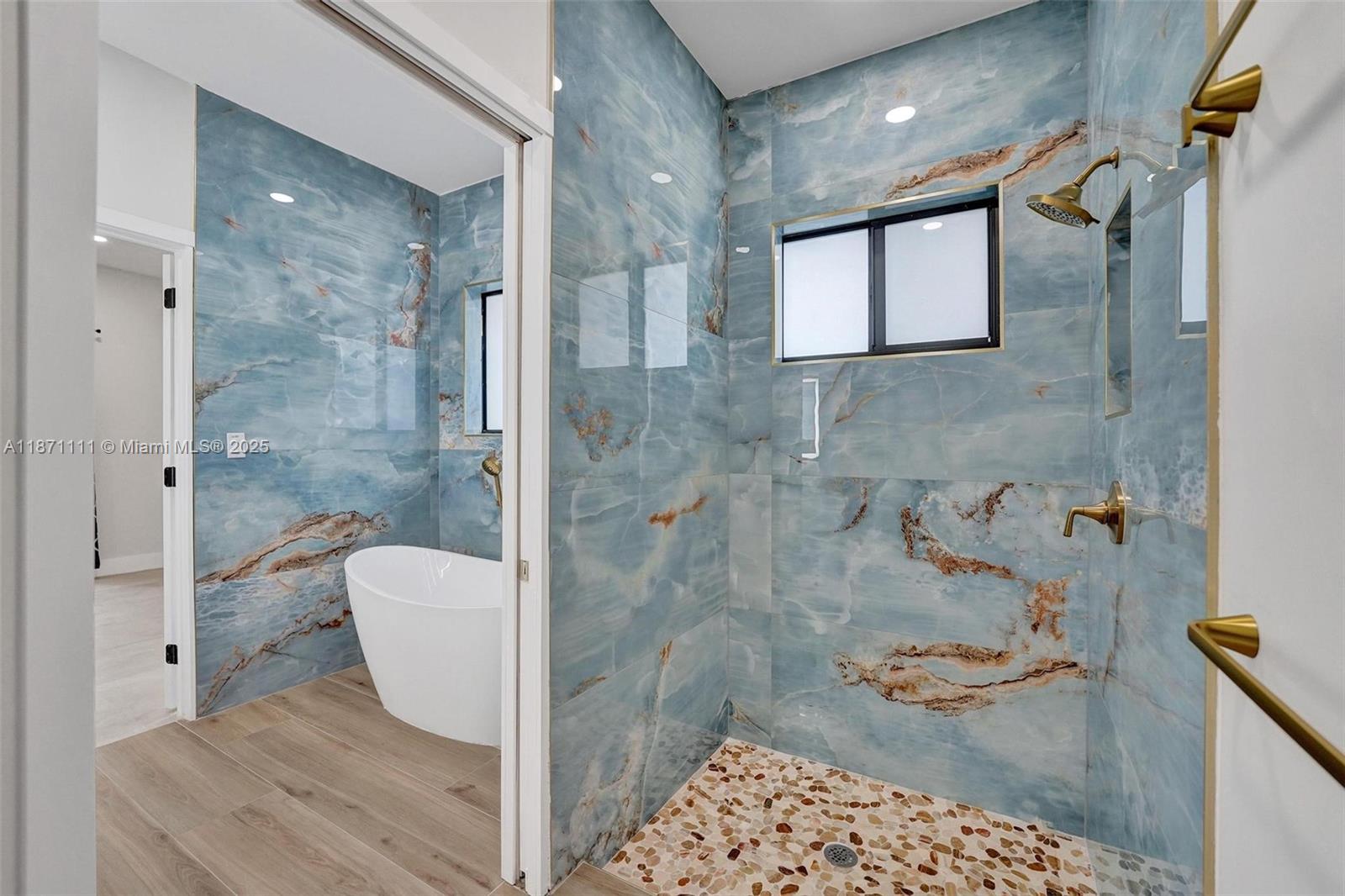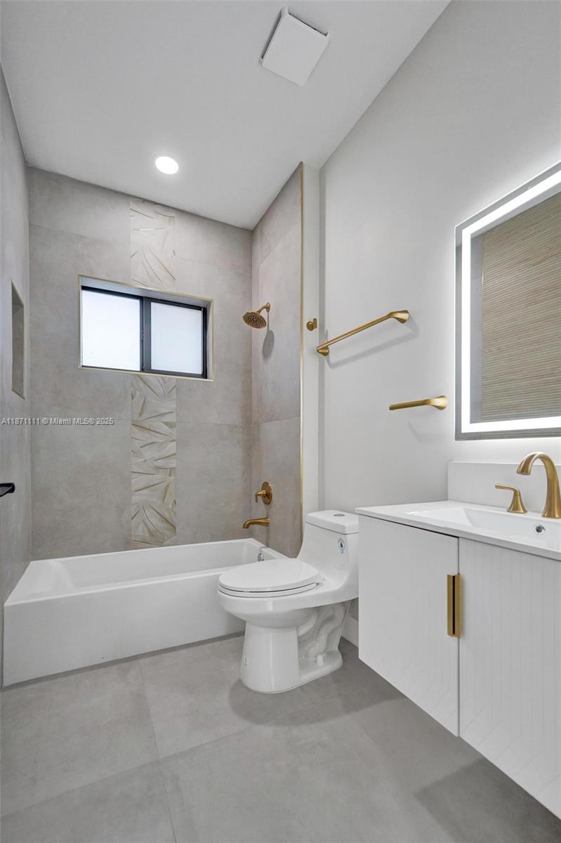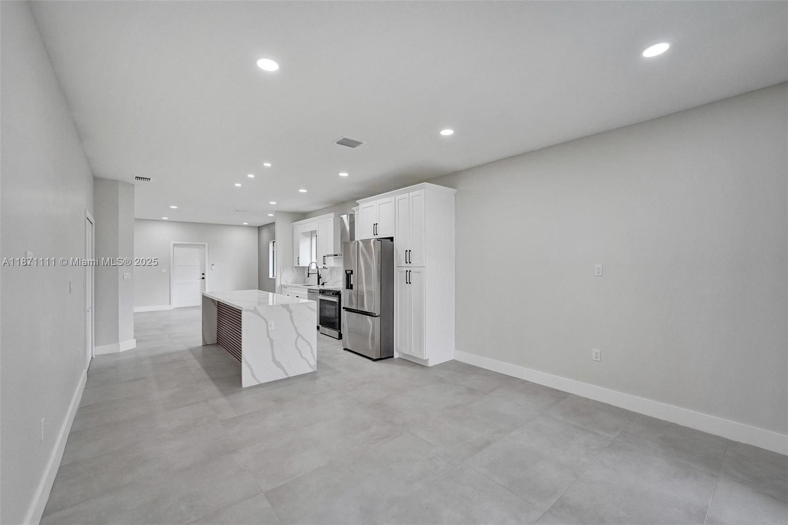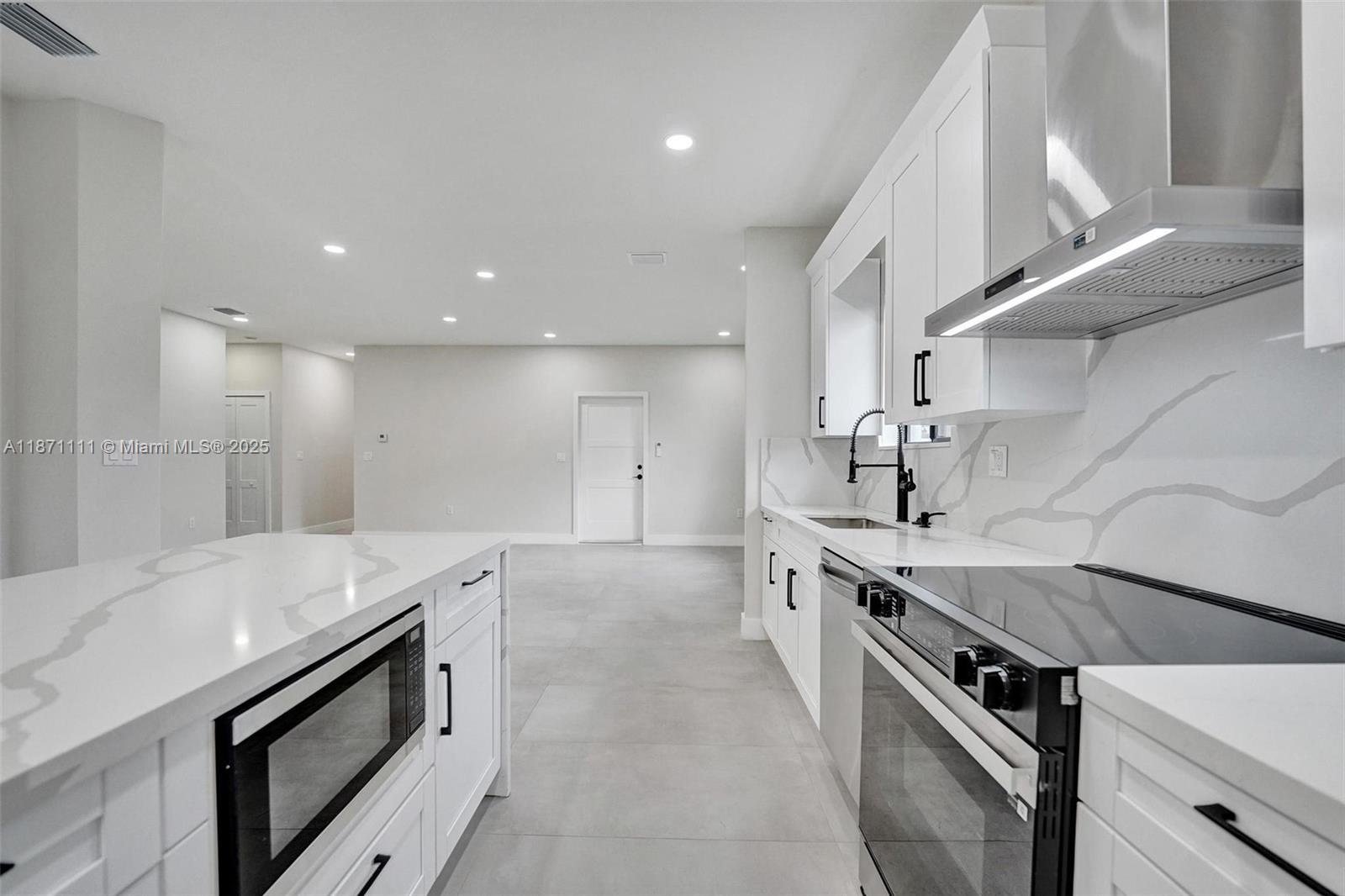 Stunning new construction minutes to the beach, Hard Rock Hotel & Casino, Hard Rock Stadium & Gulfstream Park. Designer-finished 4BR/3BA features an open-concept split bedroom plan, sleek porcelain tile, impact windows/doors & custom closets. Chef's kitchen showcases a quartz waterfall island & stainless steel appliances. Luxe primary suite offers an oversized custom closet & spa bath w/ separate shower & soaking tub. Two tankless water heaters. Expansive lanai extends outdoor living—ideal for entertaining. Large fenced yard w/ irrigation & room for a pool. 1-car garage w/ its own A/C for multipurpose use. No HOA! Not in a flood zone. Close to the airport for easy travel—central to beaches, stadiums, shops, dining, nightlife. Hurry, won't last!!!