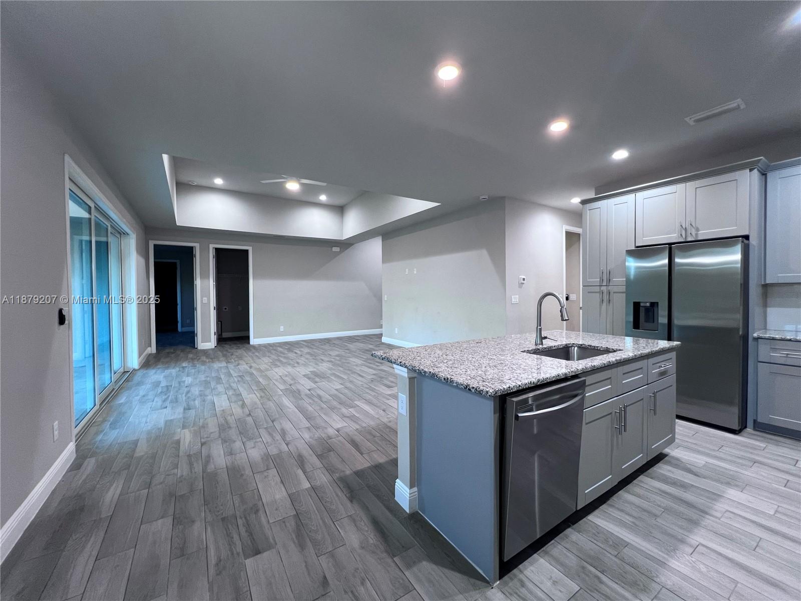 Beautiful Odessa model 4 BEDROOMS, 2 BATHROOMS. This home has a modern design including many features: Double glass door, tray ceilings, impact resistant doors and windows, all tile floors, floor to ceiling tiled master shower, 8' interior doors, 9' 4 ceiling height, stainless steel appliances, granite level 2, large size charming island, soft close cabinets, chandelier above dining room, his & her walk in closets in master bathroom, a large size master shower, double sinks in master bathroom, automatic garage door opener, ceiling fans in bedrooms and great room, irrigation system, gutters in front, laundry room with a tub near garage, large size lanai under trusses. A FREE 10 YEAR HOME WARRANTY!! (The fourth bedroom is a large office)