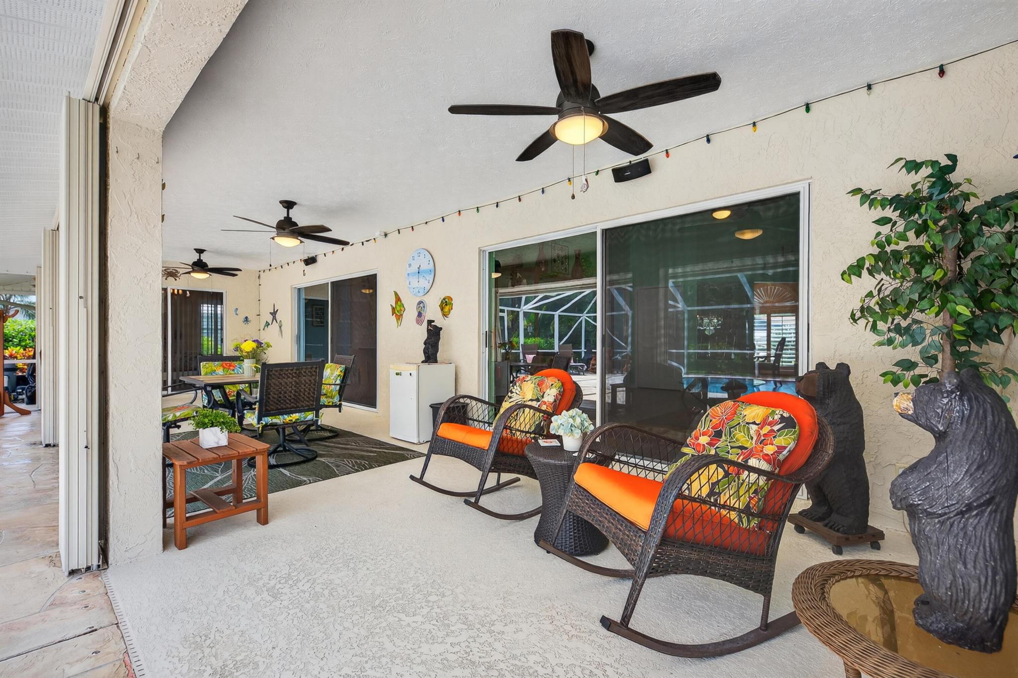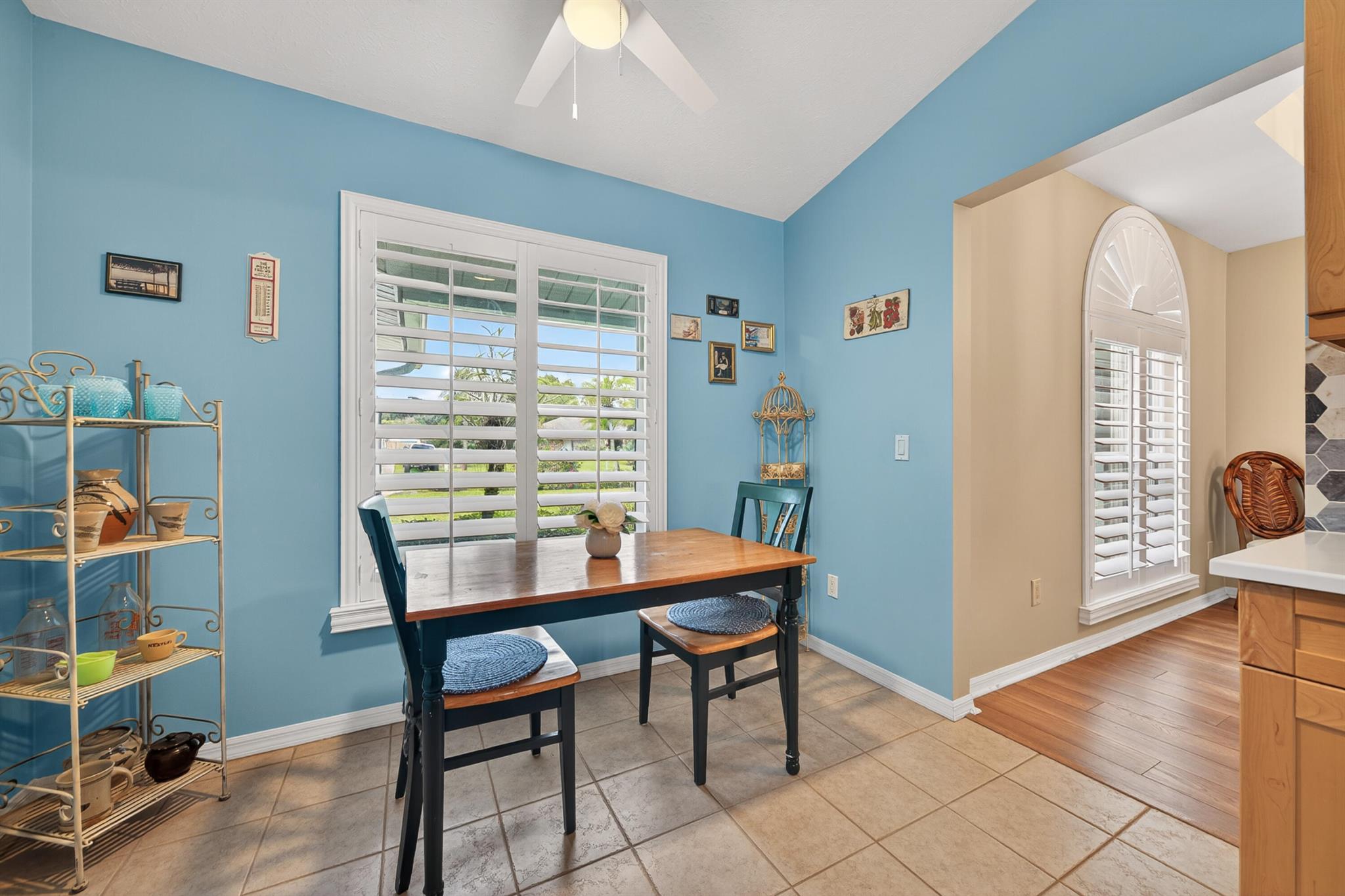 Enjoy this private half acre oasis in desirable Canoe Creek! This 4 bedroom, 2 bathroom home features an inviting pool and an expansive screened patio, perfect for entertaining or enjoying the outdoors in the large backyard. The kitchen offers beautiful wood cabinets, new quartz countertops, a striking backsplash, and updated appliances. Additional highlights include new plantation shutters, a cozy family room fireplace, and a fantastic split floor plan. A new metal roof in 2022, A/C 2019, resurfaced pool 2023, accordion shutters making this home perfect for Florida living. LOW HOA FEES. Located in the Martin County School District. with easy access to I-95 & FL Turnpike & just minutes from all Palm City has to offer-shopping, dining, parks & close to Martin County's beautiful beaches.