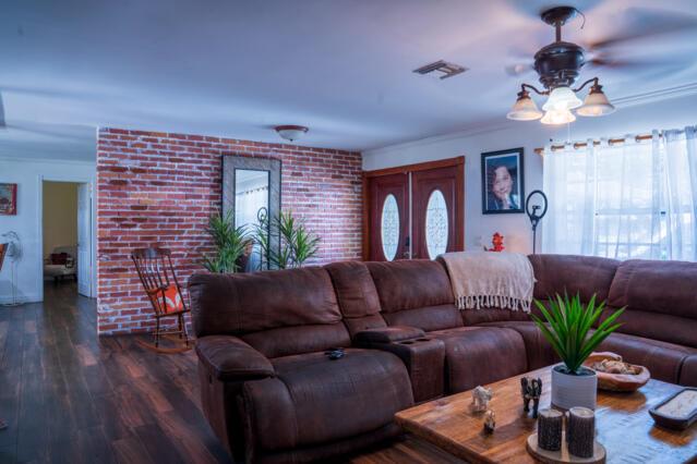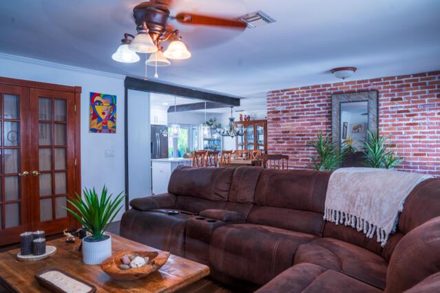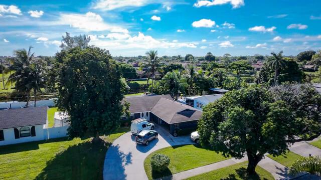 Gorgeous home on one of the largest lots in the community! This suburban oasis features a circular driveway, 2-car garage with work area, and inviting curb appeal with mature trees and a front-yard swing. The serene backyard offers a covered lanai (easily screened), large grassy area with room for a pool, and peaceful canal views. NO HOA--bring your boat or RV! This well-maintained property features an updated kitchen, tiled floors throughout, a versatile flex room The AC was replaced in 2013 and the roof is 2010. Home is on septic. Conveniently located near shopping, dining, beaches, parks, and the vibrant Downtown West Palm Beach, this home offers both comfort and convenience living and entertaining. Don't miss out!!!