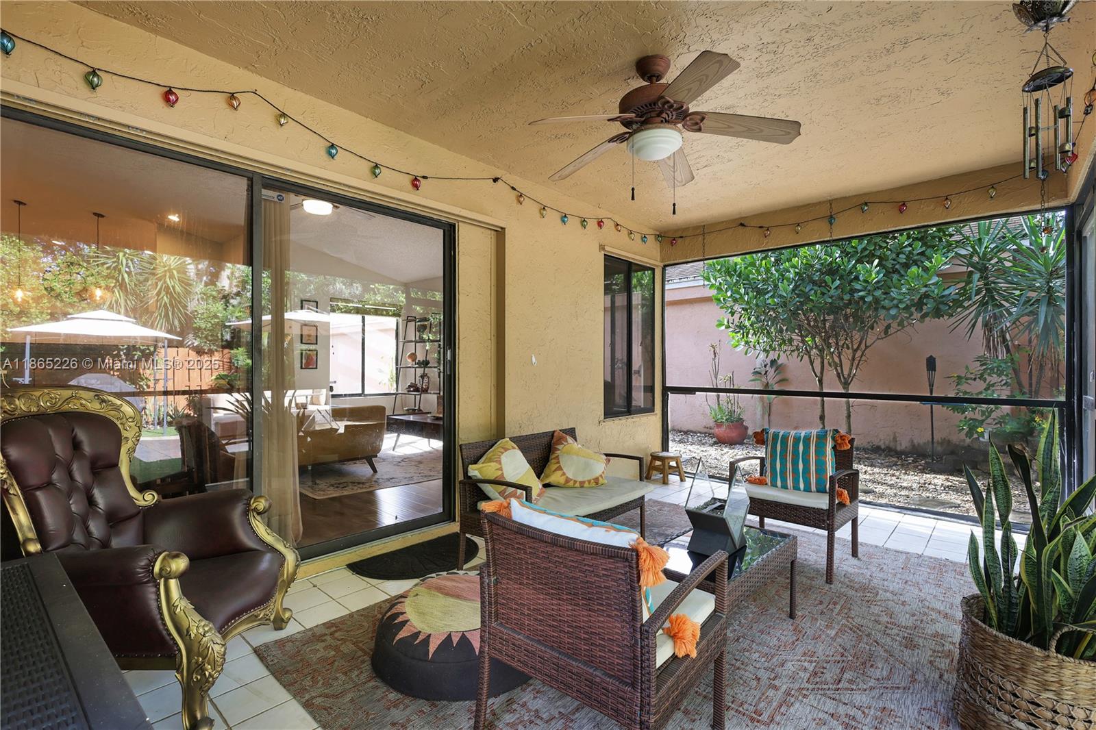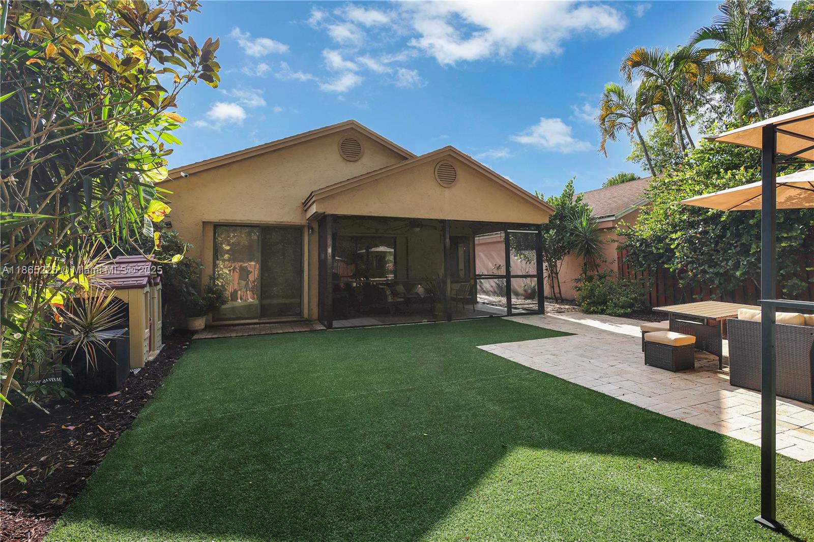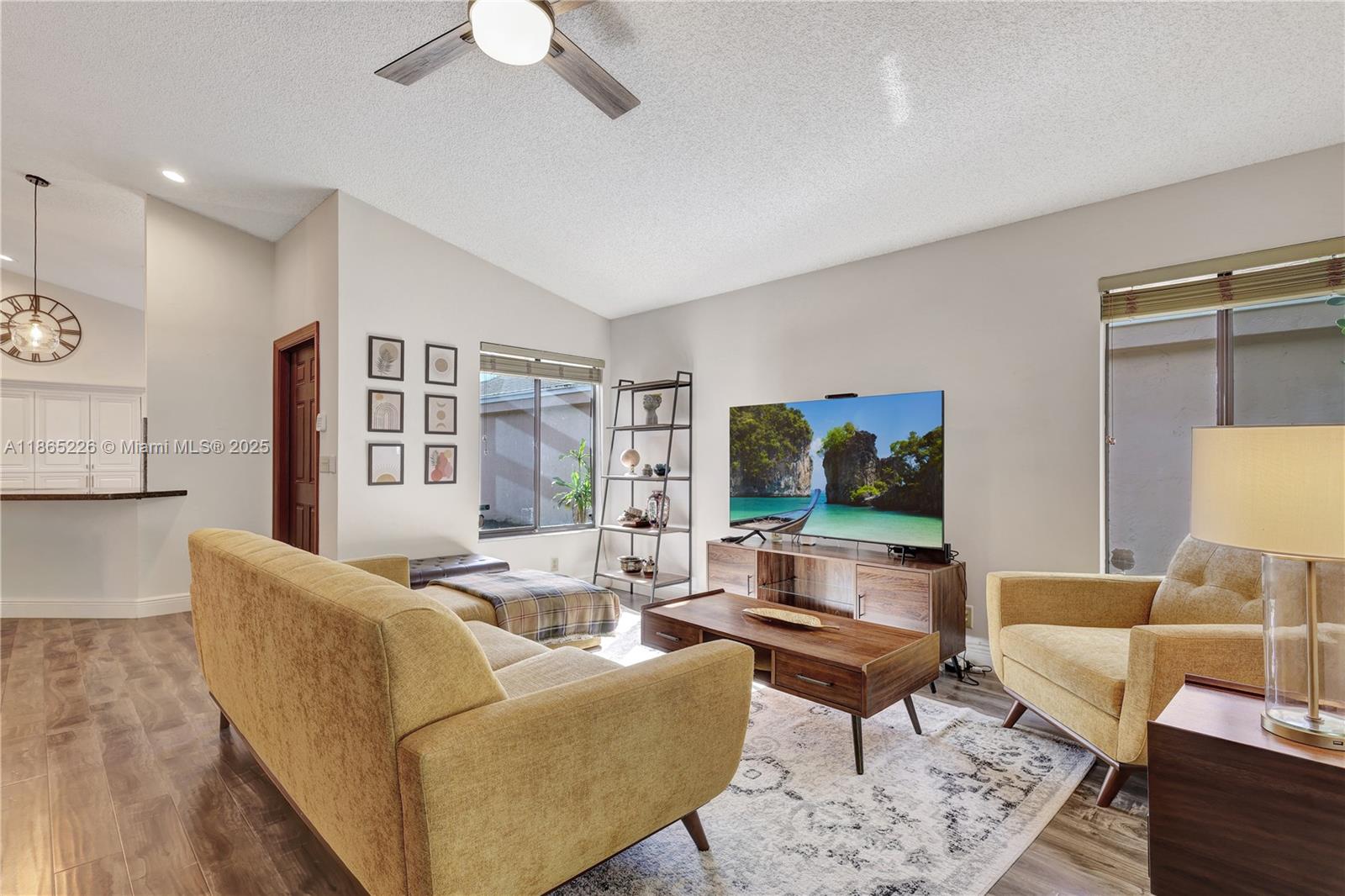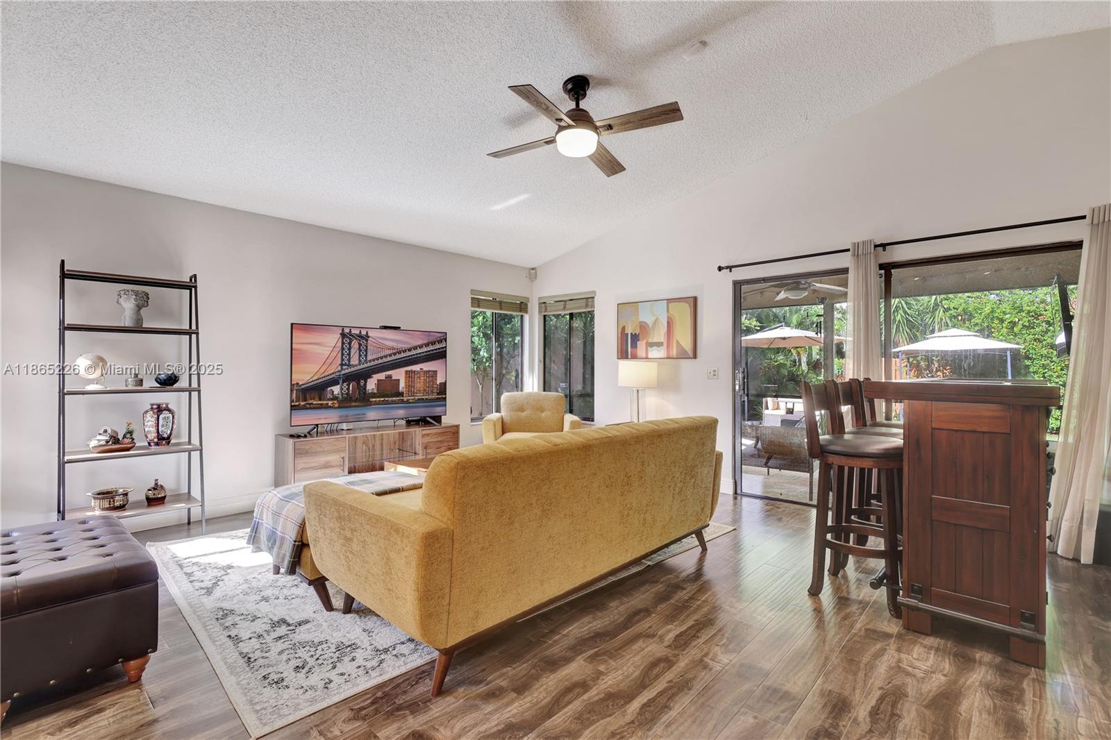 Impeccably updated 3-bedroom, 2-bath home in Coconut Creek featuring a bright open layout with high ceilings, skylight in the dining area, and durable LVP flooring. The spacious kitchen showcases granite countertops and modern cabinetry, while the primary suite offers vaulted ceilings for an airy retreat. Outdoor living includes a screened patio, fenced yard with synthetic grass, and a BBQ entry. Community amenities feature a pool, tennis, gym, clubhouse, guard gate, internet, and basic cable—all for just $279/mo HOA. Conveniently located only 20 minutes from the beach and home to Randazzo private school (Kinder–High School) within the community. Equipped with metal shutters; windows are not hurricane proof. Move-in ready and ideal for today’s lifestyle.