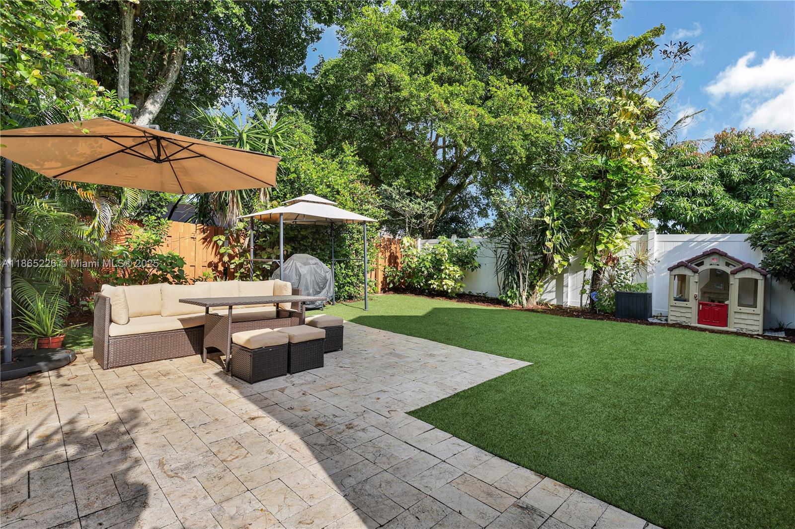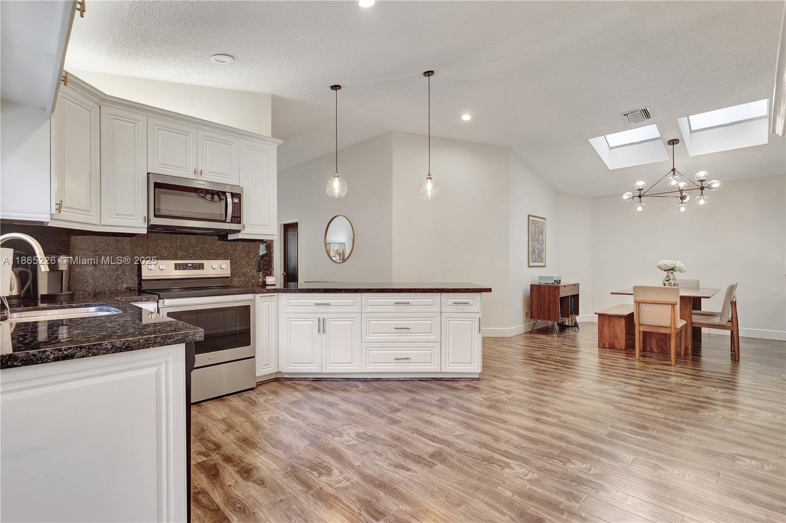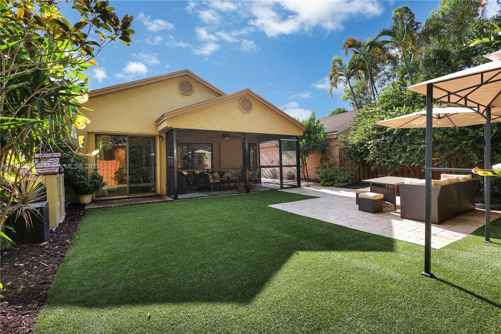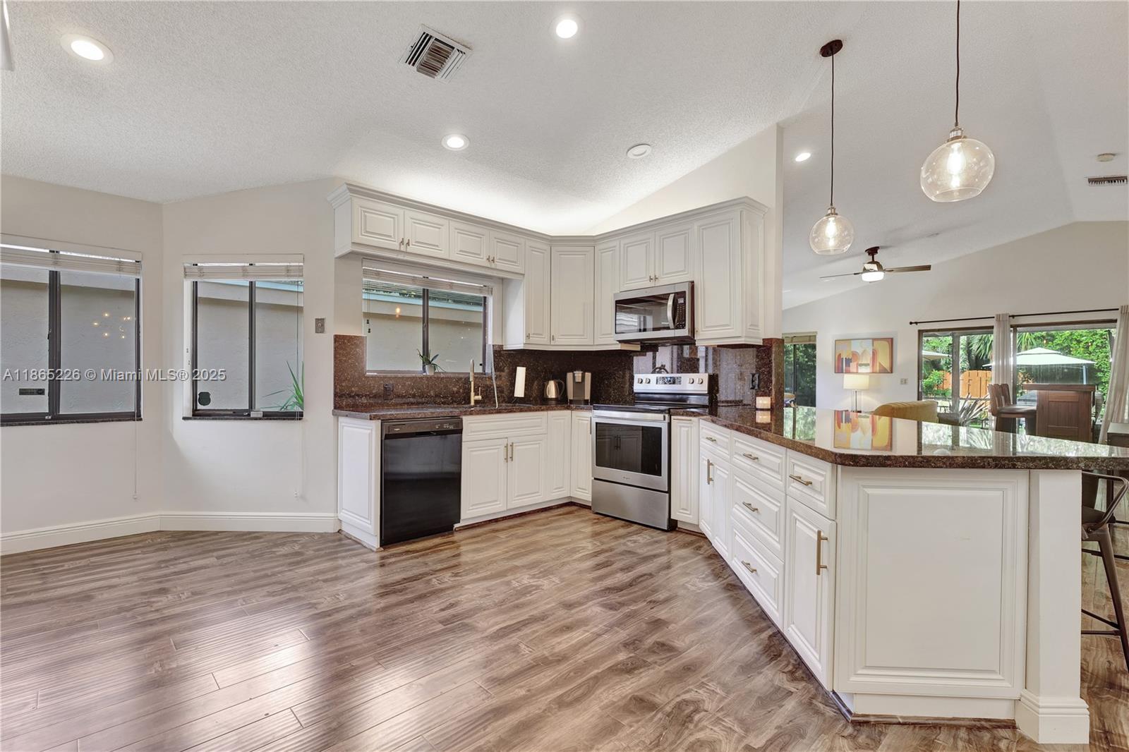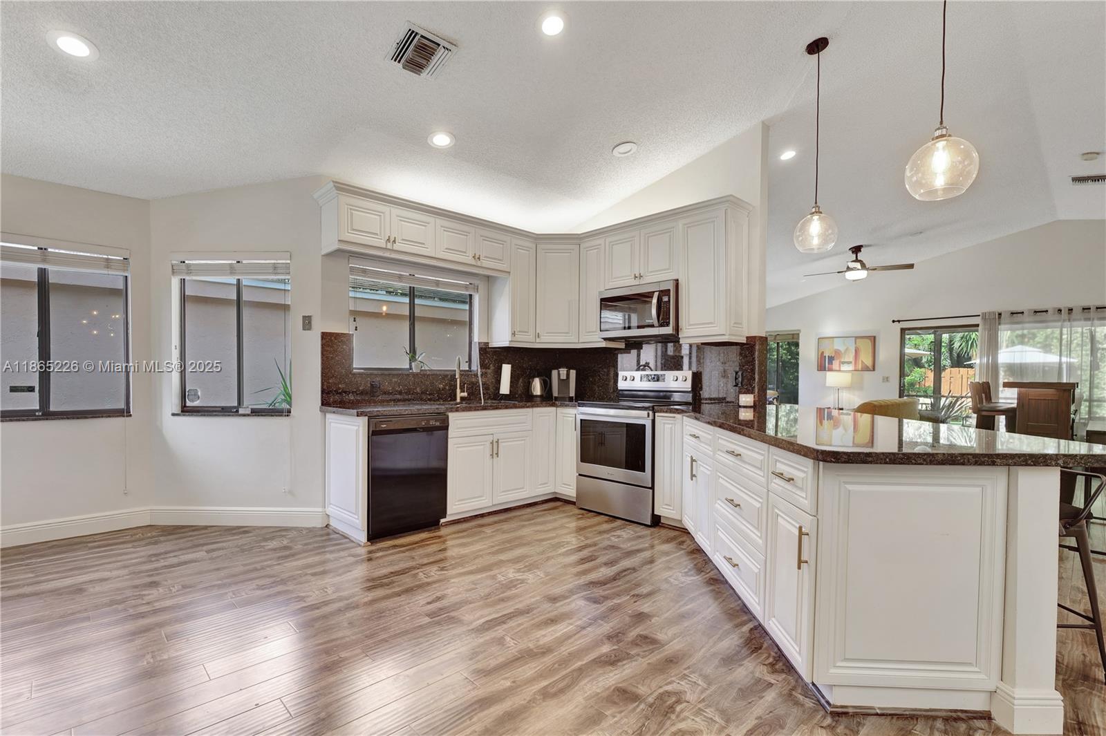 Impeccably updated 3-bedroom, 2-bath home in Coconut Creek featuring a bright open layout with high ceilings, skylight in the dining area, and durable LVP flooring. The spacious kitchen showcases granite countertops and modern cabinetry, while the primary suite offers vaulted ceilings for an airy retreat. Outdoor living includes a screened patio, fenced yard with synthetic grass, and a BBQ entry. Community amenities feature a pool, tennis, gym, clubhouse, guard gate, internet, and basic cable—all for just $279/mo HOA. Conveniently located only 20 minutes from the beach and home to Randazzo private school (Kinder–High School) within the community. Equipped with metal shutters; windows are not hurricane proof. Move-in ready and ideal for today’s lifestyle.