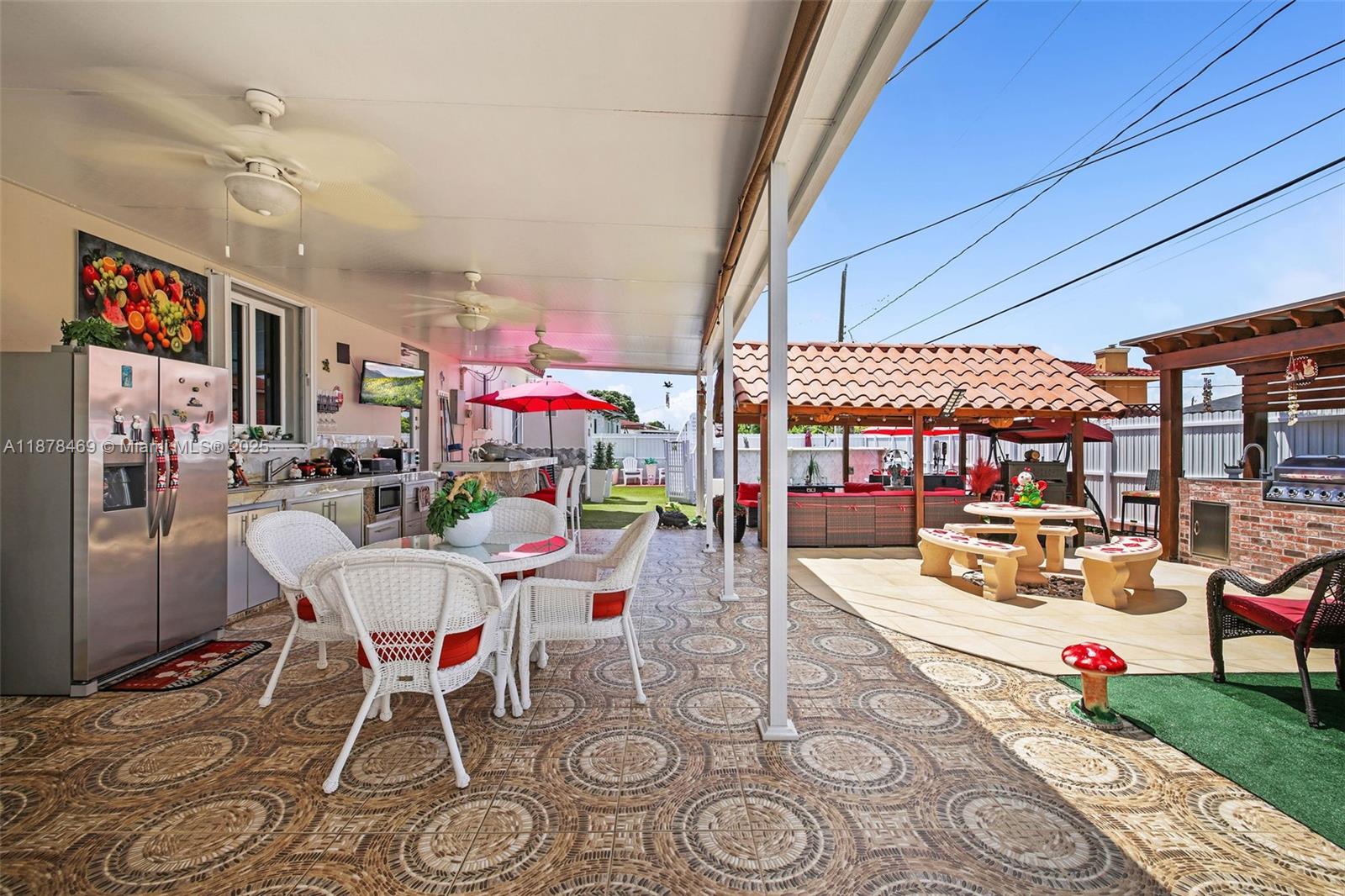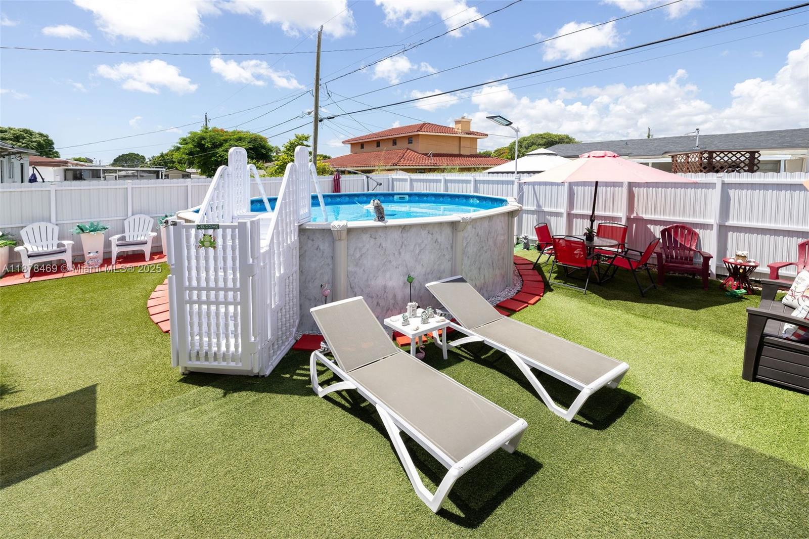 This is a meticulously maintained single-family home with no HOA and an incredible backyard space perfect for gatherings, just like we love in Miami! The outdoor area is beautifully crafted with top-notch materials and workmanship, always kept spotless and ready to impress. Even if above-ground pools aren’t your thing, this one might change your mind. The photos don’t do this property justice. Inside, what was once three bedrooms has been converted into one larger primary and a secondary room. The home features impact windows, accordion shutters, and a roof from 2018. The roof and soffits are cleaned and painted annually. Separate laundry room. The cleanliness of the home is to the highest level. Elevated and not in a flood zone, it’s insurance-friendly too! $1400 storage shed stays. Just 0.2 miles away from Walter White park that features a playground.