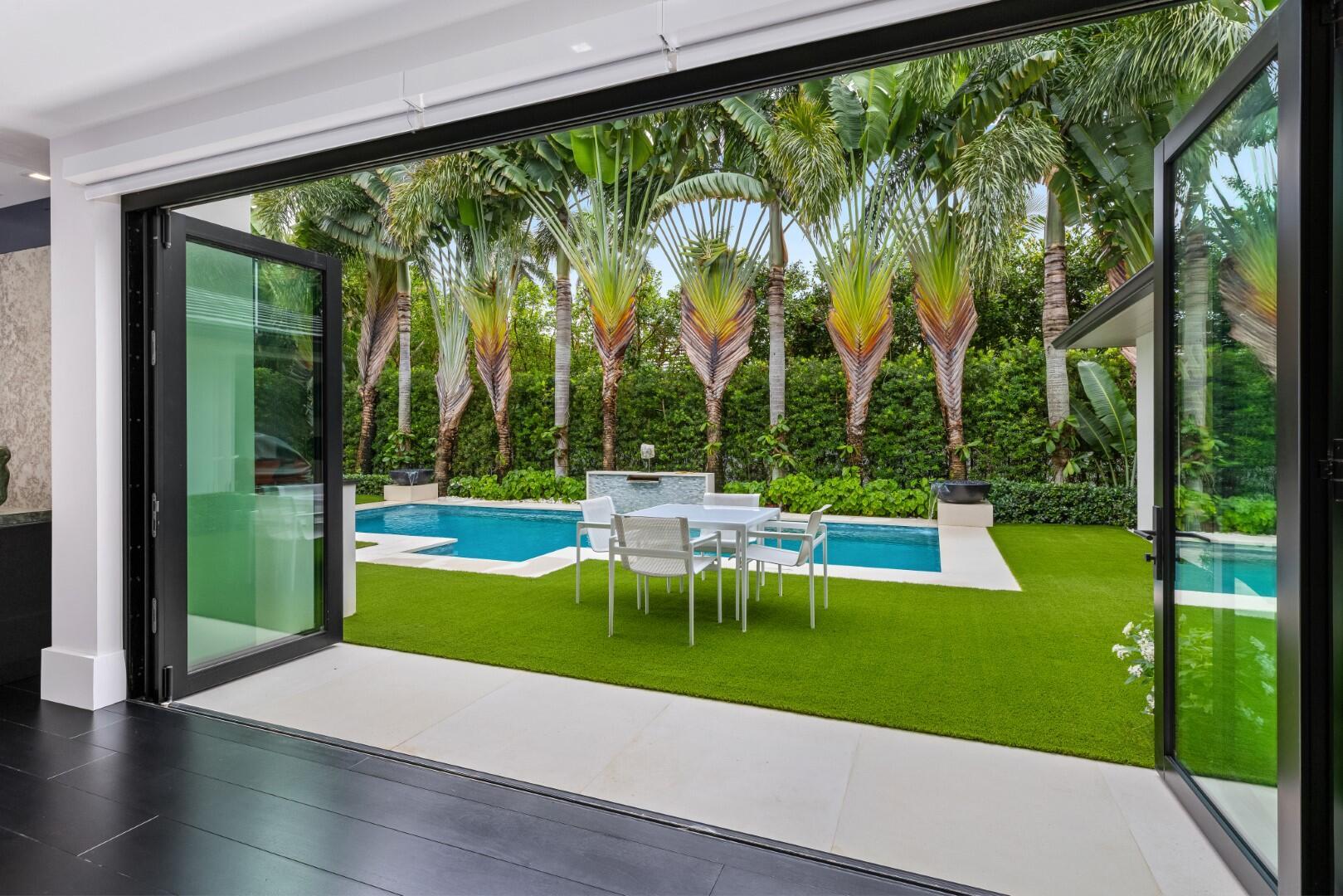 Gorgeous contemporary 4BR/5.1BA home built in 2020. Stunning marble and hardwood detailing. Formal foyer leads to living room and dining room. Beautiful kitchen with enormous chef's island, top-of-the-line appliances, and gorgeous detailing. Large Primary Suite features balcony and dual baths and closets. Additional highlights include elevator, wine storage, and 2 car garage. Tropical landscaping surrounding resort-style backyard with pool, BBQ, and loggia with fireplace.