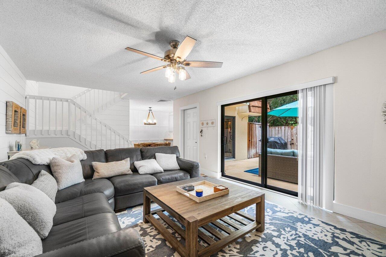 This beautifully renovated home, ideally located between the Intracoastal and Jupiter Beach/Juno Pier, offers luxurious coastal living just steps from resort-style amenities like a pool, tennis, pickle ball, and basketball courts. Inside, you'll find fresh paint, new baseboards, shiplap and box wall accents, and a modern kitchen with granite countertops, white shaker cabinets, custom lighting, and newer stainless steel appliances. All three bathrooms have been fully remodeled, with added upgrades including new closet doors, ceiling fans, and light fixtures. Hurricane impact sliders and a new front door ensure peace of mind, while the private courtyard--with professional grade landscape lamps that double as tiki torches--offers an inviting space to relax or entertain. This is a ONE OF A KIN