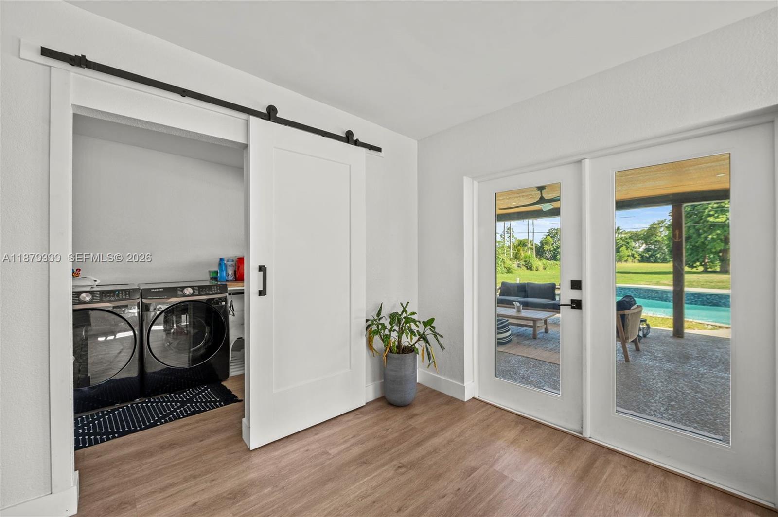 Fall in love with this beautifully renovated modern farmhouse on 2.5 acres in peaceful Southwest Ranches. Featuring a quartz waterfall kitchen, new appliances, impact windows and doors, private mother-in-law suite, barn, workshop, pool, and tranquil outdoor living. Most renovations completed! New roof 2021, HVAC 2024, beautifully updated with new wood look vinyl plank flooring. Work shop already has a car lift Close to I-75, 595 and Sawgrass exp. A must see!