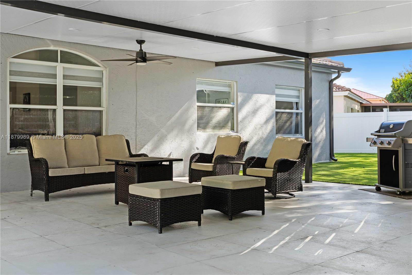 Welcome to Avalon, a secure, gated, family-friendly lakeside community in Miramar. This beautifully upgraded 3BR/2BA pool home offers the perfect blend of comfort and style. Enjoy a bright open layout with a custom kitchen featuring quartz waterfall countertops and stainless steel appliances. Step outside to your private backyard oasis with an oversized pool, artificial turf, and a pergola with built-in TV—ideal for family gatherings and weekend fun. The spacious primary suite includes dual sinks, Roman tub, glass shower, and walk-in closet. Also features a laundry room, 2-car garage, and extended driveway. Community offers 24/7 security, pool, playground, sports courts, and walking trails. Near A-rated schools, parks, shopping, and highways.