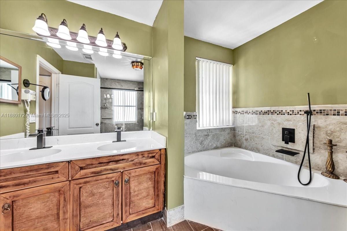This beautiful 3-bed, 3-bath home located in the desirable Huntington community. Designed for comfort and style, it features spacious bedrooms and bathrooms, volume ceilings, and huge windows that fill the interior with natural light. The convenient layout includes one bedroom and full bath on the first floor, perfect for guests or multigenerational living. Accordion shutters provide peace of mind, while a 2-car garage and additional driveway parking add practicality. Step outside to your private retreat with a sparkling pool and gazebo, ideal for entertaining or relaxing. Located just minutes from top-rated schools, shopping, dining, major highways, and a short drive to Miramar Regional Park and other local attractions, this home combines lifestyle and convenience in one perfect package.