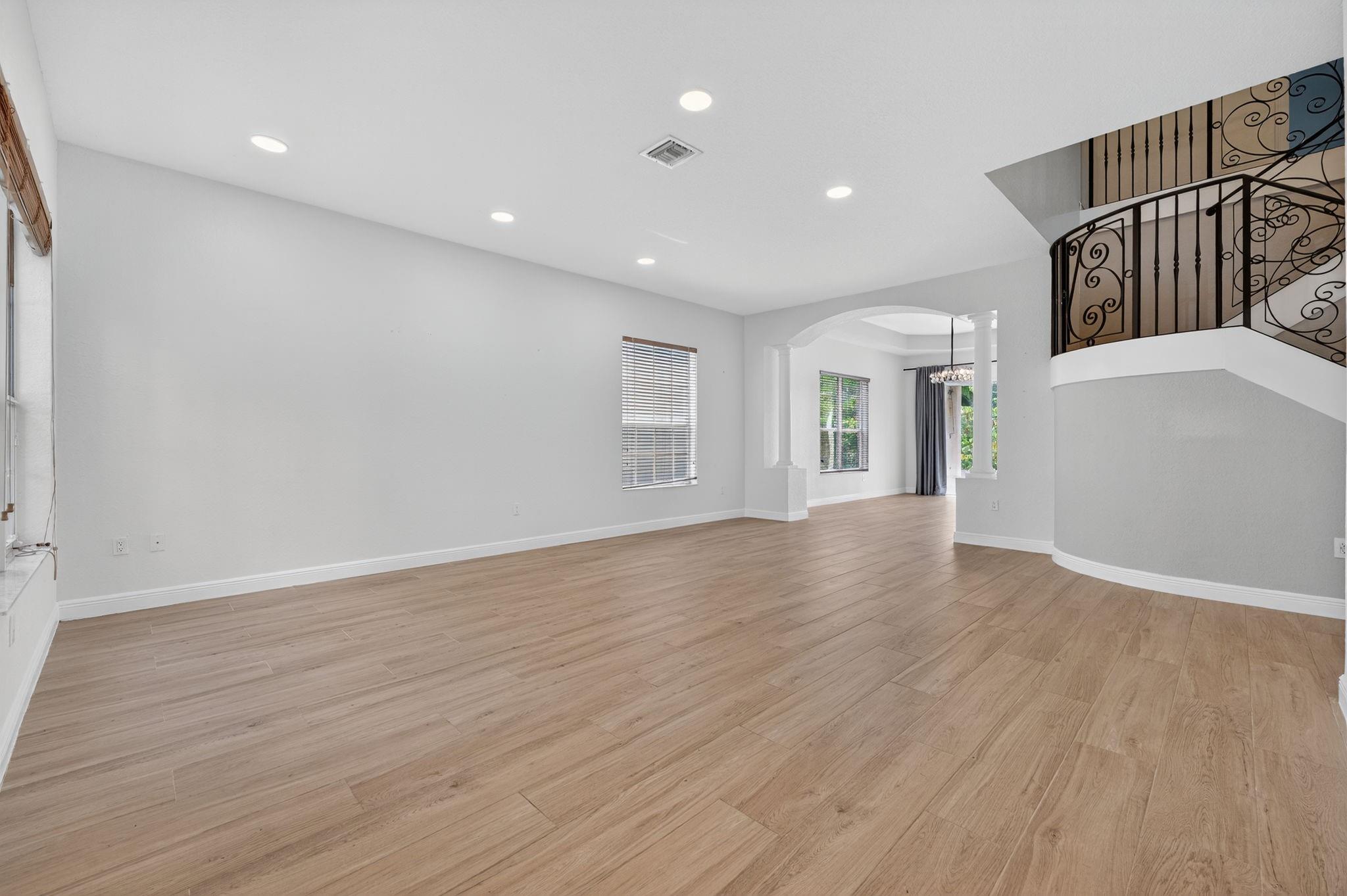 Beautiful 6 Bedroom currently being used as 5 Bedroom and 4 Bathroom home w/pool & canal views! Features double-door entry, 3-car garage & S-tile concrete roof. 1st floor offers wood-look porcelain tile, spacious living & dining rooms w/tray ceilings, gourmet kitchen w/wood cabinets, SS appliances, granite counters, pantry & breakfast area. Full bed & bath downstairs. Primary suite boasts tray ceilings, walk-in closets & luxury bath w/Jacuzzi, shower & dual vanities. Two en-suite bedrooms upstairs. Backyard oasis w/pool, child safety fence, pavered patio, fruit trees & privacy hedge. Easily convert back to 6BR. Hurricane shutters, laundry room w/sink, cabinets & W/D (2025), 2 AC units (2024/2023).