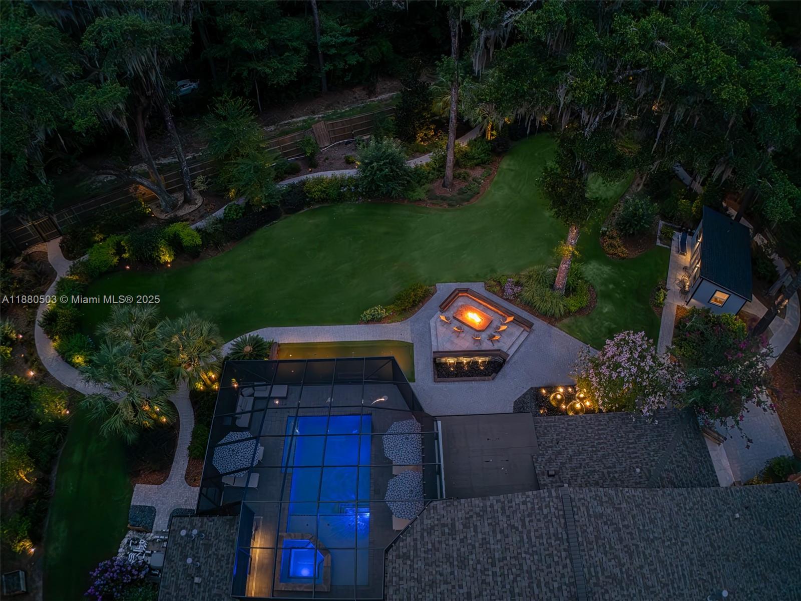 Elegant Retreat on Over an Acre Near the University of Florida Privately set in the sought-after Hermitage neighborhood, this home rests on 1.1 landscaped acres. Updated with design-forward style, the interior features travertine floors, soaring ceilings, walls of glass, and a dramatic fireplace. Living and entertaining zones include a custom backlit quartzite bar, chef’s kitchen with dual prep stations, waterfall island, induction cooktop, steam/convection ovens, and sleek cabinetry—overlooking resort-style pool. The primary suite offers a soaking tub and oversized shower A secondary wing hosts two bedrooms, shared bath, gym, and media room. With smart home integration, studio cottage, and outdoor oasis, this retreat blends modern luxury with timeless appeal.