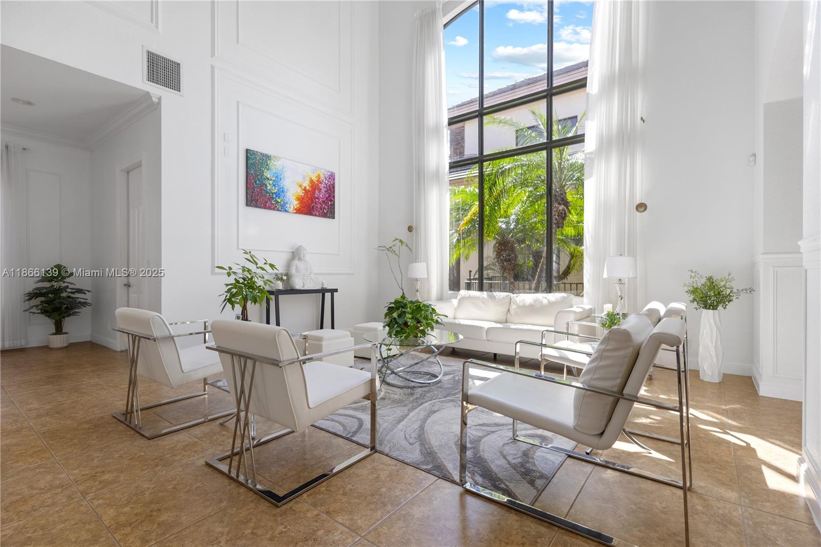 Welcome Home & Experience the Resort-style community of Versailles in Wellington! This Moulin Rouge model 4 Bed/4.5 Bath boasts dramatic 24-ft ceilings, graceful wrought-iron stairways, and bright open interior. The gourmet kitchen showcases French cabinetry, granite countertops, and stainless appliances, while the expansive living and dining rooms are ideal for entertaining. Escape to the spa-like primary suite with dual sinks, Roman tub, shower, and walk-in closet, as all secondary bedrooms offer ensuites. With a 2-car garage & custom upgrades. Community amenities including a clubhouse, infinity pool, spa, fitness center, tennis, and playgrounds, with 24/7 manned gated security. Close to all Amenities, Elite schools ,Equestrian town & Shopping malls.
