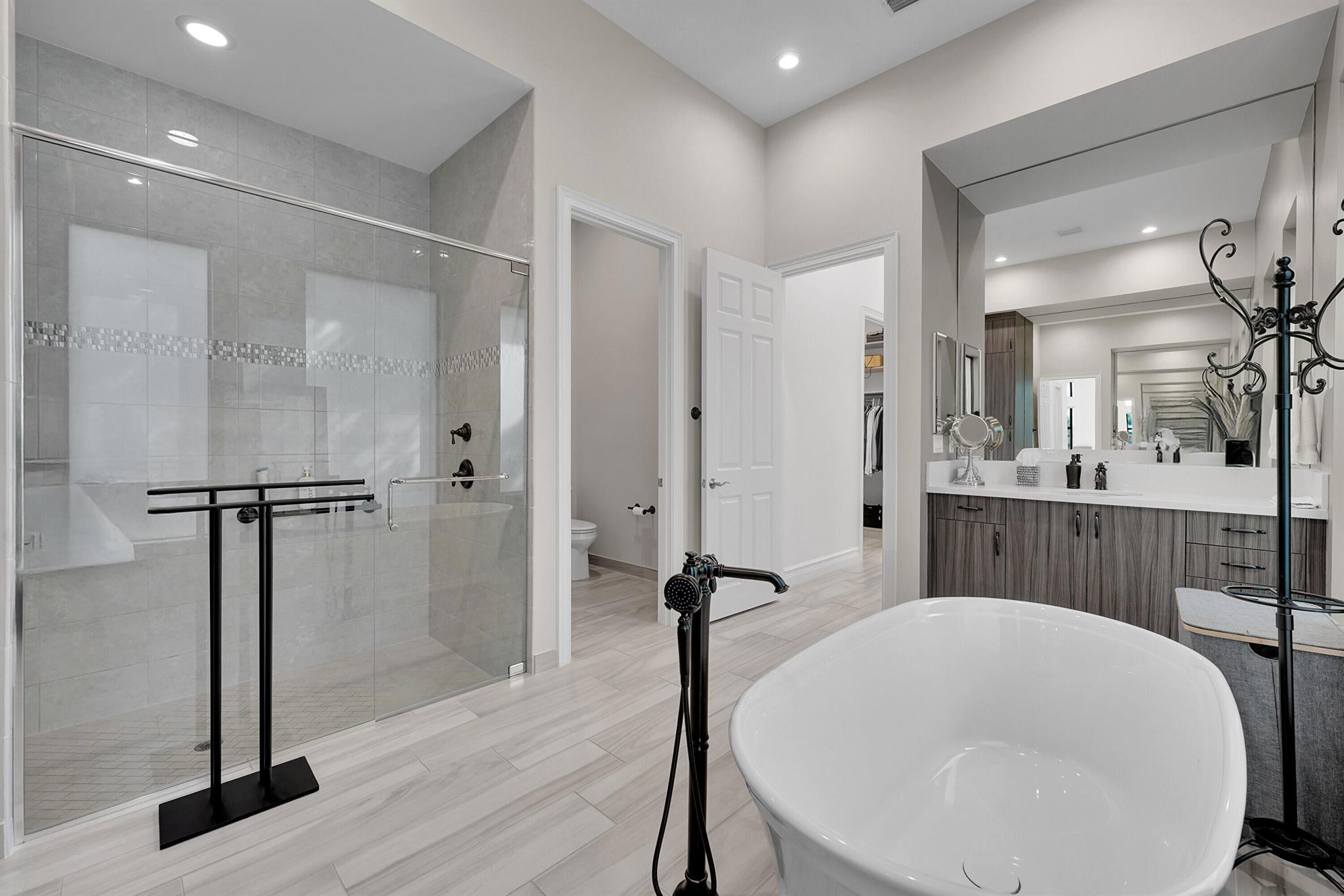 Impeccably designed and highly upgraded 4 bedroom Rialto in Seven Bridges situated on one of the premier lots within the community. This 2020 built, one-story home overlooks breathtaking unobstructed long lake views on coveted model row. The chef's kitchen showcases Wolf/Sub-Zero appliances, upgraded stacked cabinets and upgraded quartz countertops. Highlights include: wood look porcelain tile floors throughout, full house generator, water filtration system, exquisite custom millwork, impact windows, plantation shutters, electric drapes and a large lanai with phantom screens. Luxury living is redefined at Seven Bridges where residents have access to world class amenities including a restaurant, 3 pools, elite tennis program with 12 courts, 4 pickleball courts and fitness classes.