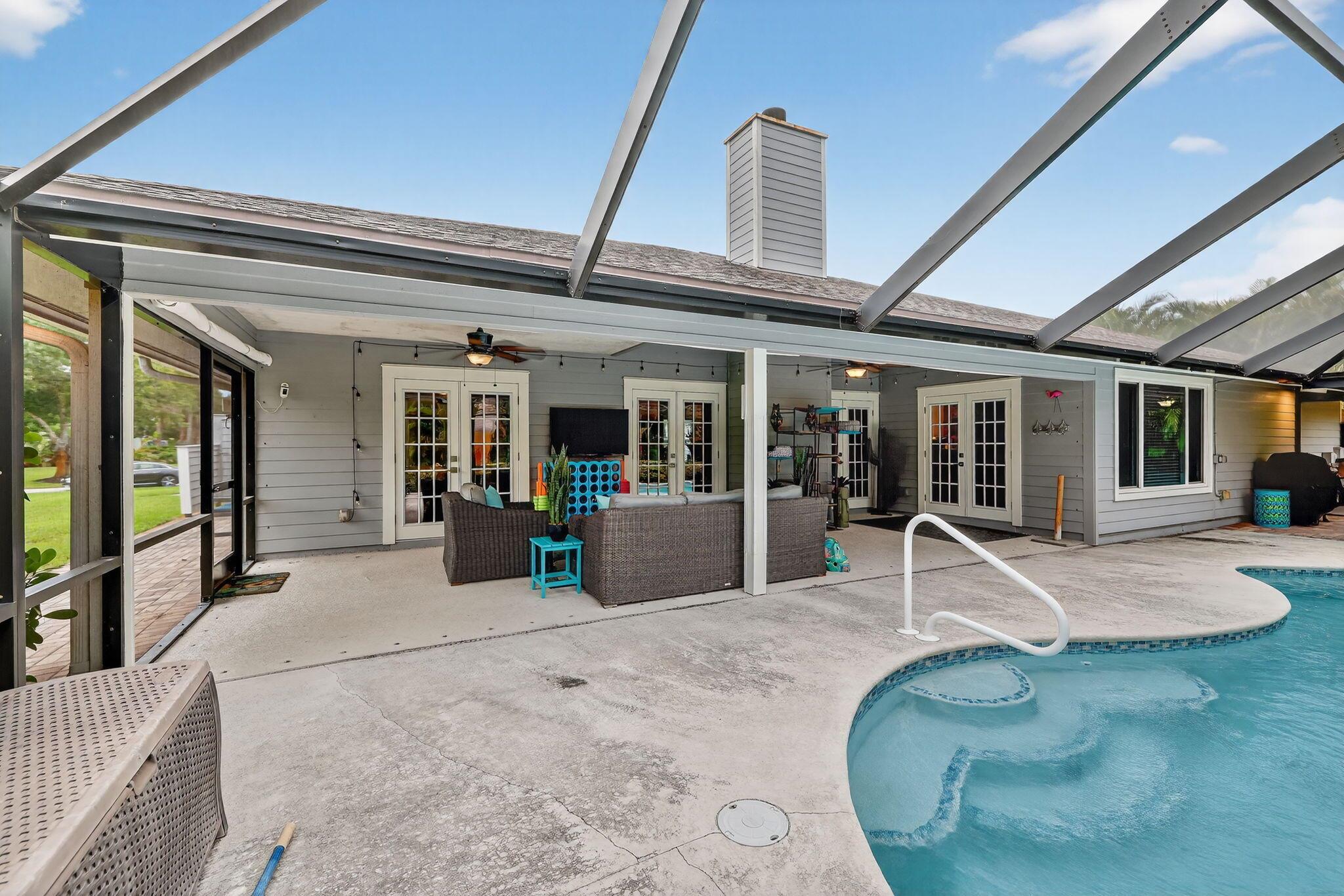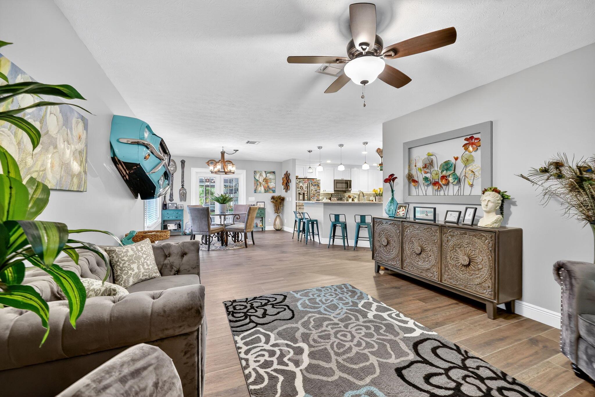 Welcome to your dream home in the heart of Stuart, Florida! This beautifully updated 3-bedroom, 2-bathroom single-family residence is nestled on a spacious half-acre lot within a quiet, gated community offering privacy and peace of mind. Enjoy Florida living at its best with a screened-in pool perfect for relaxing or entertaining year-round. The home features a bright, open floor plan, updated finishes, and ample outdoor space. A fence can be added once approved by the association. Beautifully done kitchen with soft close cabinets and a large pantry. There is a dining area that can be used as second den or easily converted into an office space. EV charging station has been added.