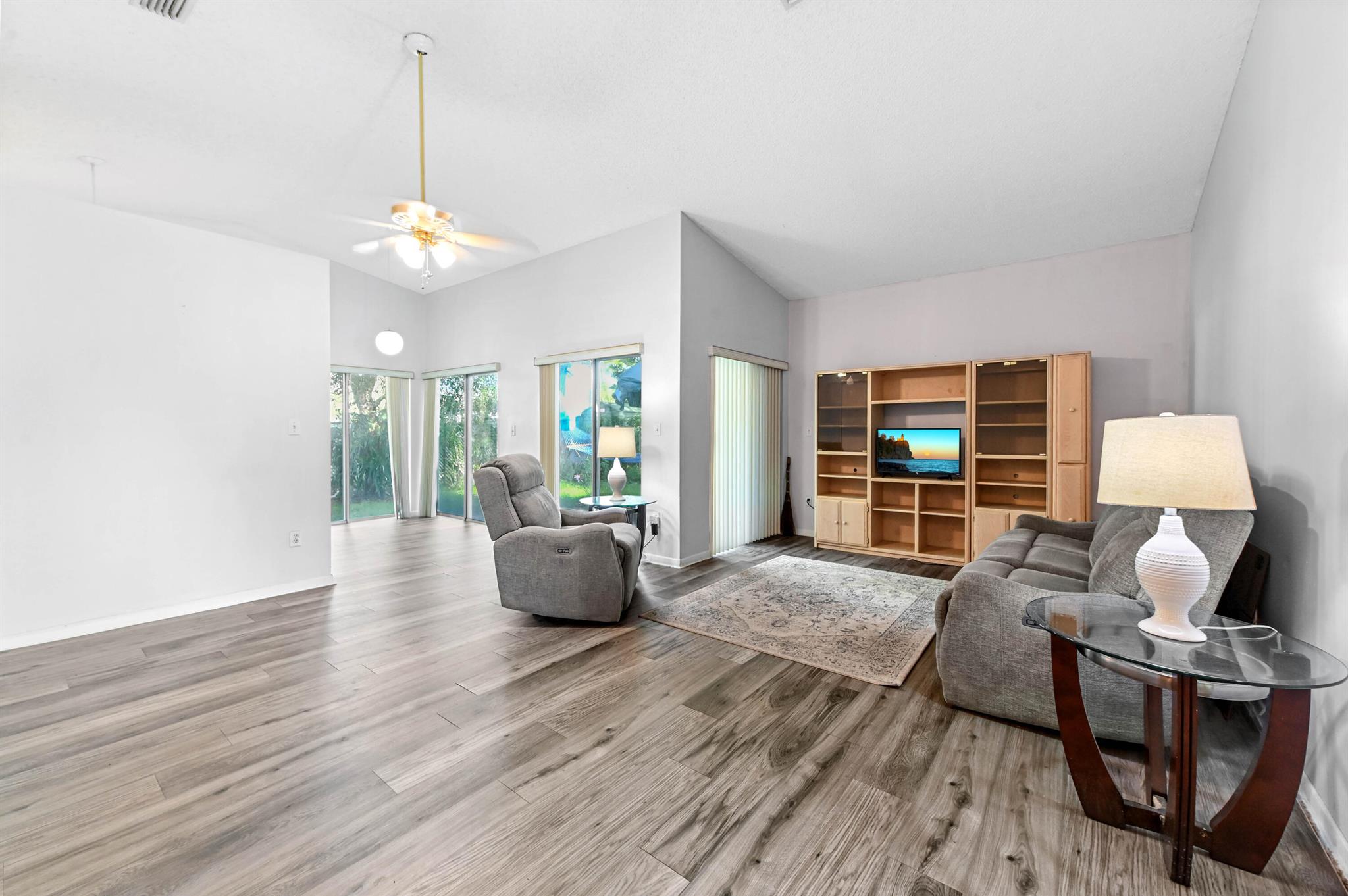 Welcome to this charming single-family home, perfectly situated in the heart of Davie, offering a bright and spacious living experience. This residence features a fantastic open-concept floor plan with vaulted ceilings, creating an inviting and airy atmosphere. The living and dining areas are complemented by stylish wood-look laminate flooring that flows seamlessly, while a kitchen with pristine white cabinets and appliances is ready for all your culinary needs. The home is a fantastic canvas for a buyer to personalize and make their own.