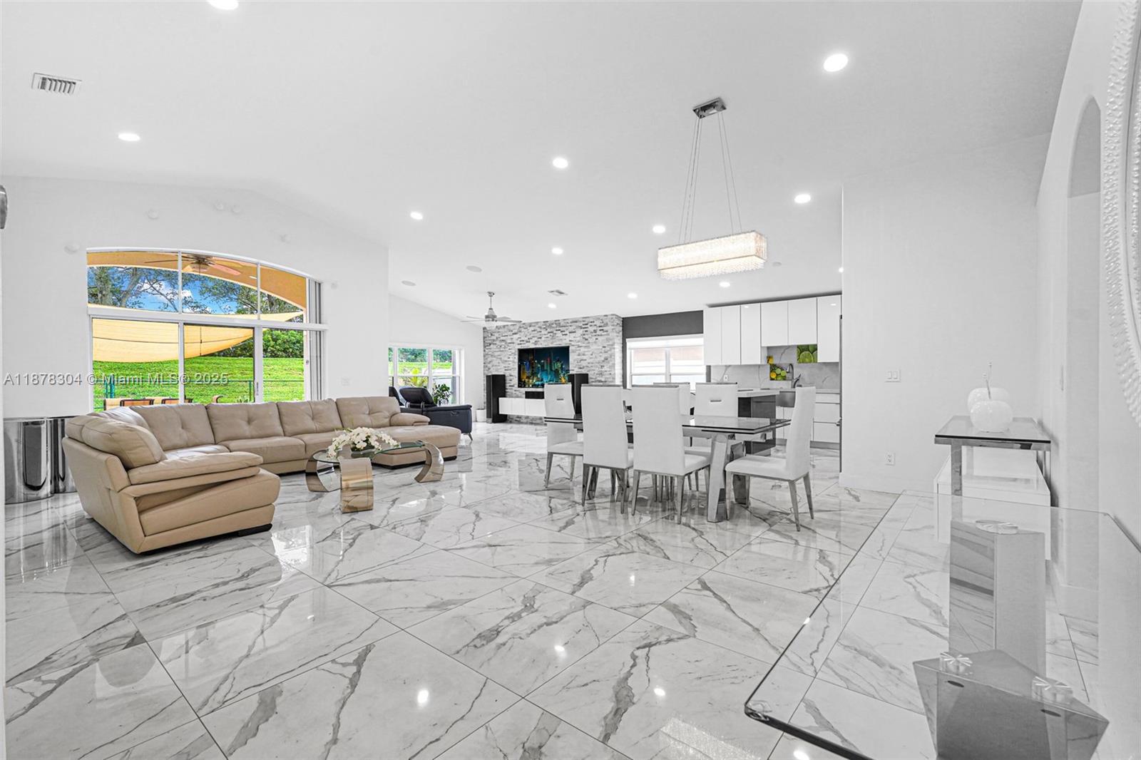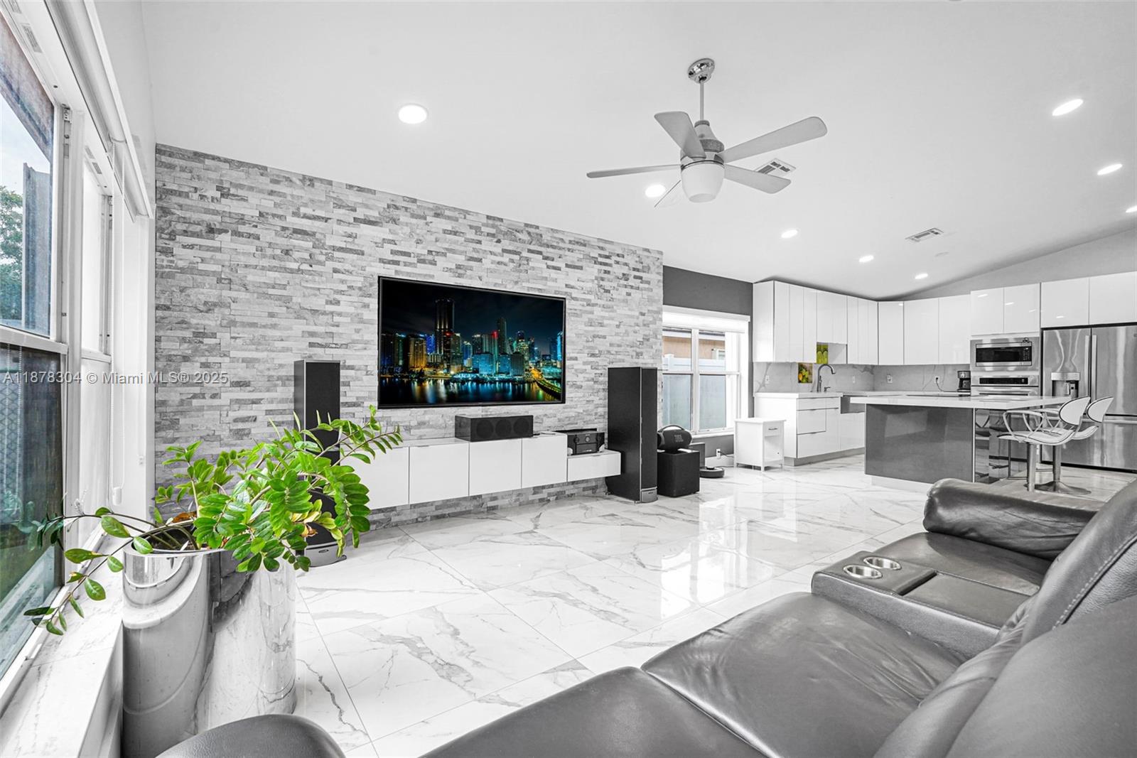 Exceptional living awaits in this beautifully renovated 4-bedroom, 2-bath home located in the highly desirable gated community of Pembroke Shores. A bright open layout with soaring ceilings fills the home with natural light, featuring a modern kitchen, stylishly updated baths, and seamless indoor-outdoor living. The spacious primary suite opens directly to the backyard—perfect for relaxing or entertaining. Enjoy peace of mind with accordion hurricane shutters and a low quarterly HOA of $497. Ideally situated just minutes from I-75, the Turnpike, top-rated schools, shopping, and dining, this home perfectly combines comfort, convenience, and lasting value. Priced to move and offering one of the best values in Pembroke Shores! Property under contract – accepting back-up offers.
