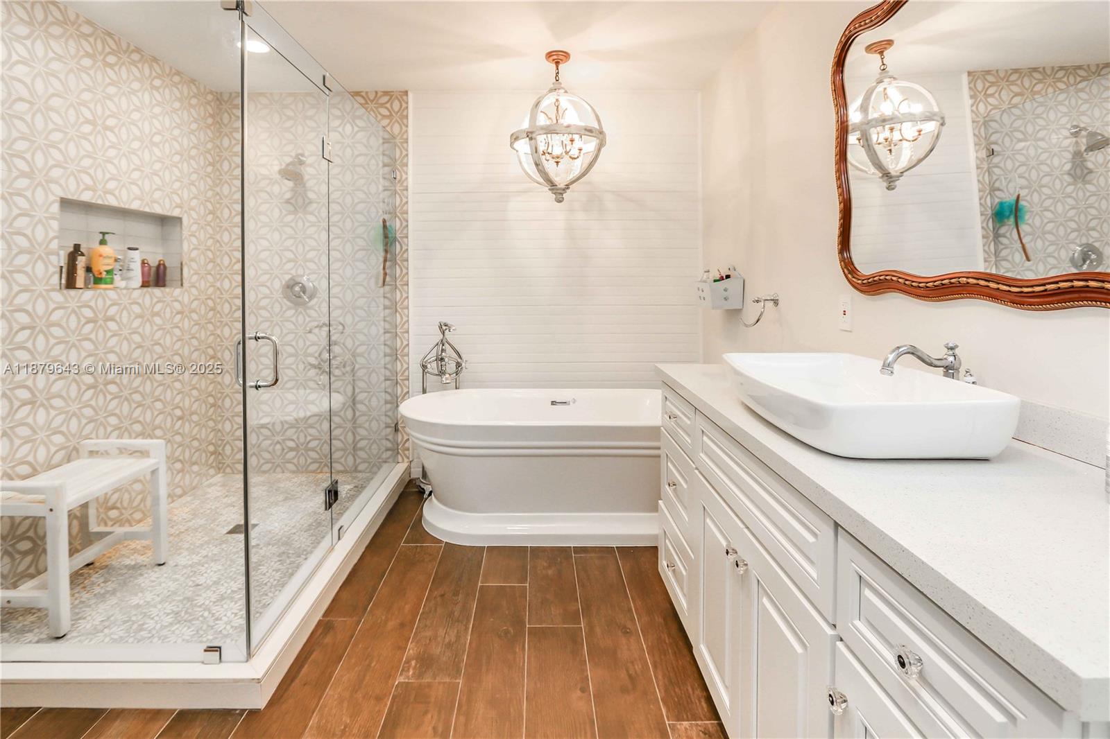 Beautiful 4 bedroom, 3.5 bath pool home with 1 car garage in an incredible location! Enter into a large foyer that flows into a state of the art kitchen/living area with an oversized eat-in island, exotic granite countertops, stainless steel farmers sink, a double oven, custom Medallion cabinetry, double refrigerators, and Miele appliances with a gas stovetop. With an open concept design, this home is made for entertaining. Additional features include a formal dining room, a separate family room with French doors leading to the pool, & a large pavered patio around the pool with a fully fenced backyard and lush landscaping. The primary bath features a free standing tub with separate shower. Highlights include a 2nd ensuite bedroom and impact windows!