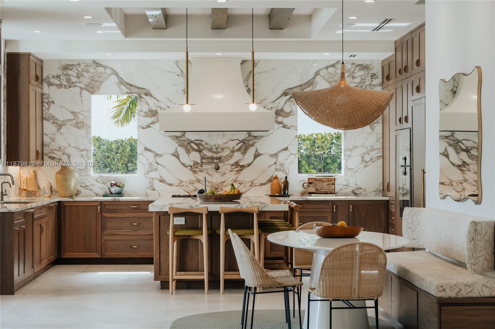 An extraordinary waterfront estate offering 8,433 sq ft with 8 bedrooms, 9 baths, and Spanish Mediterranean charm. Designed by Monogram Studios’ Lisa Mayock, this 2022 residence blends modern construction with Old-World elegance, inclusive of stucco walls, barrel-tile roof, and arches. The residence opens with a showstopping skylight centerpiece followed by a chef’s kitchen with Gaggenau & Sub-Zero appliances, two laundry rooms, dual-control wine cooler, midnight kitchen, media room, butlers pantry, pilates studo/gym, and an office. For seamless indoor-outdoor living: loggias, courtyards, summer kitchen with retractable screens, cabana bath, 4-car garage, and dock for a 40-foot boat. With no fixed bridges and only minutes to the ocean this is a true statement home in Lighthouse Point.