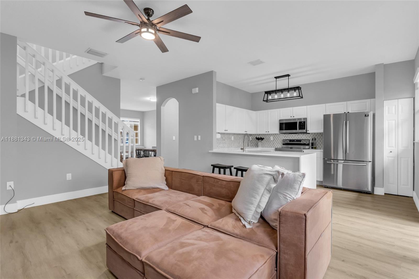 Beautifully remodeled in coveted Tuscany Village! Sunlit first floor showcases new flooring and a remodeled, open-concept kitchen anchoring spacious living/dining—ideal for entertaining. Retreat to a generous primary suite with oversized walk-in closet and spa bath featuring a Roman tub and separate shower. Well-sized secondary bedrooms offer privacy and flexibility (guest/office). Convenient upstairs laundry with full-size W/D. Enjoy a private, fenced patio, tastefully landscaped with artificial turf and pea rock for ultra–low maintenance—plus a 1-car garage. Excellent spot near guest parking. Low HOA $135/mo, 24-hr security, clubhouse, fitness center, two pools, and playground. Minutes to the Turnpike, shopping, dining, and area schools. Impeccably maintained and truly move-in ready!