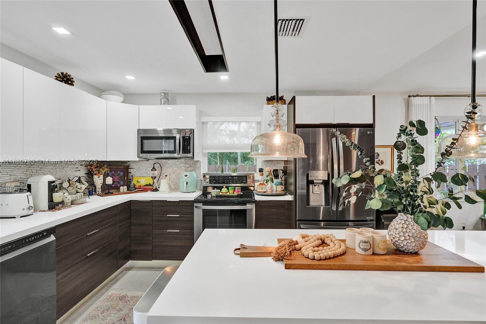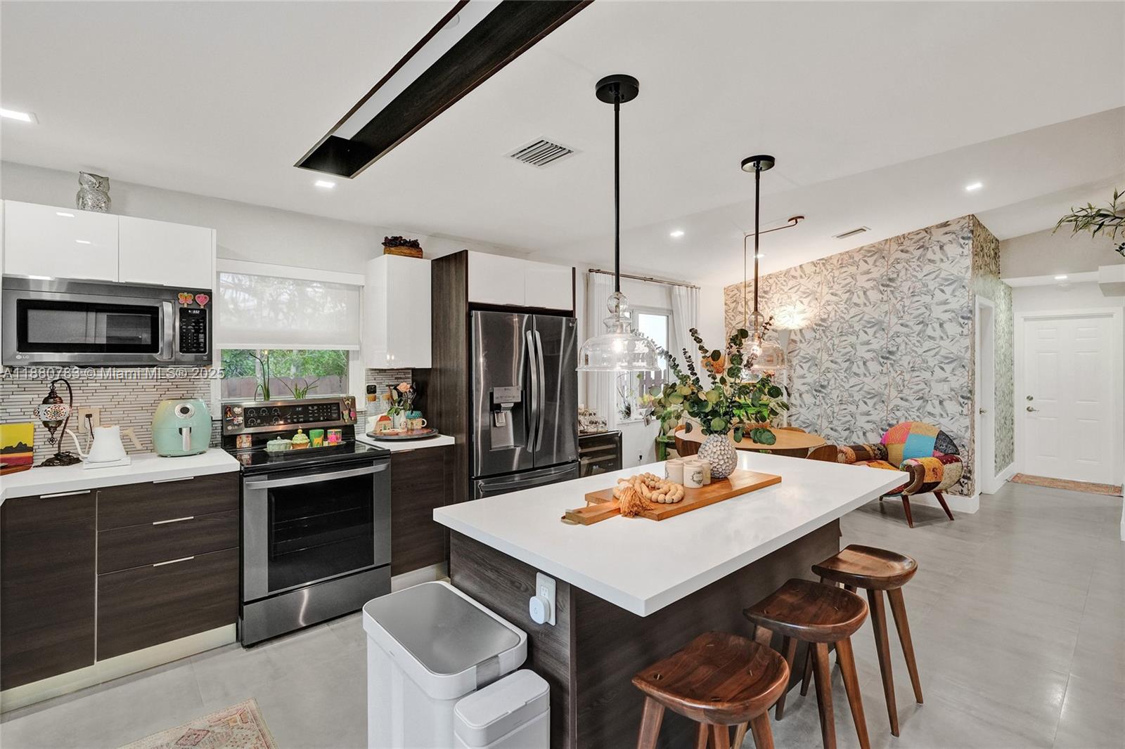 Step into this completely turnkey family home that seamlessly blends modern elegance with everyday comfort! Located in the prestigious neighborhood of “The Roads”, just minutes from Brickell & Key Biscayne beaches. This spacious home features high ceilings, an open layout kitchen w/premium appliances & a large island that connects effortlessly to the living & dining areas. 3 large bedrooms, 2.5 bathrooms, + an office/studio complete with its own private entrance. Designer wallpaper and custom closets add stylish touches throughout! Step outside and relax by the new pool & lounge area surrounded by lush landscaping and mature fruit trees. Recent upgrades include a new roof, brand-new heated pool, impact windows, redesigned garage, new AC, new driveway, electric gate, & renewed landscaping.