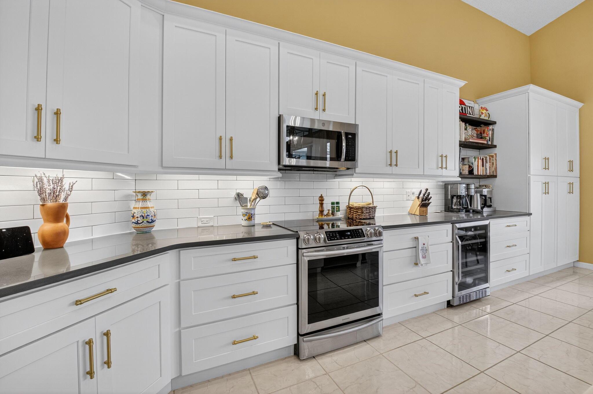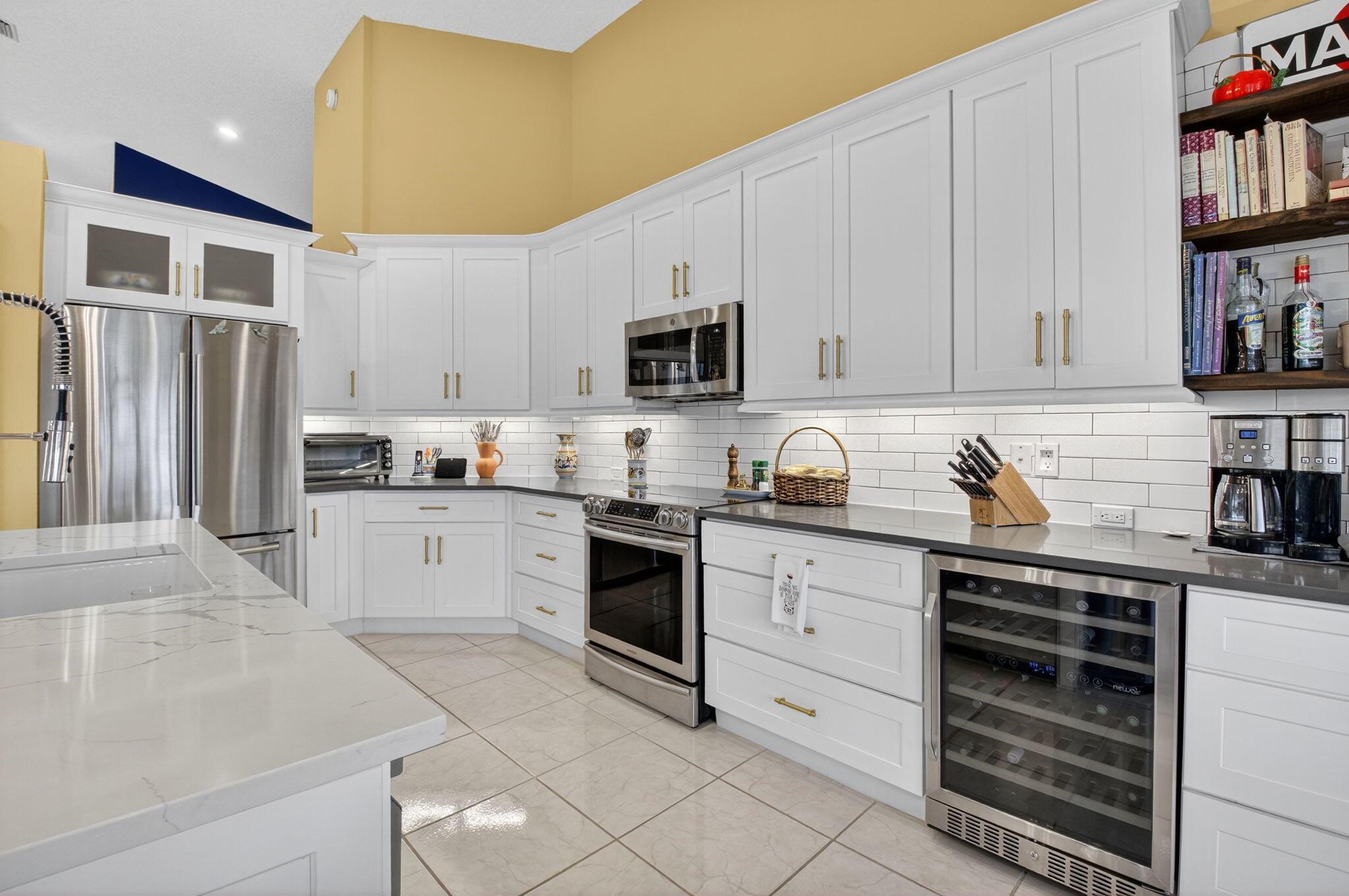 Views, views, views! Enjoy lakeside living and golf course viewslocated in the Glades, an intimate 42 enclave of single-family homesin Indian Springs. Enjoy the peace of mind of security 24/7 as youwake up in your light-filled entertainer's dream home with hurricanerated doors and windows throughout. Open floor plan with great roomincluding dining room that comfortably seats 12, 3 bedrooms, 2 1/2 bath,and den. This home has volume with 14-foot vaulted ceilings. Finemeals await in this cook inspired kitchen with gleaming quartzcountertops, stainless steel appliances, including induction range anddual zone wine cellar. Storage galore with drawers below and 42''cabinets above, and full height dual pantry. The oversize master suite(with sliding glass doors opening to
