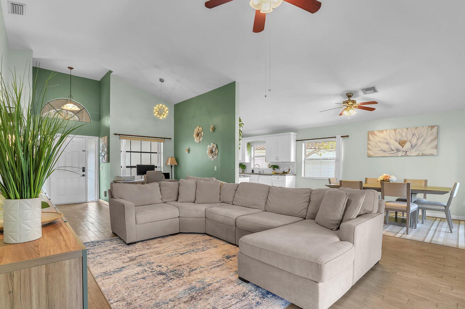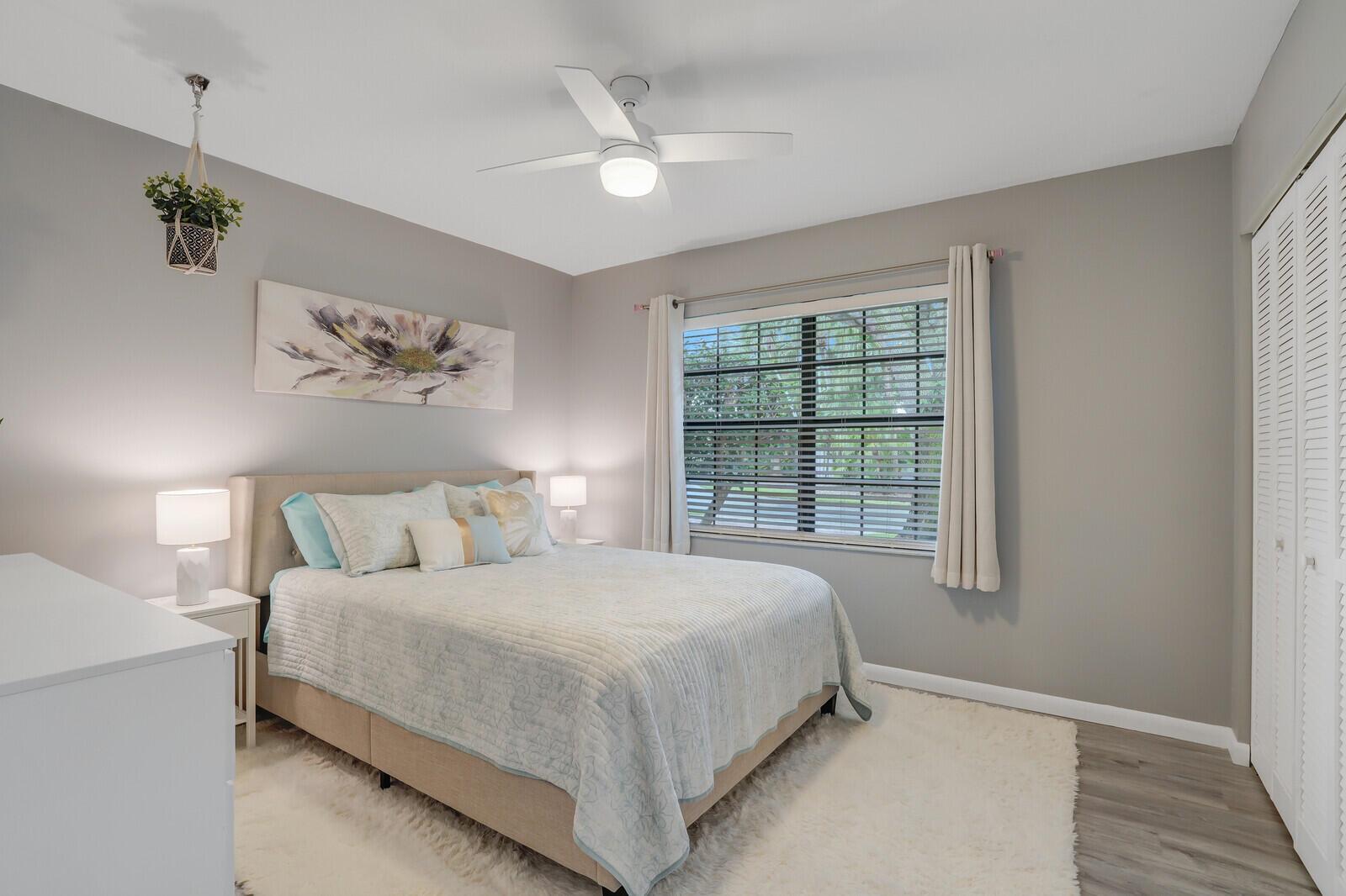 Meticulously Maintained 2-Bedroom Home with Water Views in Gated CommunityEnjoy peace of mind with a newer roof, A/C, and water heater in this beautifully maintained 2 bedroom, 2 bathroom home, ideally situated on a rare oversized lot with tranquil water views from the living room, dining room, and primary bedroom. This thoughtfully designed home features a split-bedroom layout, offering enhanced privacy with each bedroom enjoying access to its own living space -- ideal for guests, a home office, or multi-generational living.The updated kitchen and stylish flooring create a warm and elegant atmosphere throughout. Step outside to your private screened-in patio, perfect for relaxing or entertaining while taking in the peaceful water views. Also has a shed out back for extra storage