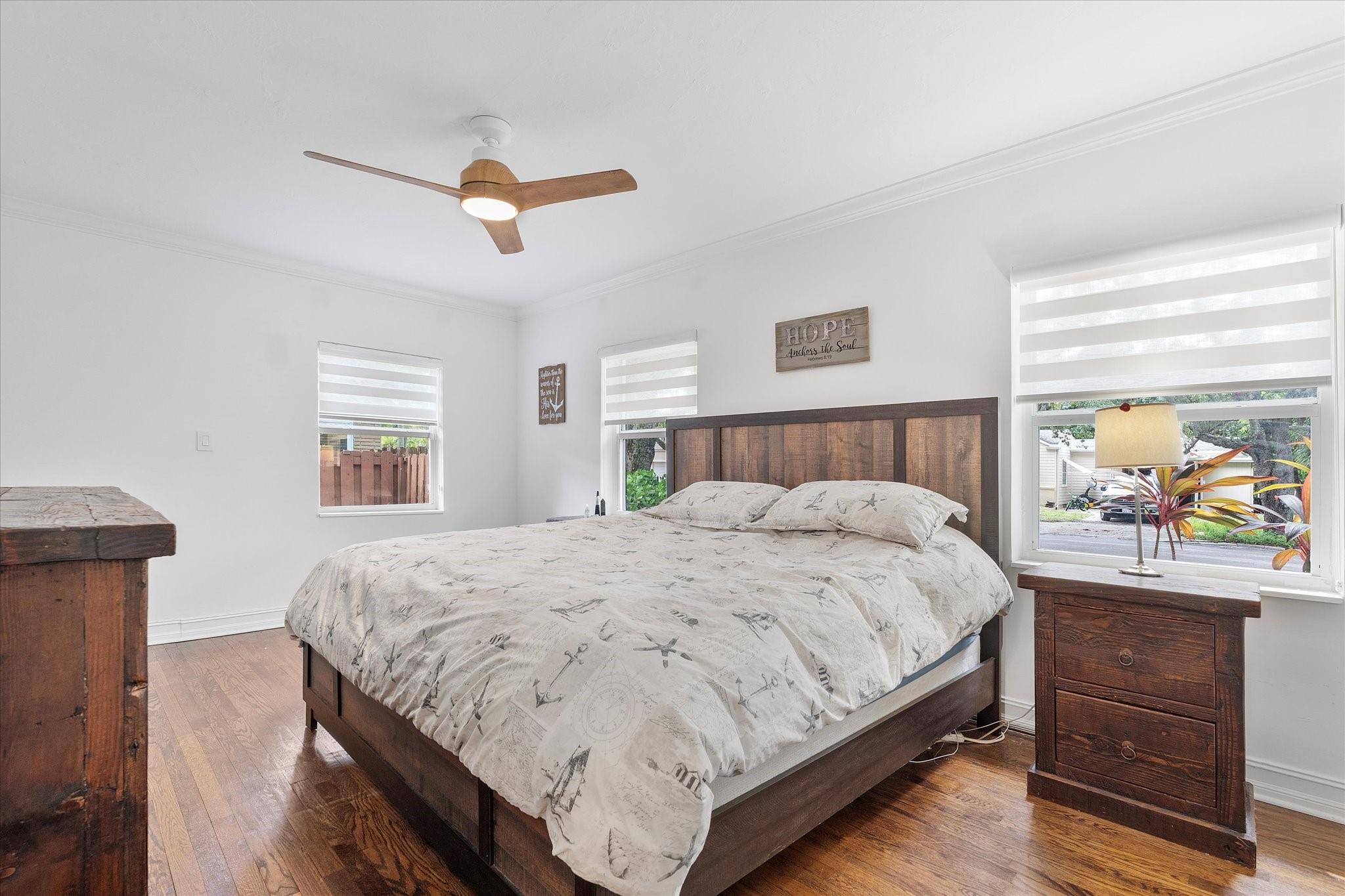 This beautifully updated 3-bedroom, 3-bath home in Hollywood blends comfort and convenience with thoughtful upgrades throughout. A brand-new roof, upgraded electrical panel, PVC pipes, and improved HVAC provide peace of mind, while the remodeled kitchen showcases Bosch appliances and modern finishes. The bathrooms include stylish updates, with one featuring a relaxing jacuzzi tub. Fresh paint, new tile flooring, custom blinds with a remote control, and ceiling fans add to the move-in ready feel. The property also offers an in-law suite with private entry, currently used as a short-term rental generating $1,500–$2,000 per month. Outdoor spaces are enhanced with new landscaping for added privacy and fruit trees including mango, fig, pomegranate, lemon, and lime, creating a welcoming retreat.