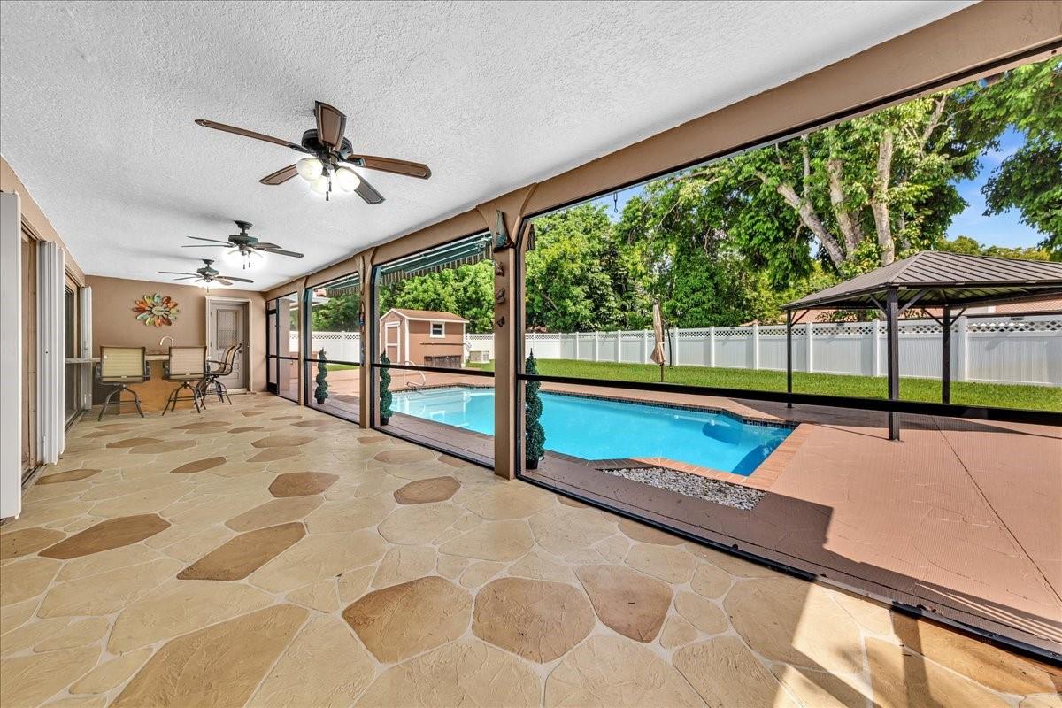 Come visit this stunning 4 beds (+ Bonus Flex Room), 2 baths, 2.5 car garage home situated in a spacious corner lot with endless possibilities! This beautifully maintained and upgraded home offers a large living area, formal living, dining, and family rooms. The open kitchen boasts granite countertops, stainless steel appliances, and ample custom cabinet space. Amazing outdoor area, perfect for entertainment, features an extra large backyard with a large pool, built-in bbq, concrete shed, and covered patio with wet bar, ideal for gatherings or future expansion. The pool also has an automated sunset cover for those hot Florida days and a 22k watt Generac Whole Home generator for hurricane season. This property has everything!
