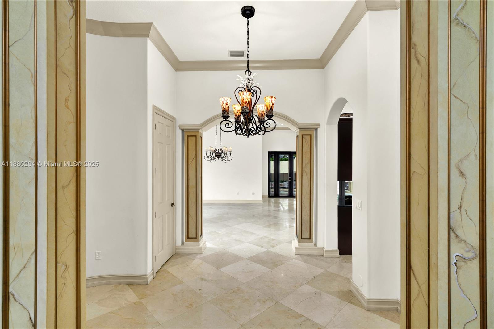 Located in the exclusive gated community of Cutler Cay, this 5/4 spacious residence features tile and wood flooring, custom lighting, crown molding and an expansive gourmet kitchen with ample cabinetry and countertops with backsplash, SS appliances, and breakfast nook. The spacious primary has tray ceilings, custom closet and a stunning bath suite with his and her vanities, garden tub and walk in shower. Exterior has new paint, A/C has been recently serviced, the pool has been filled in and is not functional. Home needs some repair. Community amenities include clubhouse, heated pool, spa, gym, steam room, playground, tennis, basketball & 2 new pickleball courts. All information recorded in the MLS is intended to be accurate but cannot be guaranteed, buyer advised to verify. Sold As-Is.