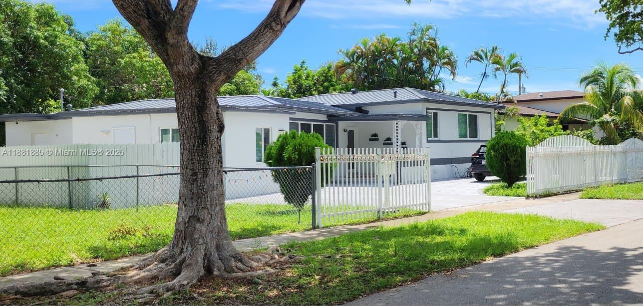 Beautiful 3-bed/2-bath home with a gated circular driveway and versatile layout offering endless possibilities. Features a split floorplan with spacious living/dining areas, a separate family room, and generous bedrooms. The screened-in patio is perfect for entertaining or relaxing amid multiple mango trees. Recent updates include a sleek metal roof and hurricane impact windows and doors for peace of mind and energy efficiency. Refrigerator in kitchen does not convey but will be replaced with another stainless steel one. Washer and dryer also do not convey.