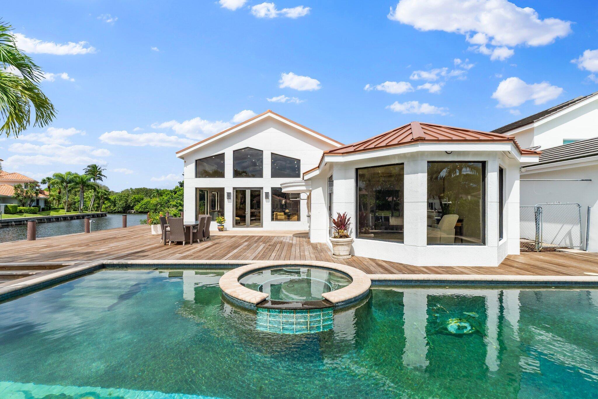 Experience 180 Intracoastal views from this 5BR, 6.1BA estate on a premier corner lot in Frenchman's Creek Beach & Country Club. A private Brazilian Ipe dock features a boat lift, jet ski lift & space for up to a 50' vessel. Enjoy resort-style living with a saltwater pool, spa, hot tub, outdoor shower & expansive entertaining areas. Inside, an upstairs loft captures breathtaking water vistas, while a cozy fireplace enhances the refined design. This residence offers the ultimate in private waterfront luxury, full-service beach club amenities, tennis, pickleball and 36 holes of golf.