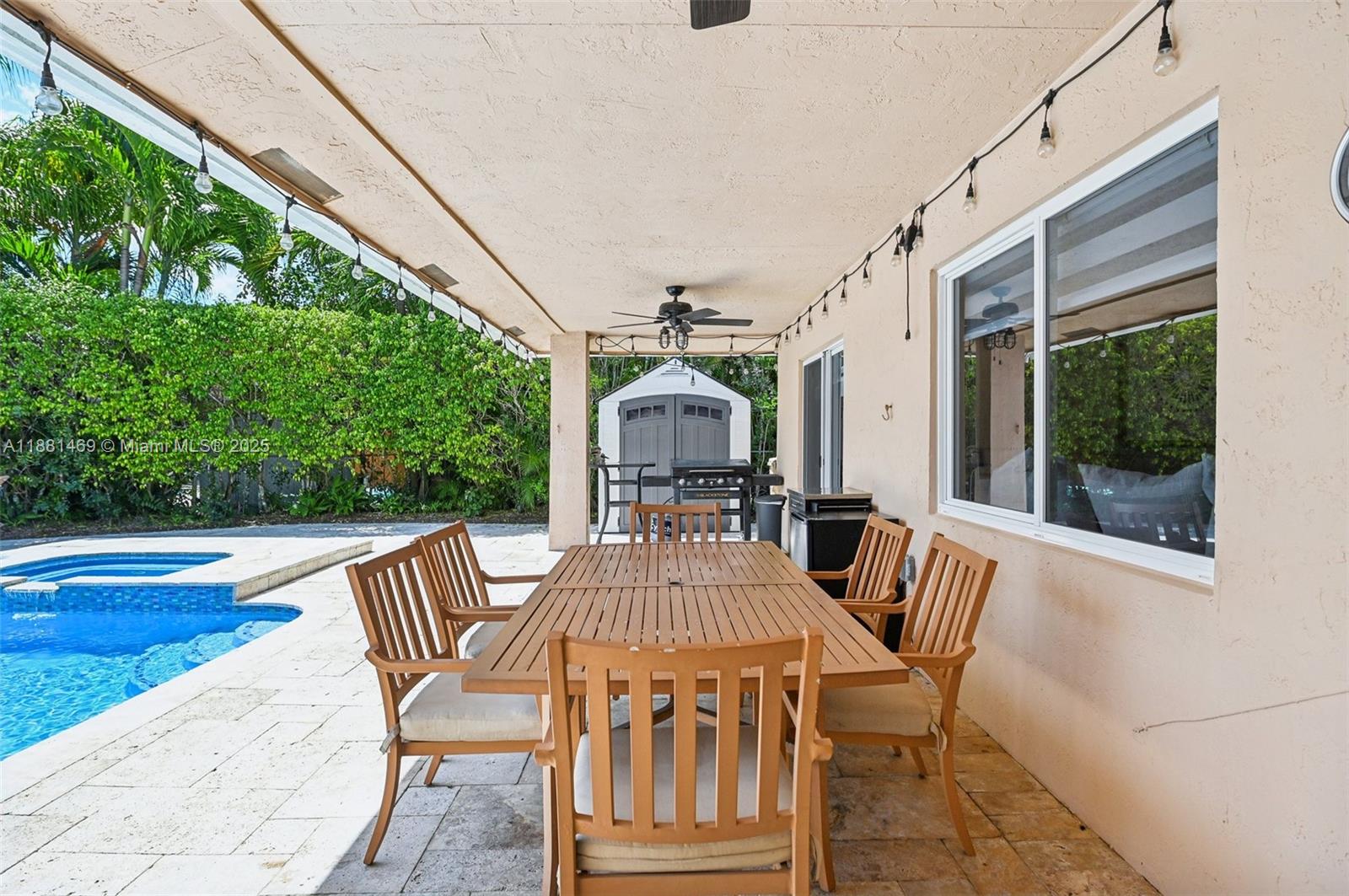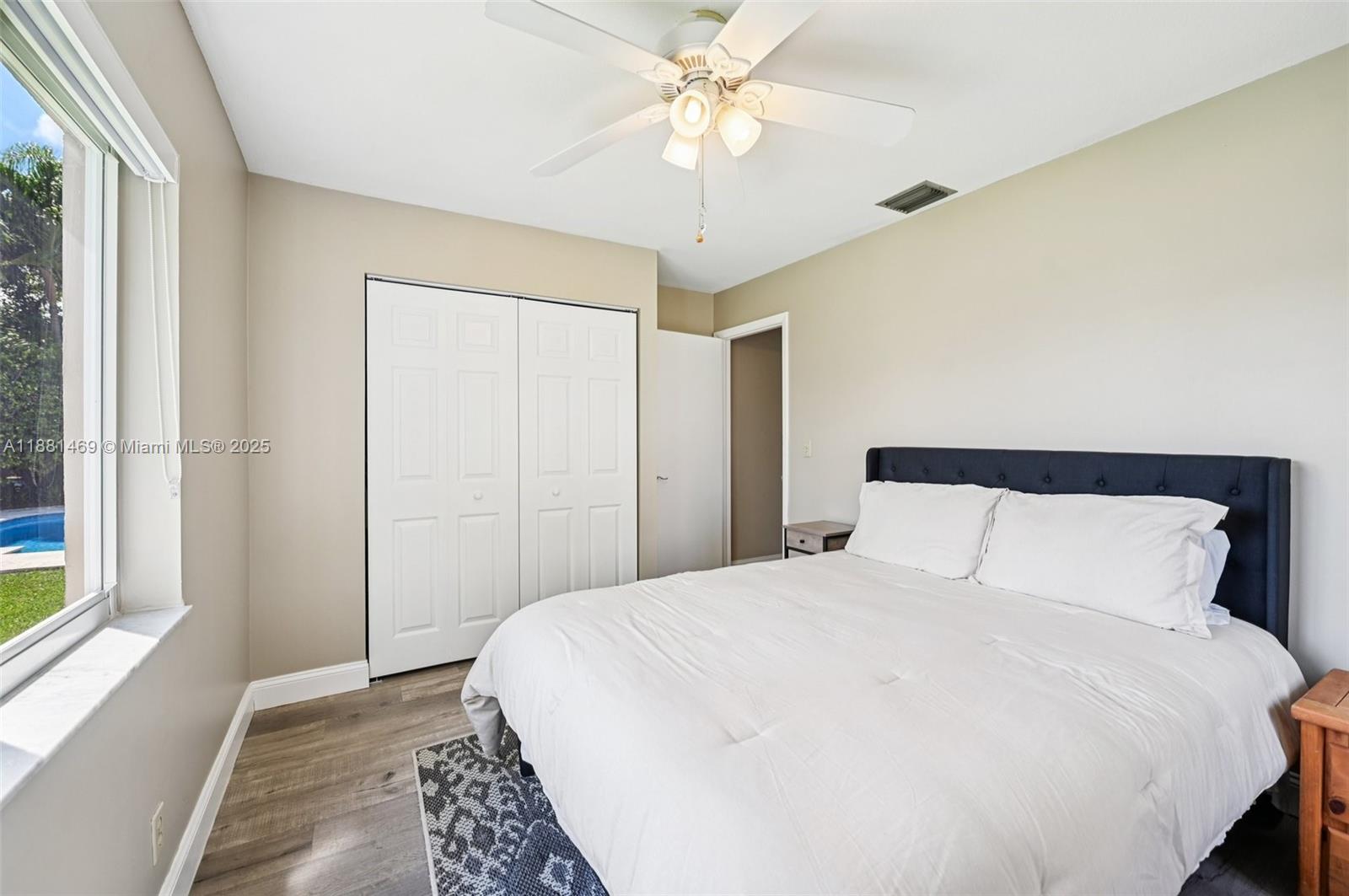 This stunning 4-bedroom, 2-bathroom pool home is situated on a serene lake in sought-after West Davie. Enjoy piece of mind with a 2024 ROOF and IMPACT WINDOWS AND DOORS. Inside, you'll find a spacious, remodeled kitchen with white shaker cabinets, quartz countertops with a waterfall edge, and convenient seating. The bathrooms have been tastefully updated with modern finishes, and luxury vinyl flooring flows throughout the home. The primary suite includes a large walk-in closet with custom built-ins, and zebra blinds add a contemporary touch to every room. The garage includes built-in cabinets for extra storage. Outside, enjoy a large, resurfaced pool, travertine deck and tranquil lake views. Zoned for A-rated schools and a low annual HOA of just $350, this move-in-ready home has it all.