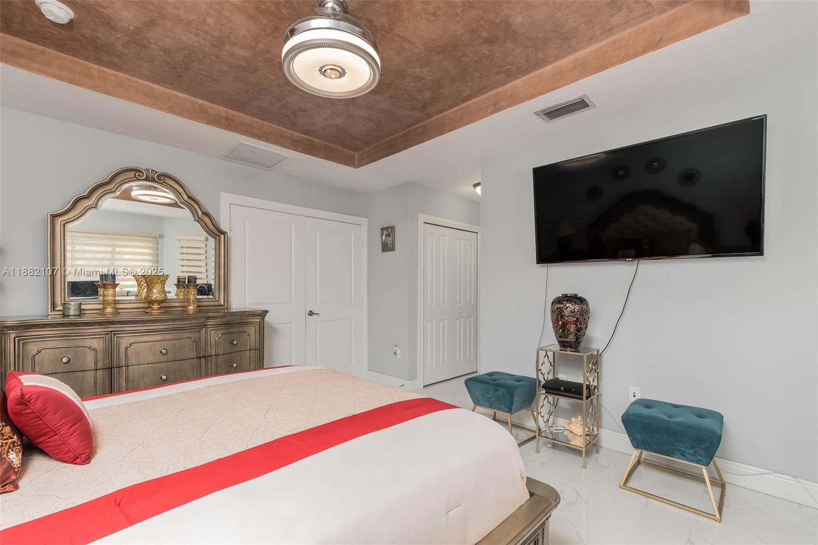 << Sellers are ready to relocate, MOTIVATED to sell>> Corner lot Home NO HOA. It features 4 Beds 2.5 baths, and a 2-car garage. Porcelain tile throughout home, new modern sleek kitchen cabinets and stainless steel appliances. A spacious primary room with high ceilings adding elegance, freshness, and walk-in closet. Bathroom with modern finishes and a European touch glass stand-up glass shower door. All the bathrooms have been remodeled. Impact windows and doors, CUSTOM zebra window treatments. 5 tons A/C unit approx. 2024. Garage has been divided as man's cave, office or room but it can be converted back. Travertine-tiled throughout the entire backyard. Spacious outdoor kitchen perfect for entertaining. Room for a pool and also for boat lovers.