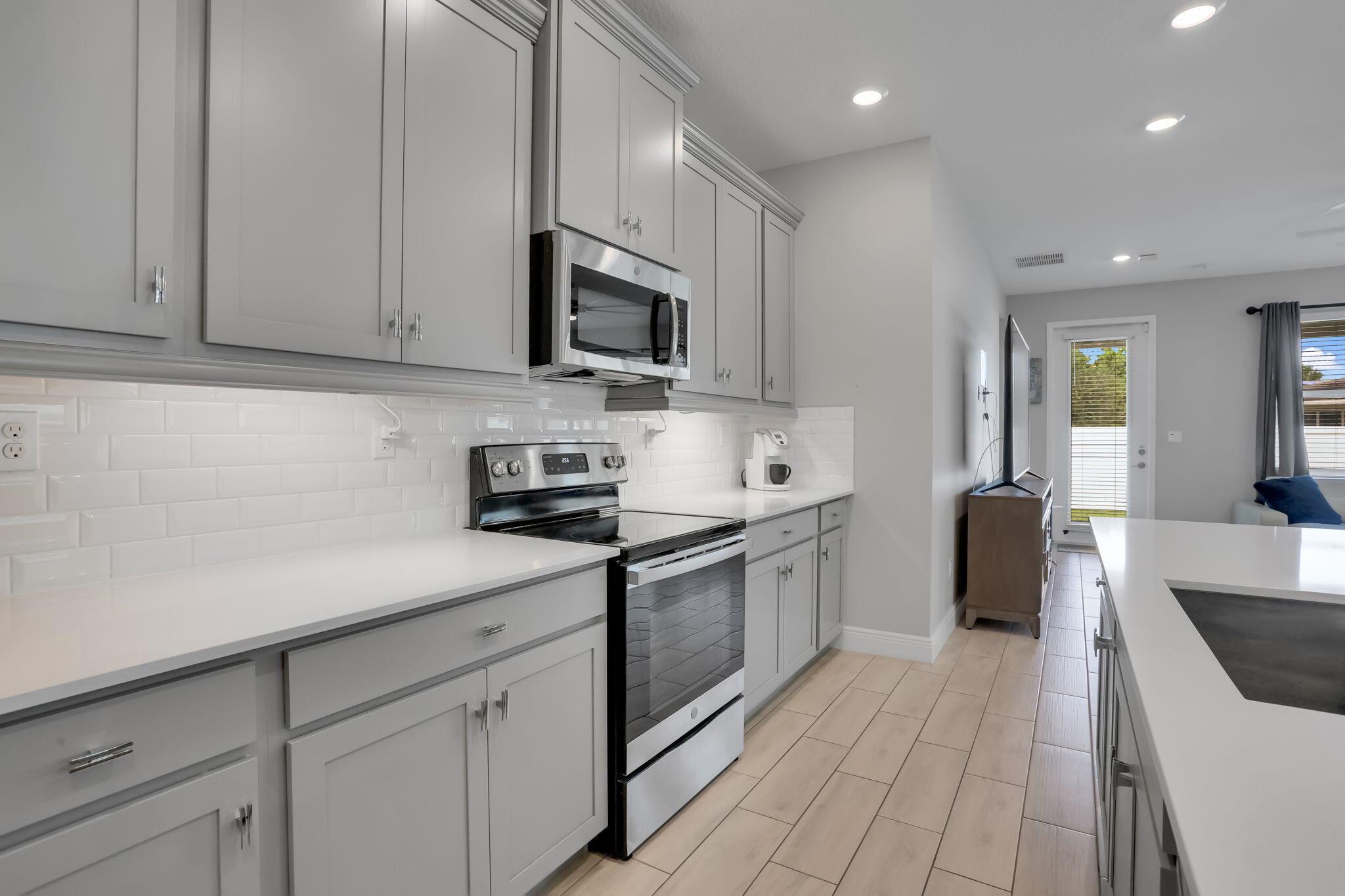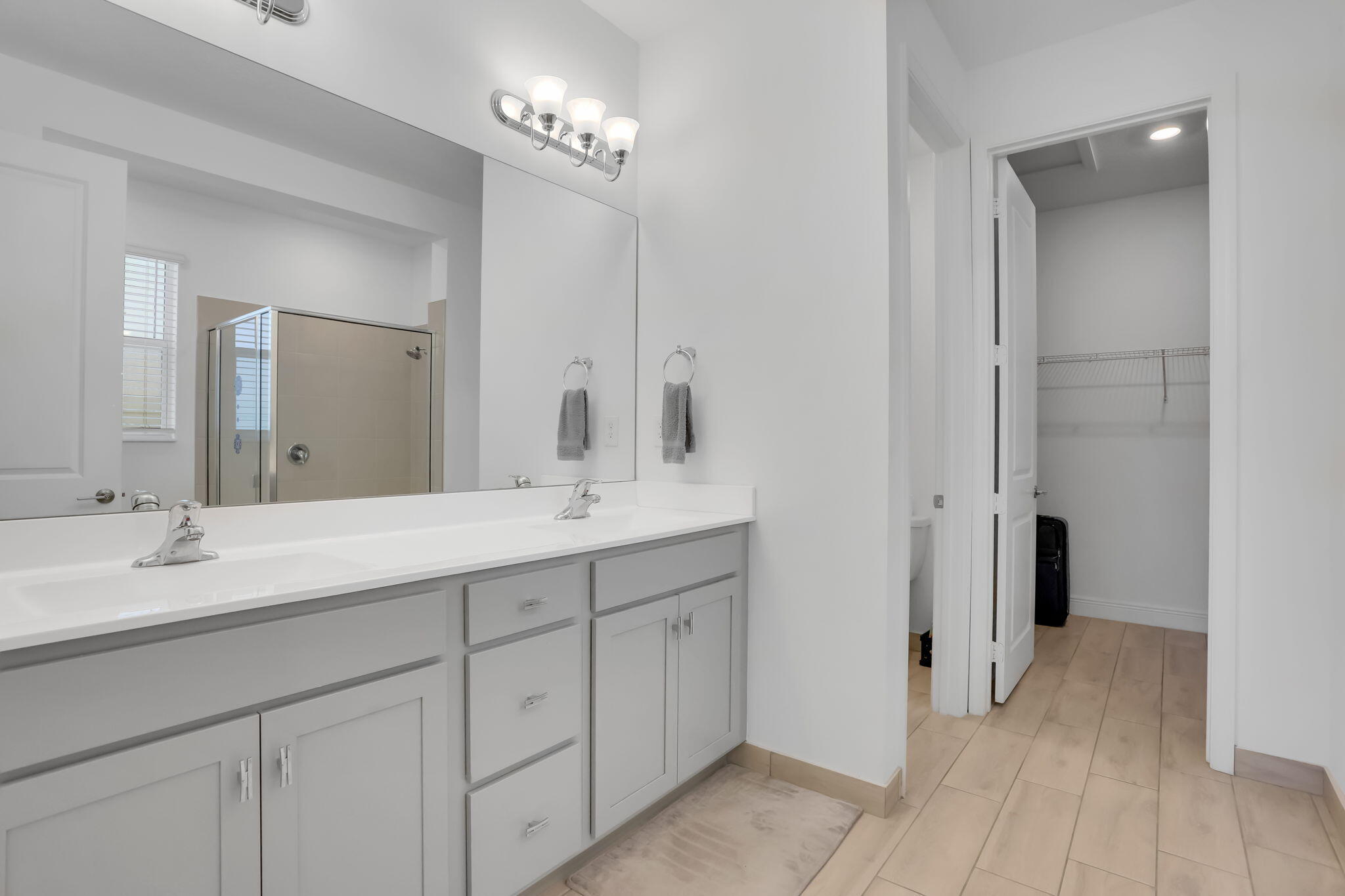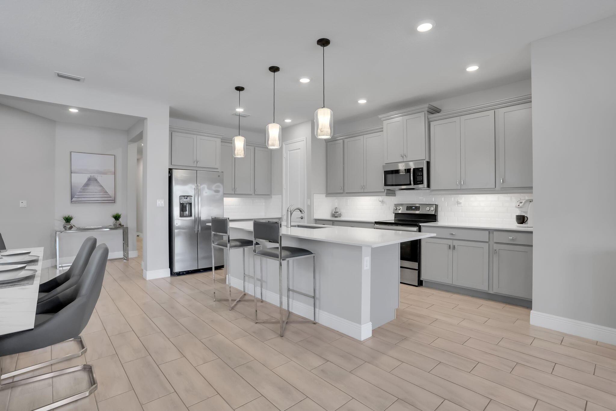The desirable Cisne model features 4 BR, 3 BA, and a highly sought-after dual-Primary Suite layout. The main level features an open floor plan with stainless steel appliances, quartz countertops, pantry, and 42'' wood shaker cabinets with crown molding. A split design places the primary suite on one side of the home, while the opposite wing includes 2 BR, a full bath, and laundry room. An expanded driveway, fully fenced private backyard, professionally applied 3M window tinting, and full impact protection. Upstairs, a massive second primary suite with walk-in closet and full bath provides exceptional flexibility as a guest retreat, playroom, office, or media lounge. Veleiros gated community offers resort-style amenities: Clubhouse, Pool, Fitness Center, Playground. BUYERS AGENTS WELCOME!