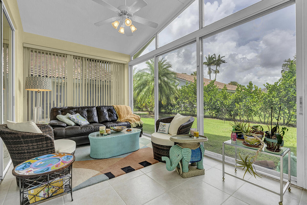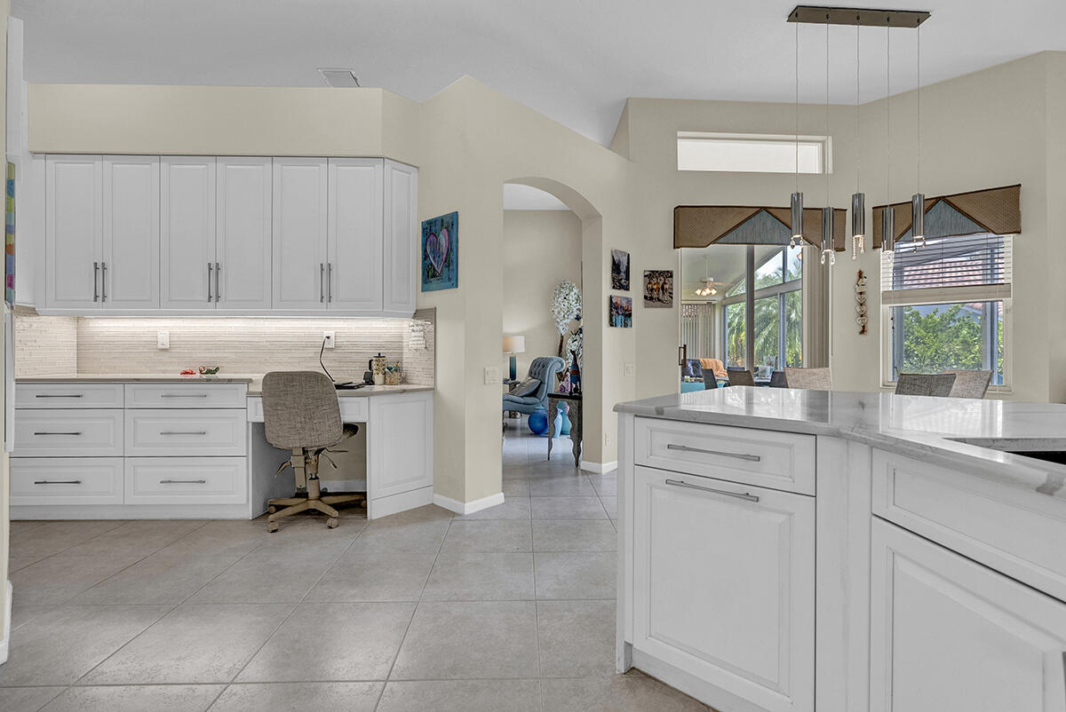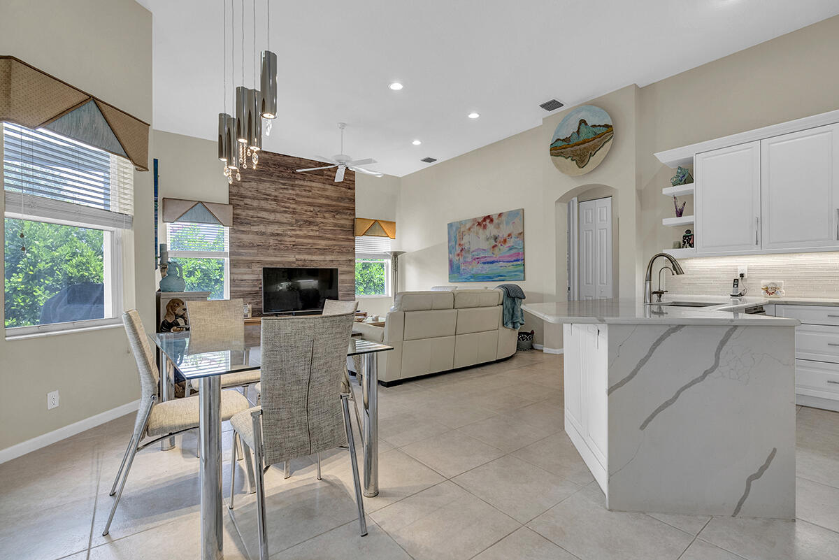Welcome to this 3-bedroom, 2-bathroom home, where comfort meets style. Fully renovated bathrooms and a beautifully updated kitchen give this home a fresh, modern feel. The chef's kitchen boasts sleek new appliances, upgraded cabinetry with convenient pull-out shelves, and an open layout perfect for entertaining.Enjoy year-round comfort in the spacious lanai, now under air, ideal for relaxing or hosting guests. The high ceilings and strategically placed high hats create a bright, airy ambiance throughout the main living areas. A charming decorative wood wall in the family room adds warmth and character.