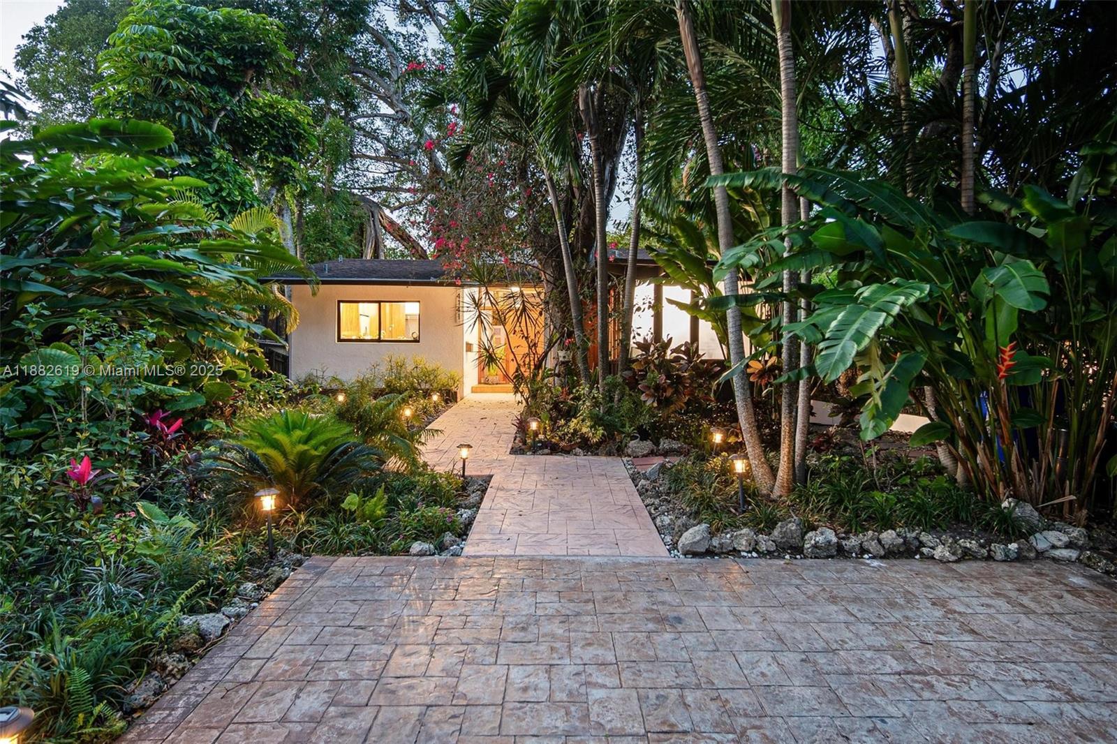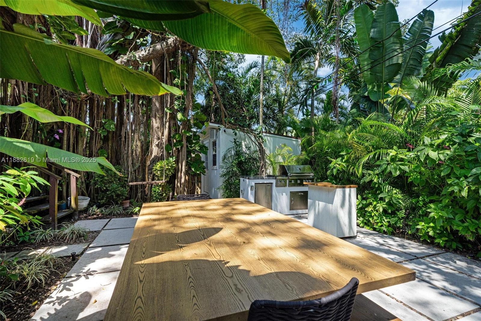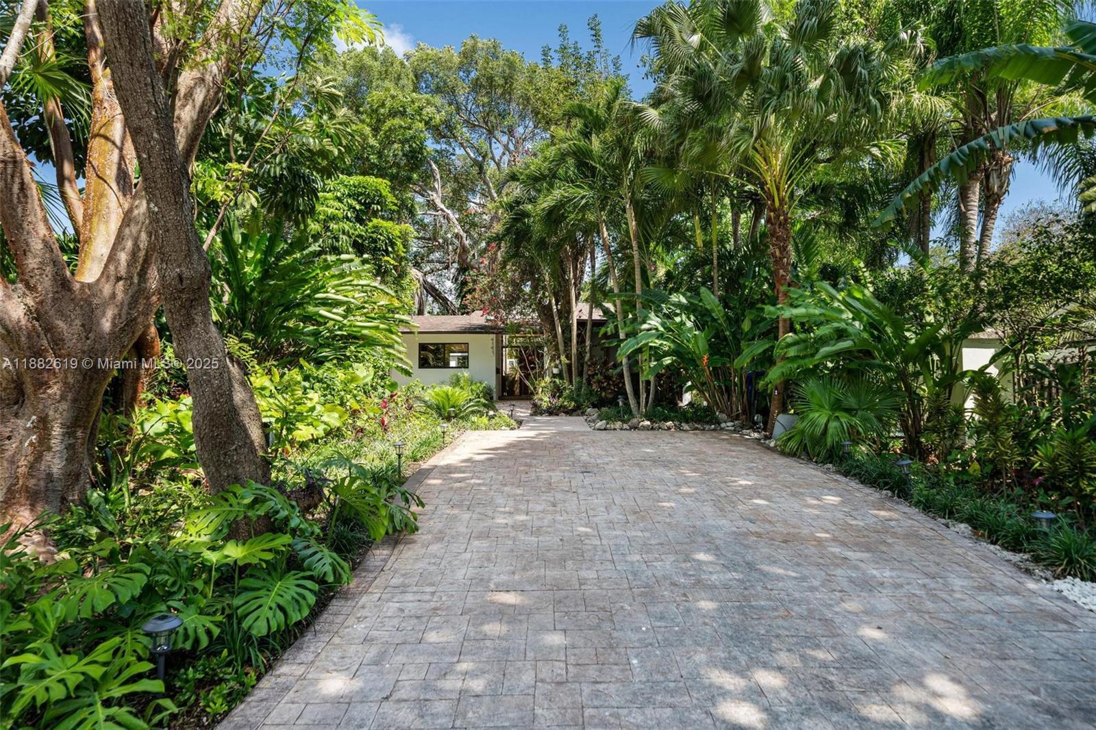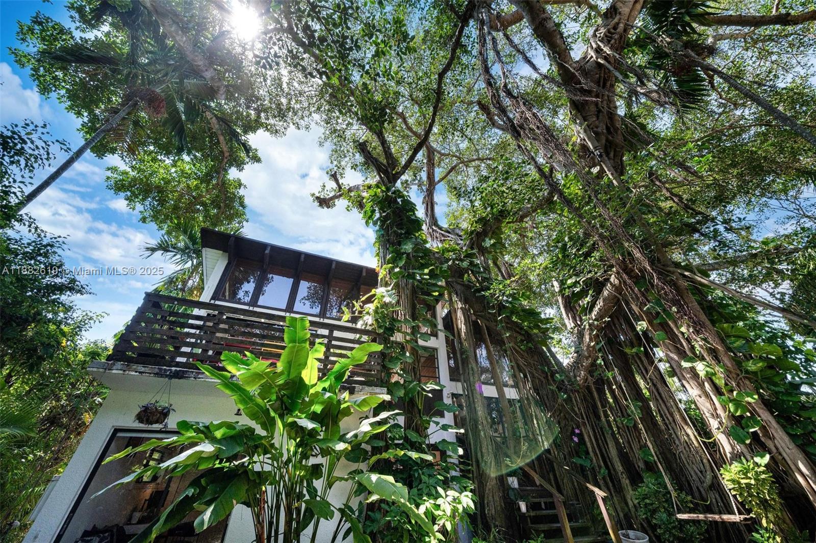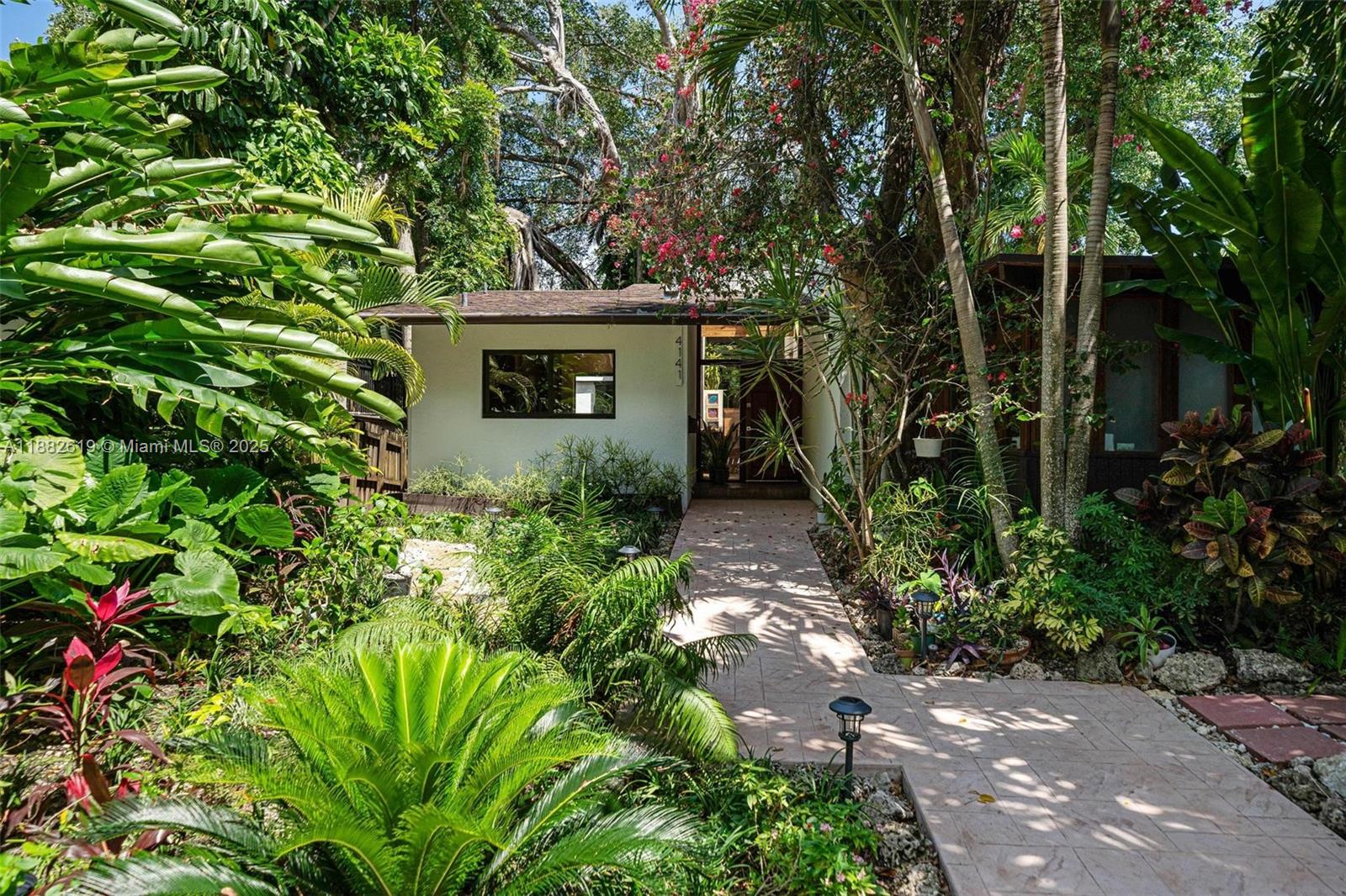 Nestled away in prime Coconut Grove on one of its most lush, tree-lined streets, this iconic Modernist gem is in perfect harmony with nature. Designed for flow and light, its soaring ceilings and jungle-style views elevate every room. This elegantly finished 3-bedroom + office + family room stuns with exotic wood floors, a sleek gas kitchen, remodeled baths, “in the trees” balcony, and “head in the stars” patio. Entertain outdoors with a dining kitchen set in a tropical garden with timed lighting and smart irrigation. Lots of space to park6-car driveway with EV outlet. Climate-controlled veranda and shed, impact windows, skylight, whirlpool tub, and updated A/C, roof, septic, and electrical. Your tropical haven awaits mango trees, hummingbirds, pure serenity in a magical setting.