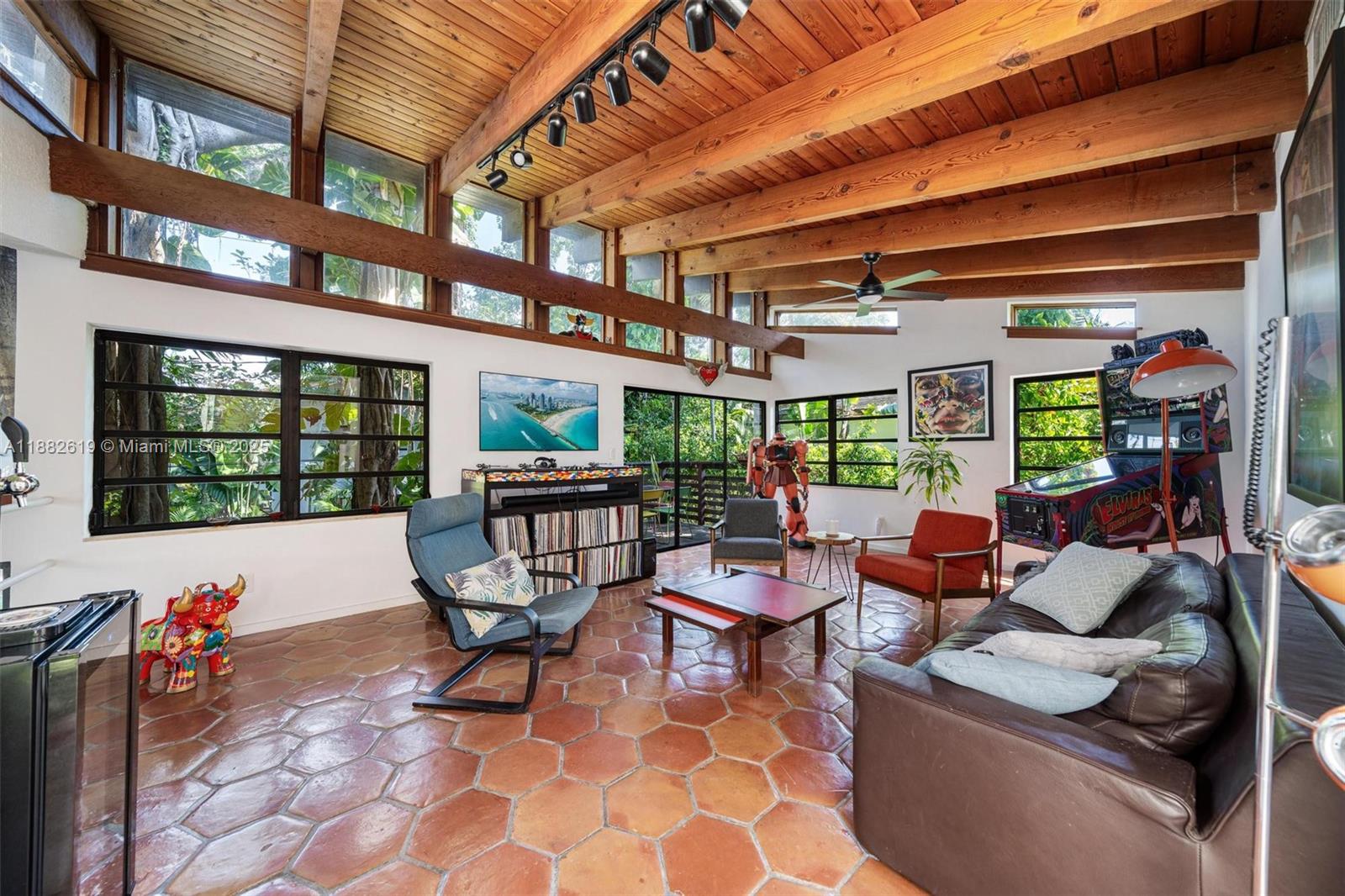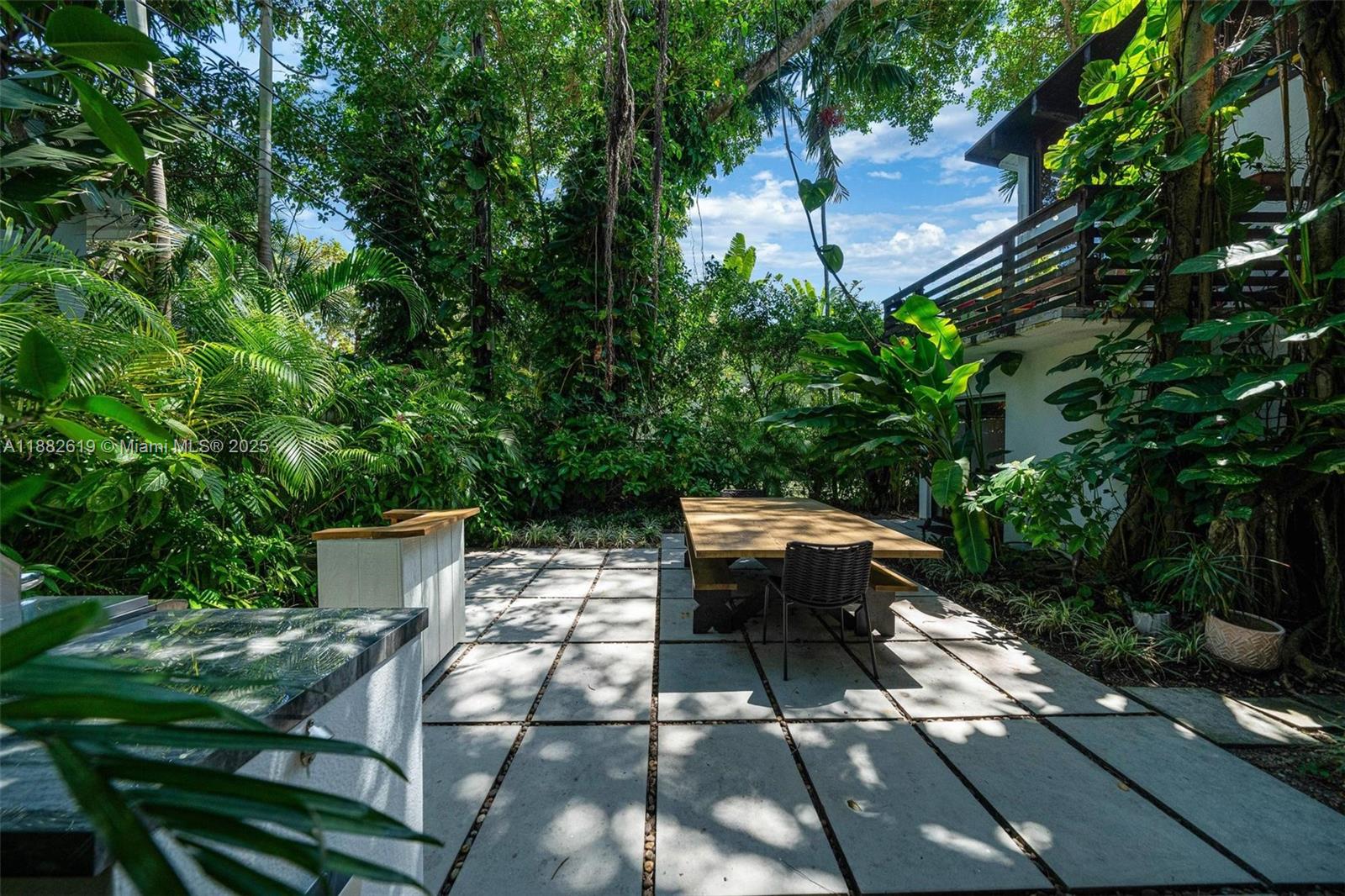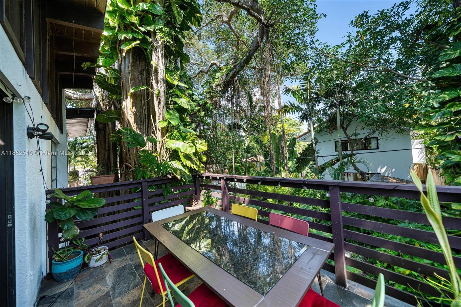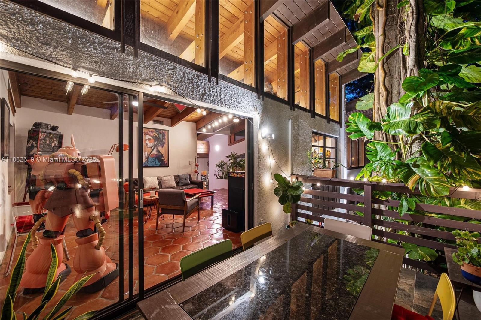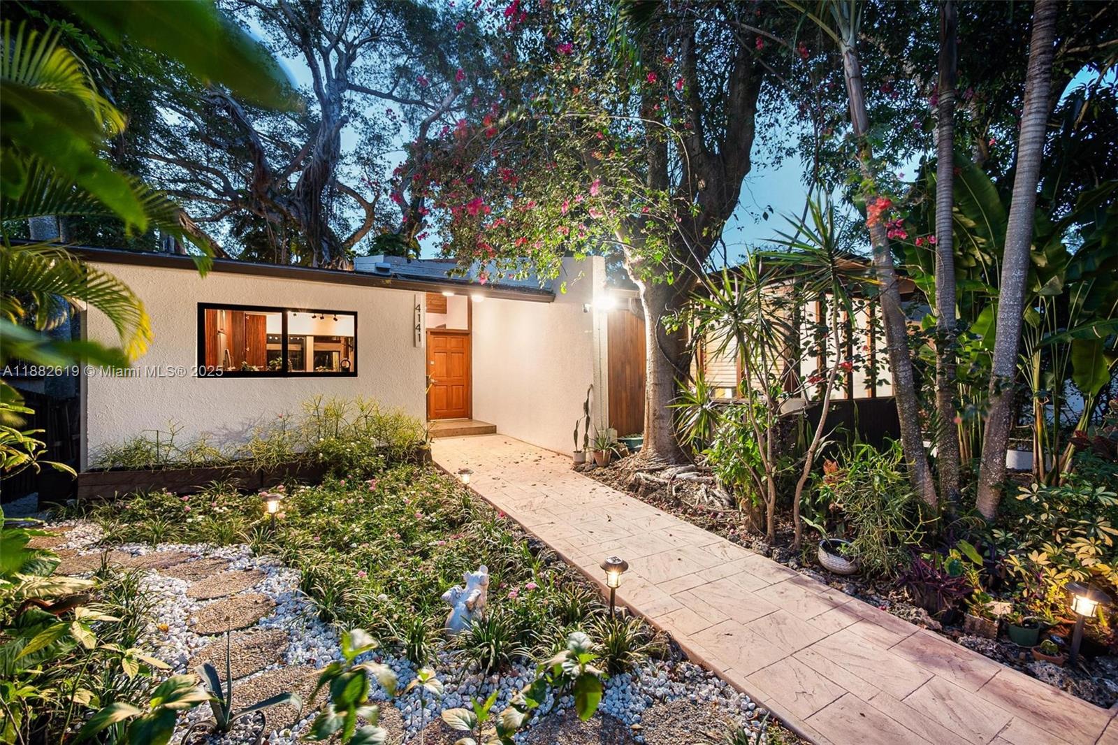 Nestled away in prime Coconut Grove on one of its most lush, tree-lined streets, this iconic Modernist gem is in perfect harmony with nature. Designed for flow and light, its soaring ceilings and jungle-style views elevate every room. This elegantly finished 3-bedroom + office + family room stuns with exotic wood floors, a sleek gas kitchen, remodeled baths, “in the trees” balcony, and “head in the stars” patio. Entertain outdoors with a dining kitchen set in a tropical garden with timed lighting and smart irrigation. Lots of space to park6-car driveway with EV outlet. Climate-controlled veranda and shed, impact windows, skylight, whirlpool tub, and updated A/C, roof, septic, and electrical. Your tropical haven awaits mango trees, hummingbirds, pure serenity in a magical setting.