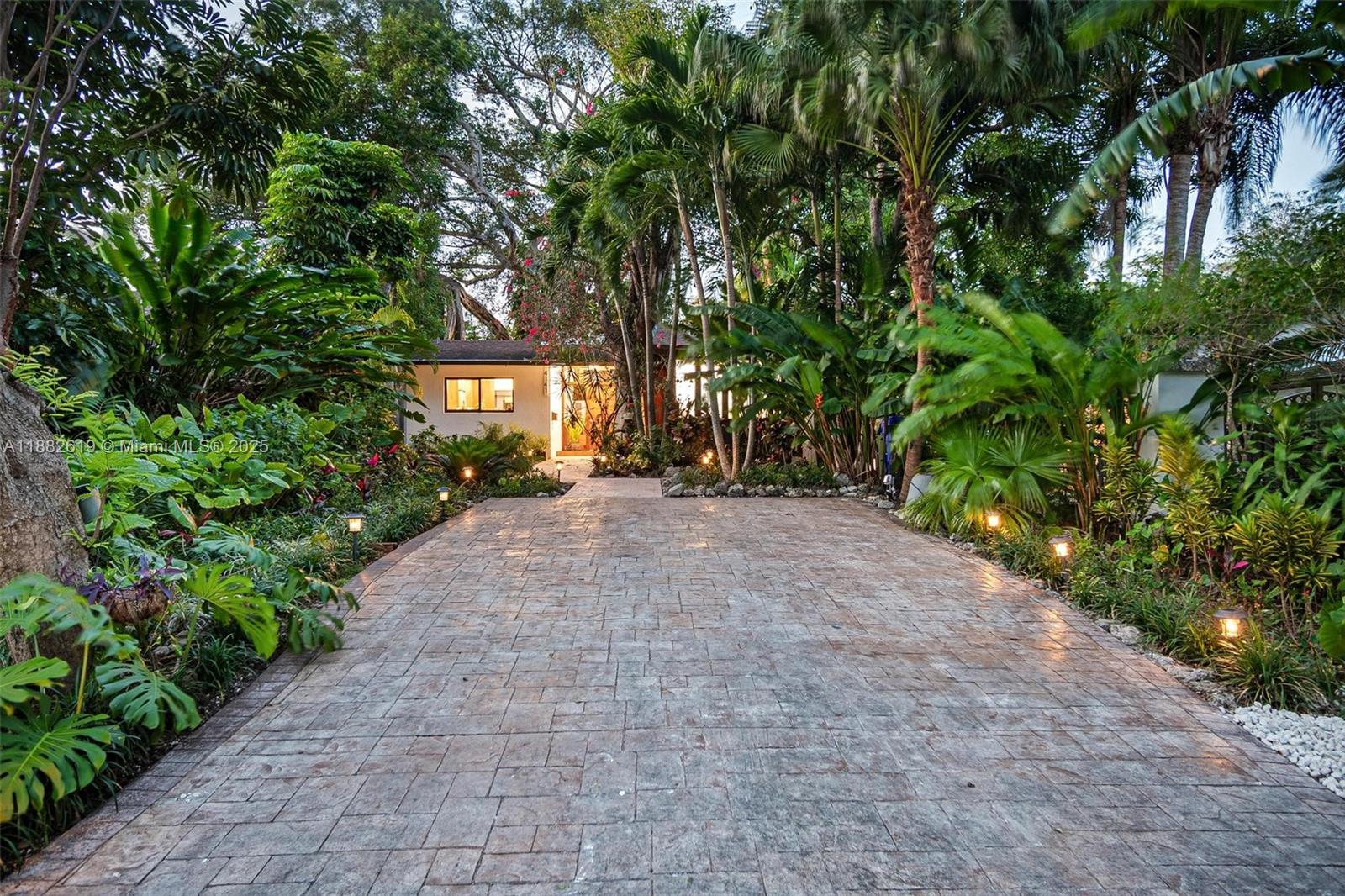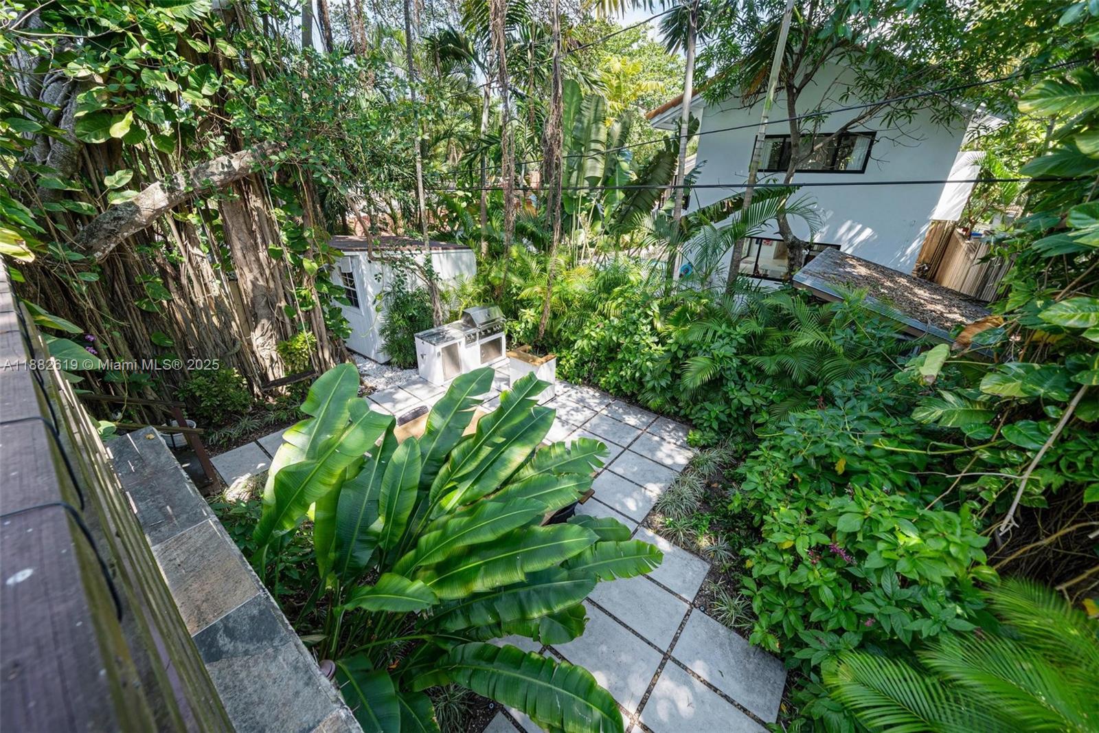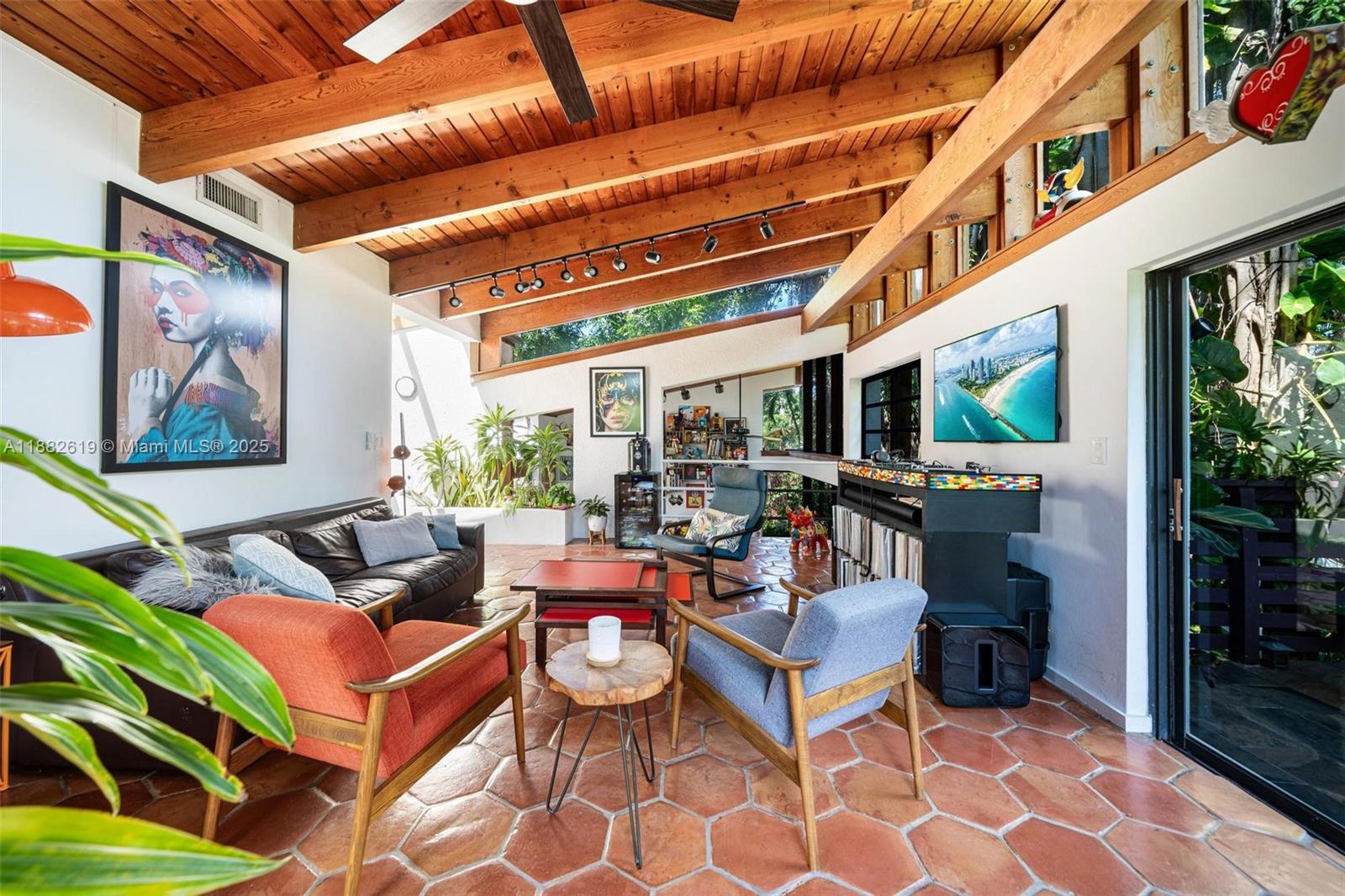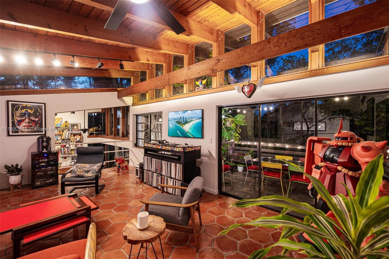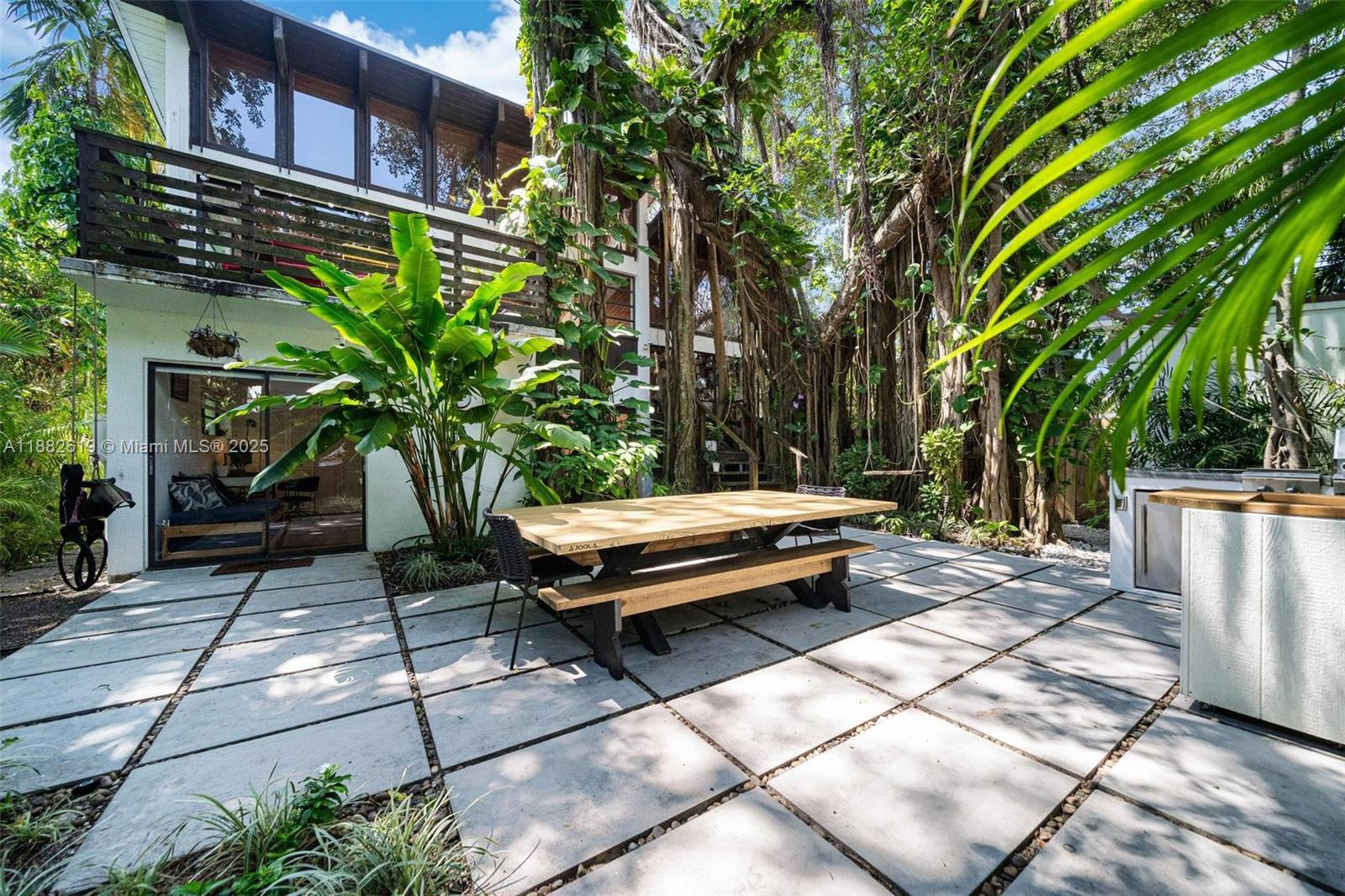Nestled away in prime Coconut Grove on one of its most lush, tree-lined streets, this iconic Modernist gem is in perfect harmony with nature. Designed for flow and light, its soaring ceilings and jungle-style views elevate every room. This elegantly finished 3-bedroom + office + family room stuns with exotic wood floors, a sleek gas kitchen, remodeled baths, “in the trees” balcony, and “head in the stars” patio. Entertain outdoors with a dining kitchen set in a tropical garden with timed lighting and smart irrigation. Lots of space to park6-car driveway with EV outlet. Climate-controlled veranda and shed, impact windows, skylight, whirlpool tub, and updated A/C, roof, septic, and electrical. Your tropical haven awaits mango trees, hummingbirds, pure serenity in a magical setting.
