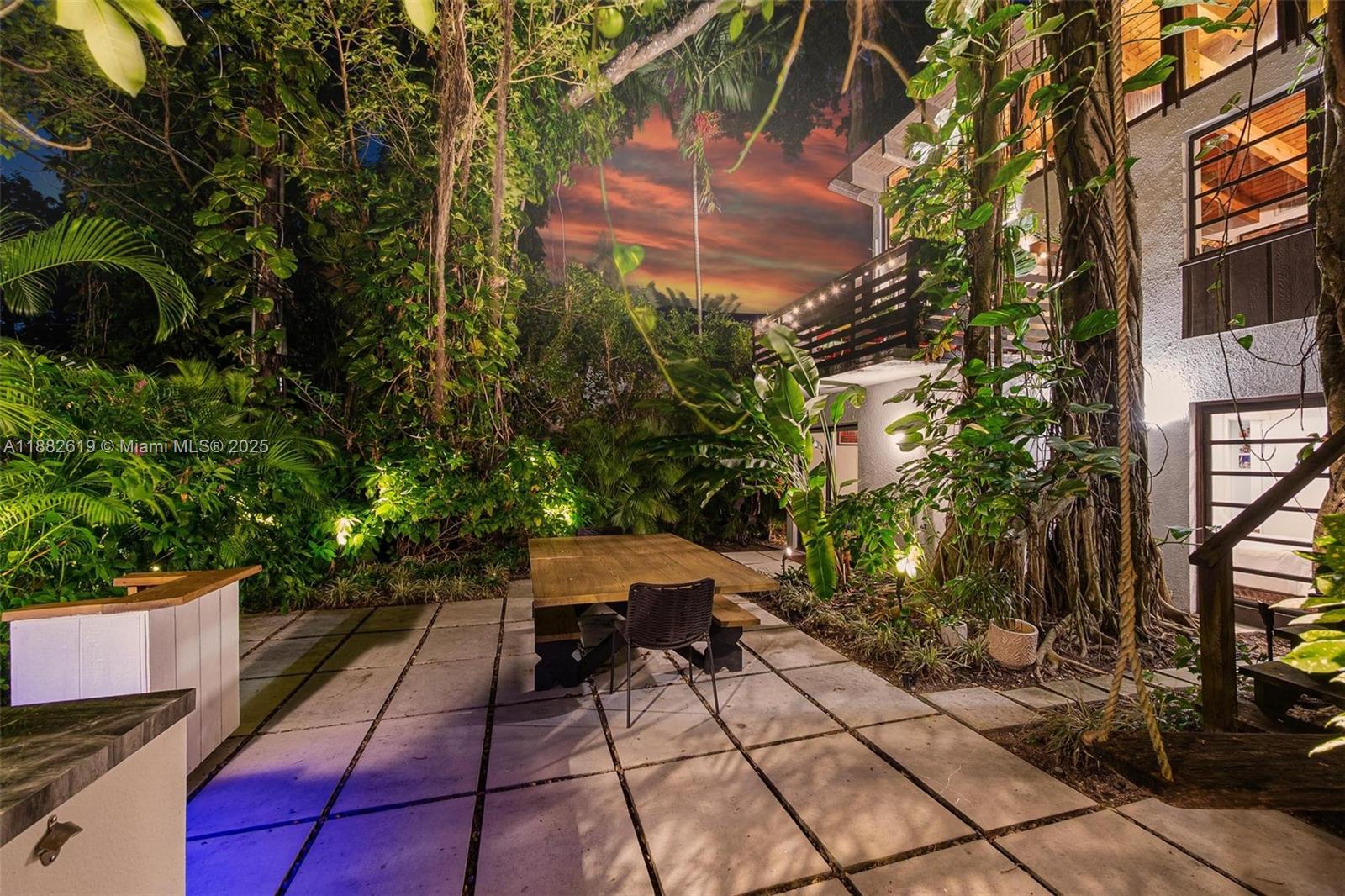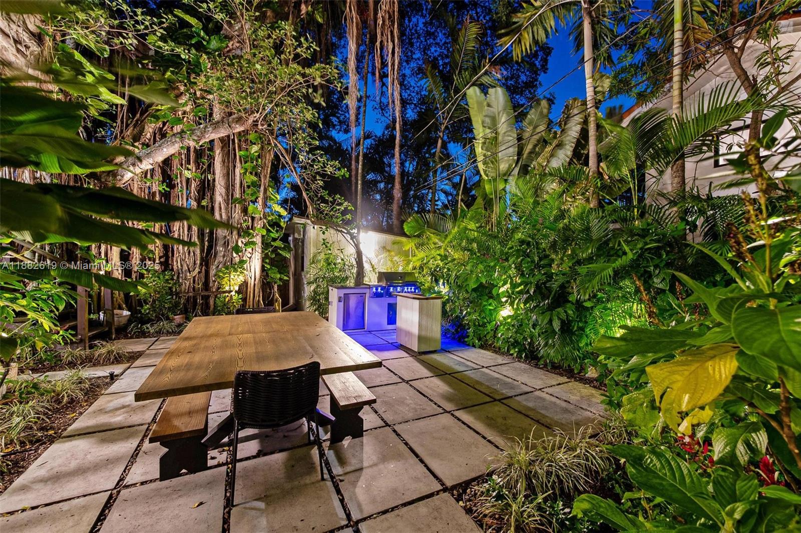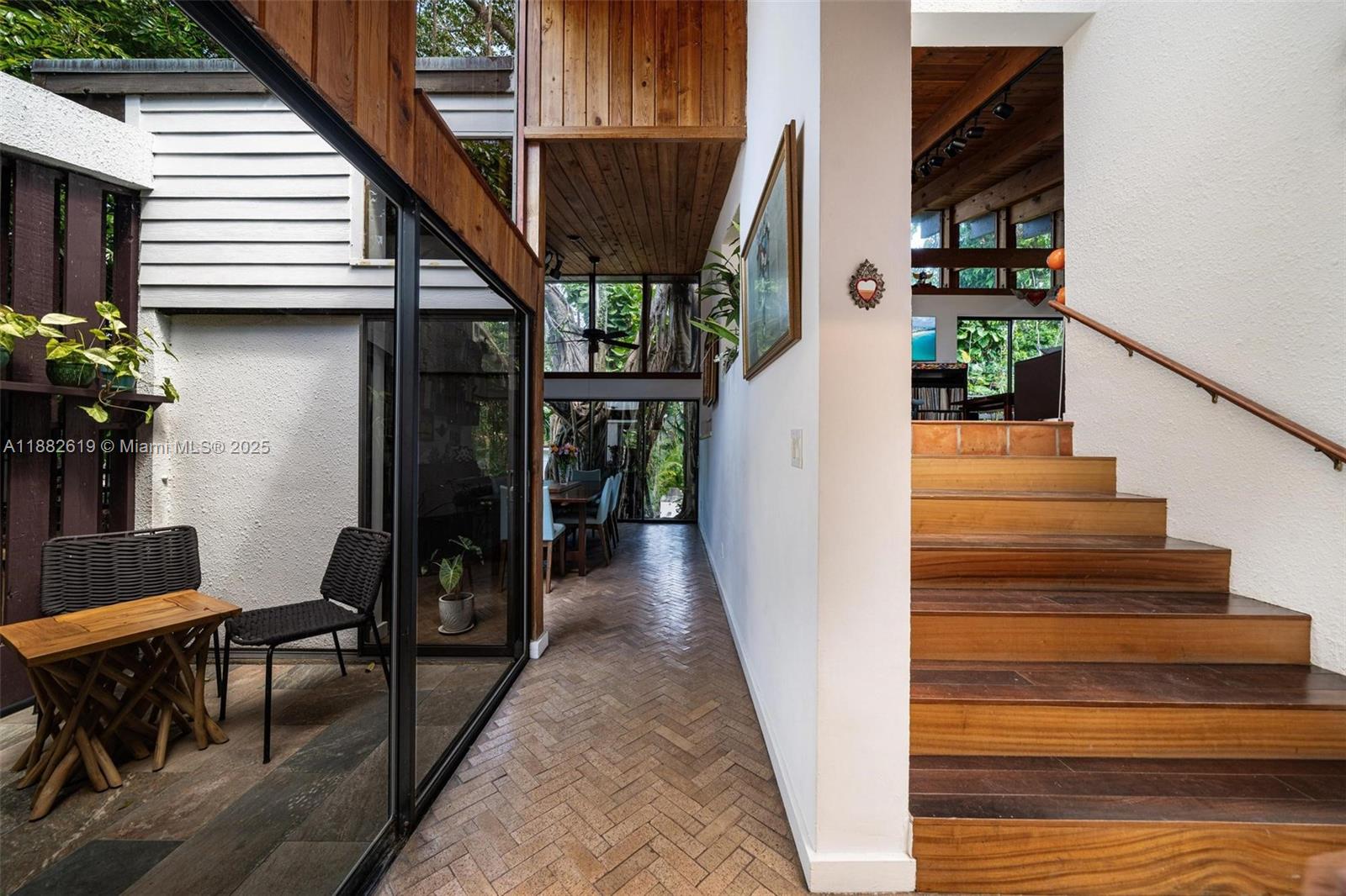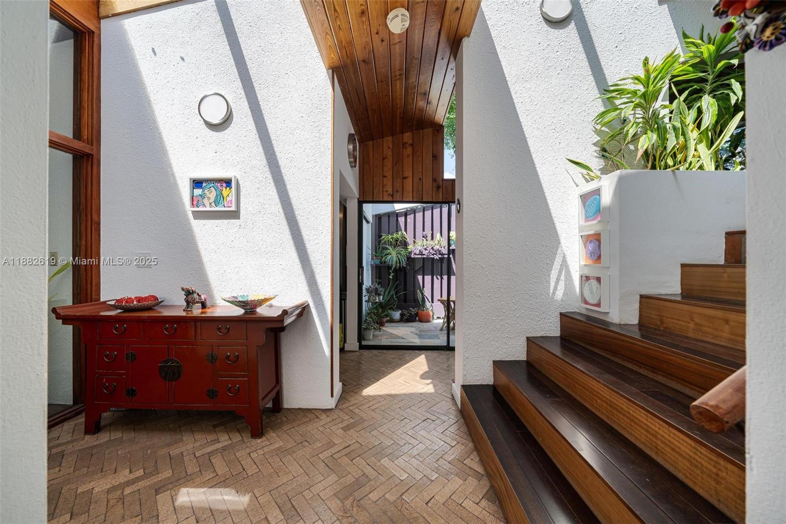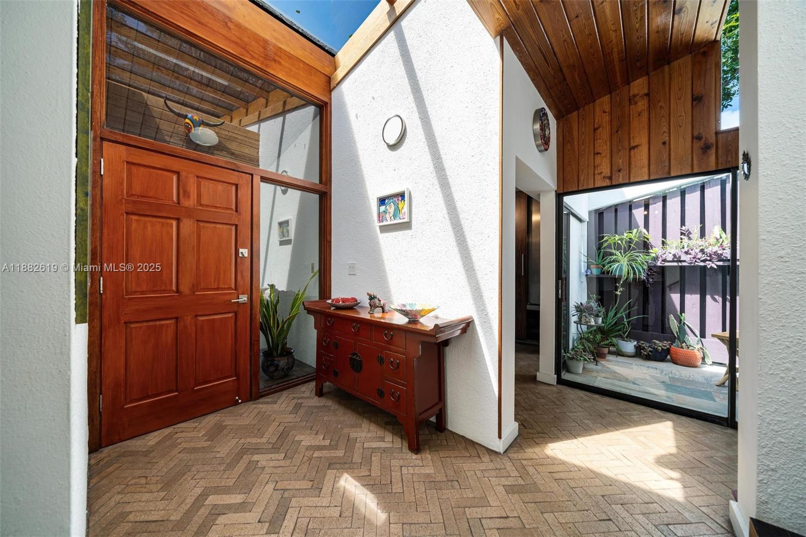 Nestled away in prime Coconut Grove on one of its most lush, tree-lined streets, this iconic Modernist gem is in perfect harmony with nature. Designed for flow and light, its soaring ceilings and jungle-style views elevate every room. This elegantly finished 3-bedroom + office + family room stuns with exotic wood floors, a sleek gas kitchen, remodeled baths, “in the trees” balcony, and “head in the stars” patio. Entertain outdoors with a dining kitchen set in a tropical garden with timed lighting and smart irrigation. Lots of space to park6-car driveway with EV outlet. Climate-controlled veranda and shed, impact windows, skylight, whirlpool tub, and updated A/C, roof, septic, and electrical. Your tropical haven awaits mango trees, hummingbirds, pure serenity in a magical setting.