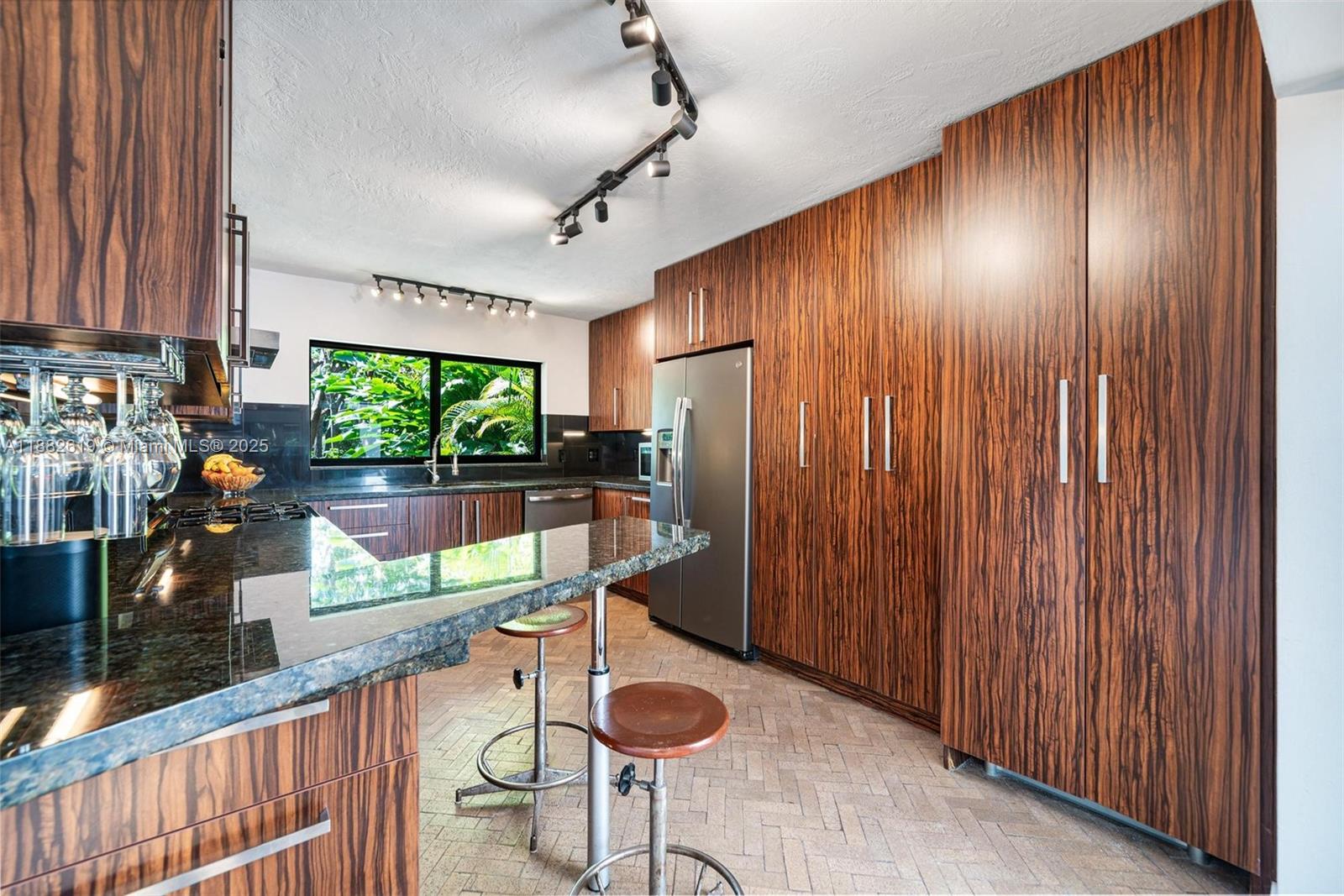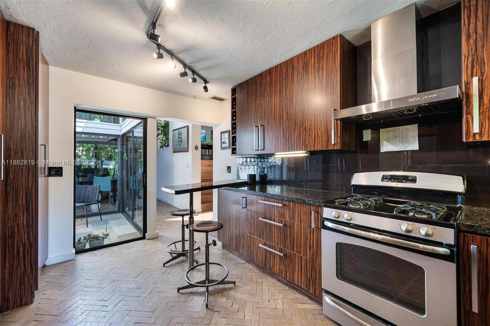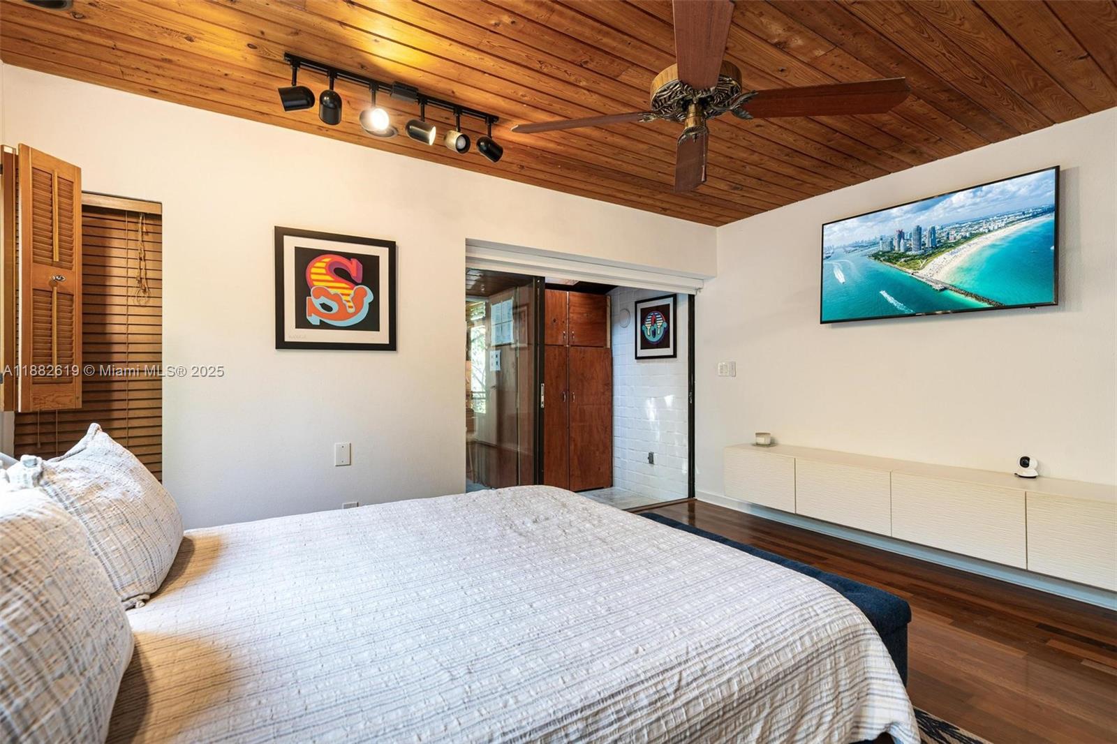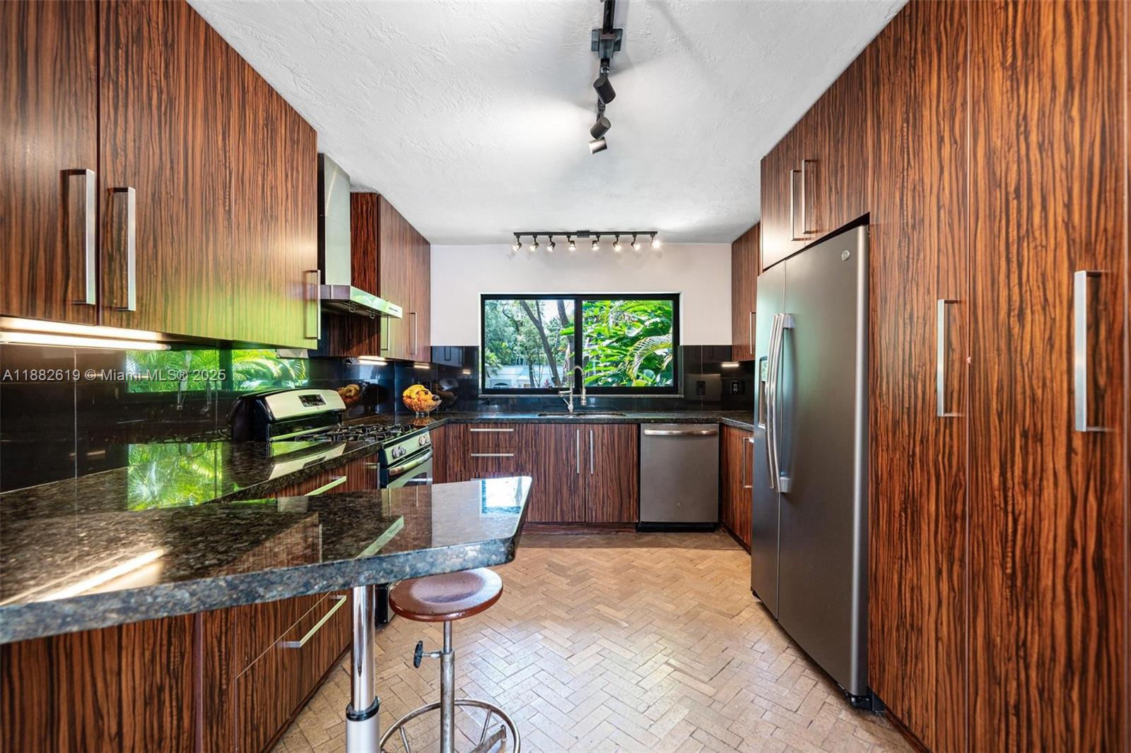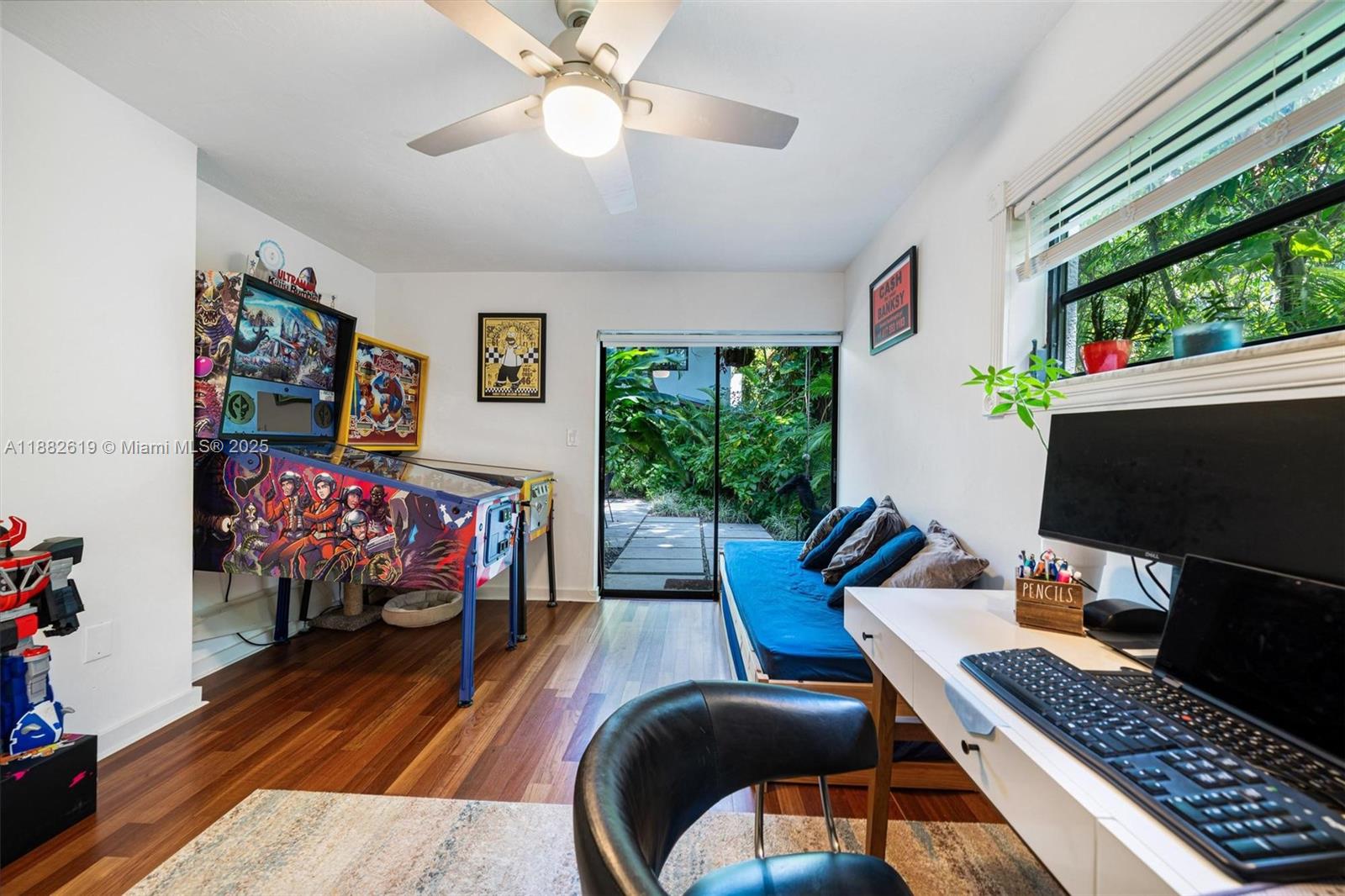 Nestled away in prime Coconut Grove on one of its most lush, tree-lined streets, this iconic Modernist gem is in perfect harmony with nature. Designed for flow and light, its soaring ceilings and jungle-style views elevate every room. This elegantly finished 3-bedroom + office + family room stuns with exotic wood floors, a sleek gas kitchen, remodeled baths, “in the trees” balcony, and “head in the stars” patio. Entertain outdoors with a dining kitchen set in a tropical garden with timed lighting and smart irrigation. Lots of space to park6-car driveway with EV outlet. Climate-controlled veranda and shed, impact windows, skylight, whirlpool tub, and updated A/C, roof, septic, and electrical. Your tropical haven awaits mango trees, hummingbirds, pure serenity in a magical setting.