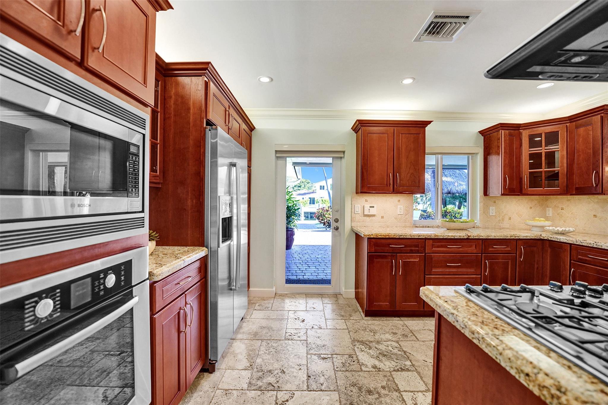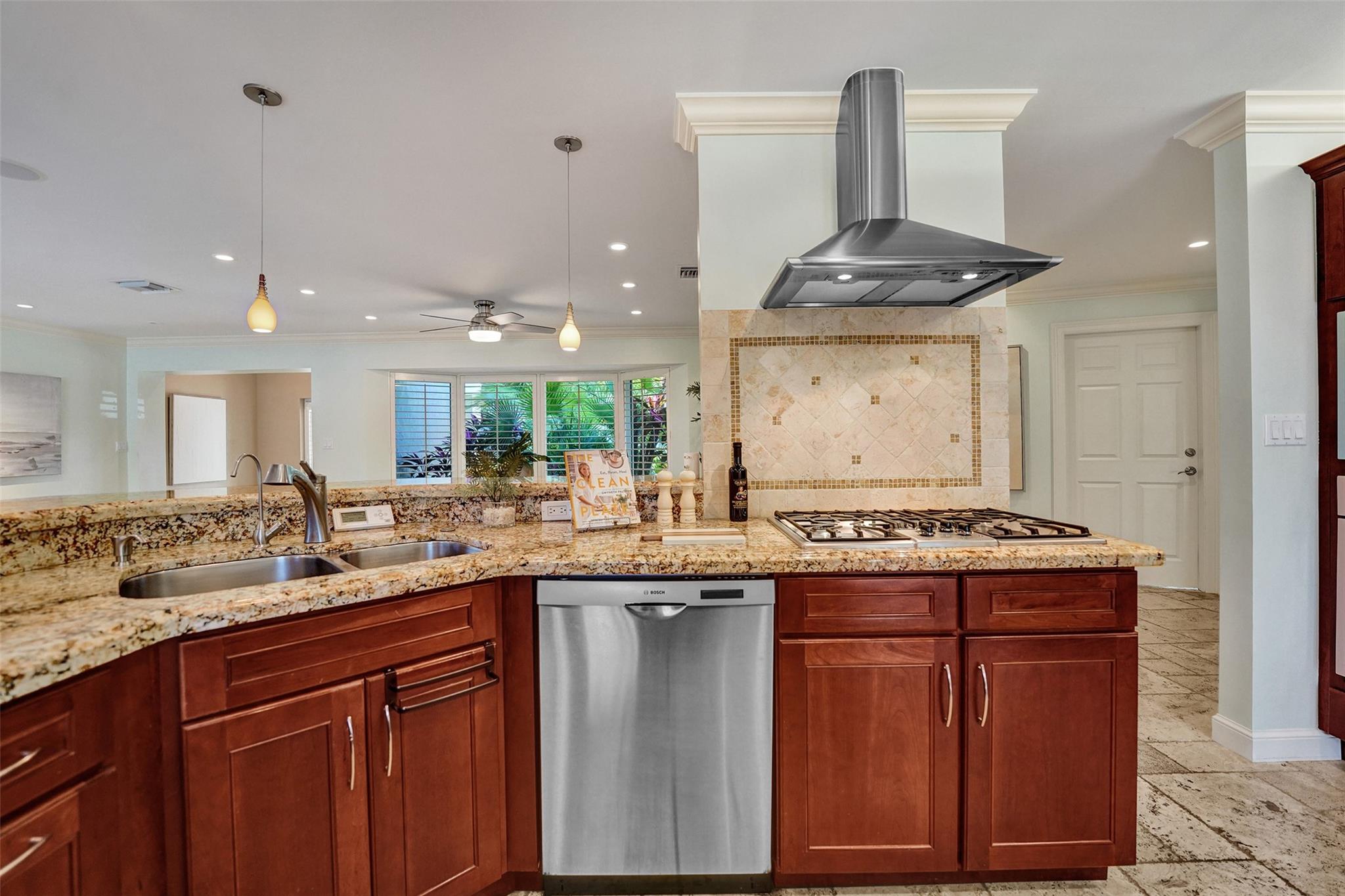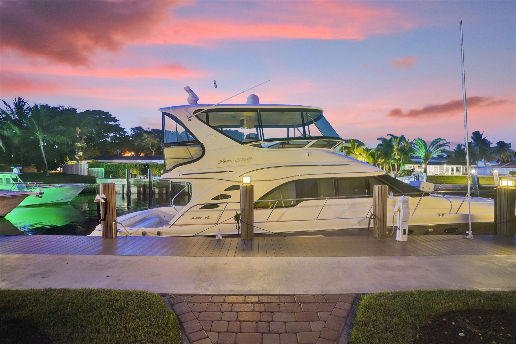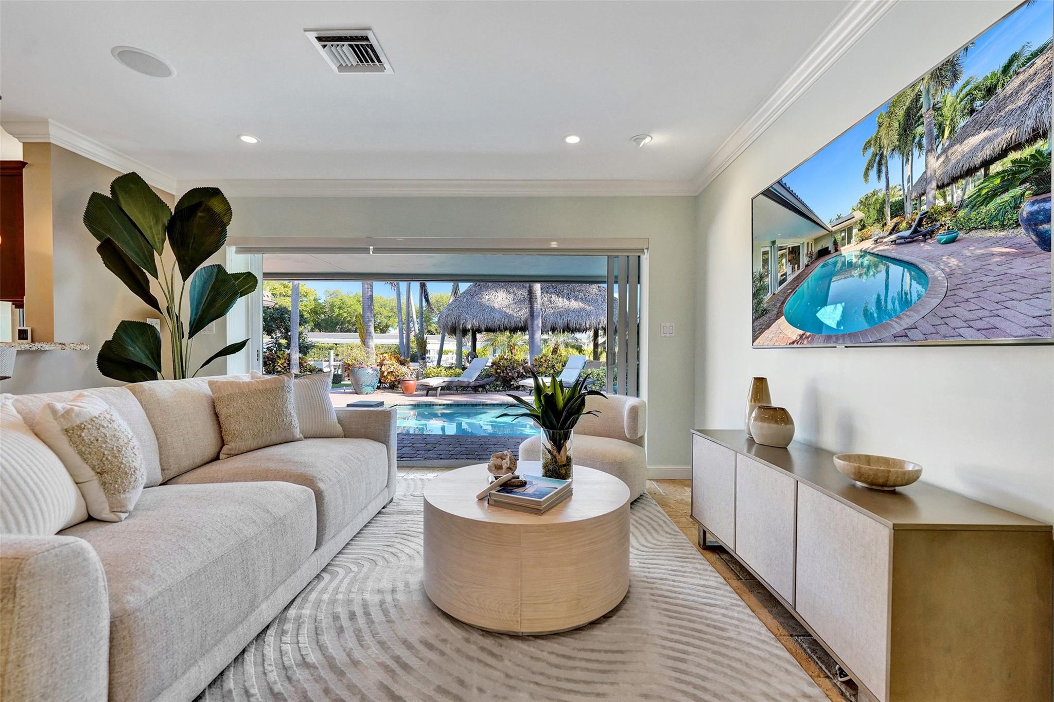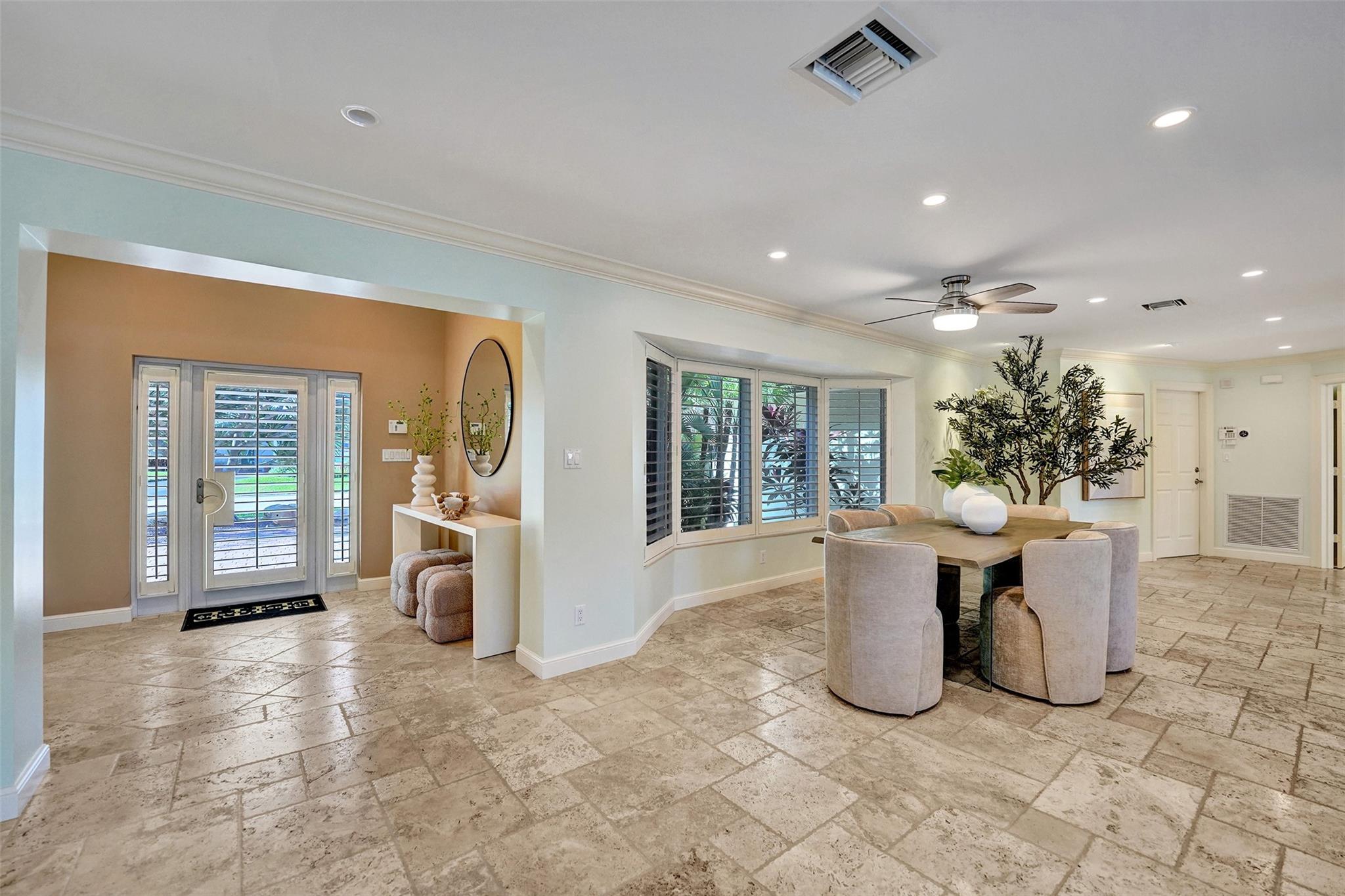 This stunning 2-bed 2-bath w/ office, fully rebuilt in 2008, home on a cul-de-sac offers 80 ft of waterfront & 60 ft of dock, no fixed bridges, & direct access to Intracoastal & ocean—just 6 houses in from the Intracoastal & minutes to the Hillsboro Inlet! Nestled on a spacious 9,600 sq ft lot, this home features a heated pool, an outdoor shower, & a tiki hut—perfect for evening entertaining. Enjoy the added benefits of solar panels & peace of mind w/hurricane impact windows & doors. The property includes a 2-car garage, w/plenty of storage & parking. Boating enthusiasts will appreciate the updated seawall/dock with view of the lighthouse! Income producing dock. A split floor plan provides privacy, & the kitchen boasts Bosch appliances w/ a gas range. Natural Travertine Floors thru out.