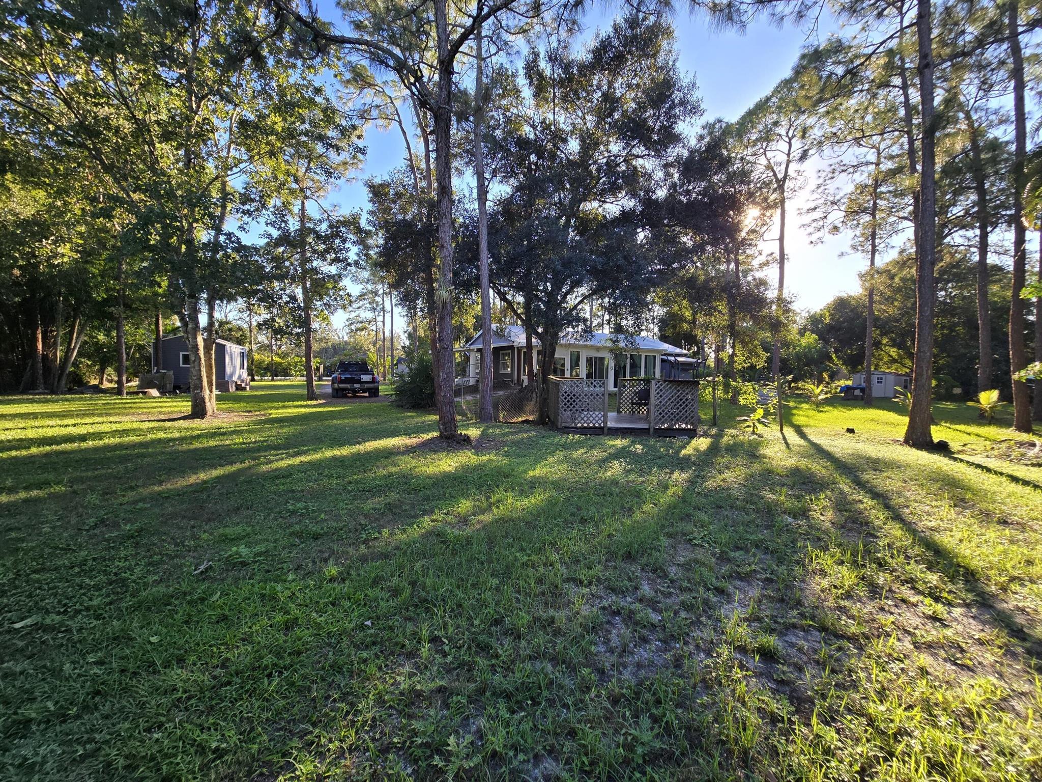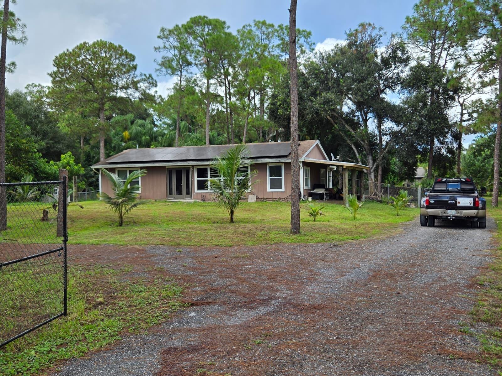 Beautifully remodeled and inviting home featuring 3 bedrooms, 2 bathrooms, and an additional multi-purpose room ideal for a mother-in-law suite, office, 4th bedroom, or efficiency. The home offers a stunning kitchen, bright open spaces, and a warm, welcoming atmosphere throughout.The property includes 4 sheds and 1 container, thoughtfully distributed for various uses. One shed is ready to be finished as a multi-purpose space--such as an efficiency, mother-in-law suite, or office--with kitchen, bathroom, insulation, ceramic floors, and A/C, and can easily be expanded into a larger guest or living area.Additional features include fruit trees, and an area ready to complete a covered parking space for over two cars.Excellent location, offering comfort, versatility, and great potential!