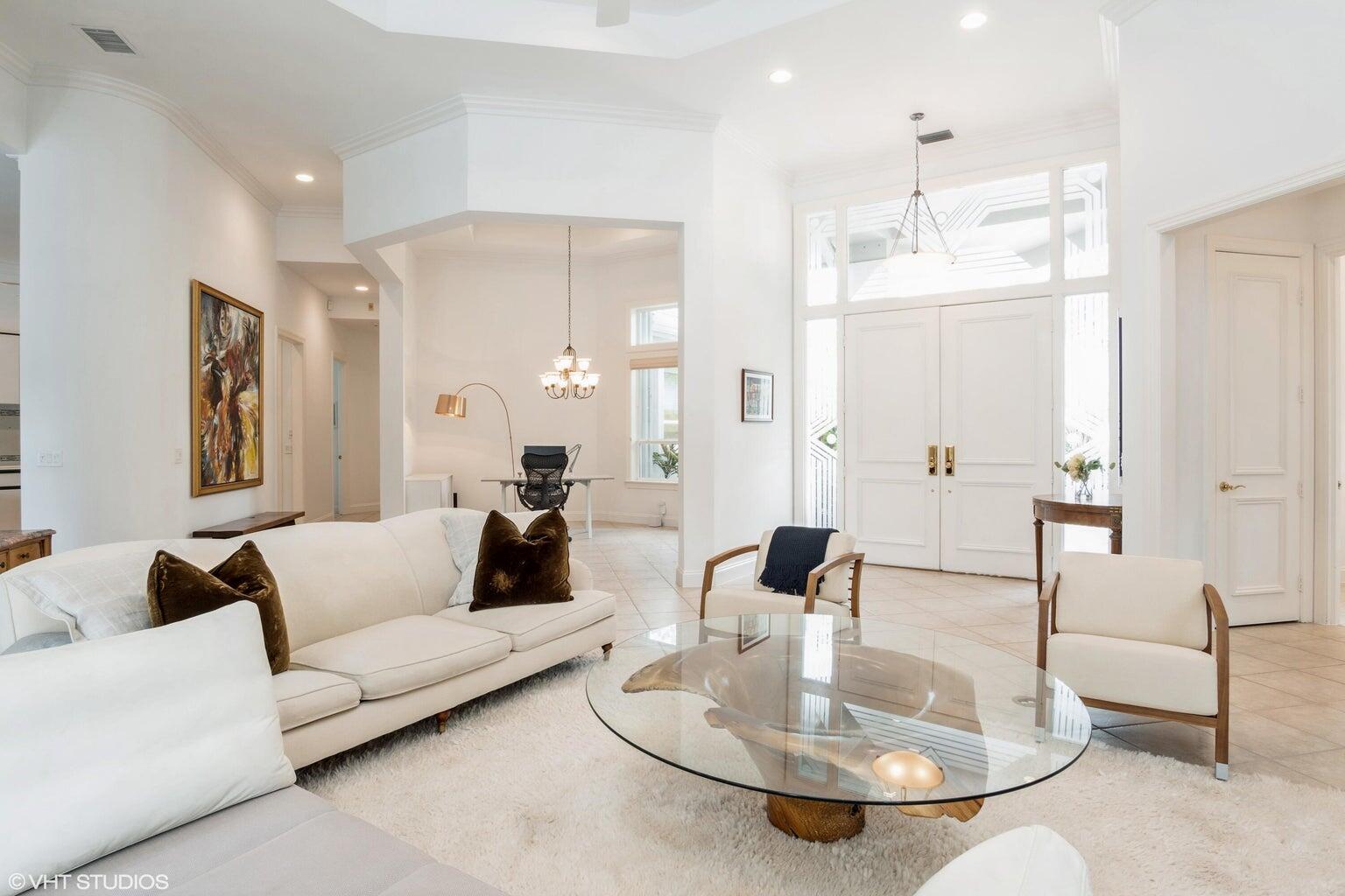 Welcome to Old Trail in Ranch Colony - Jupiter's hidden gem for golf and nature enthusiasts. Behind a paved circular driveway, this 3-bedroom, 2.5-bath single-family home offers the perfect balance of privacy and comfort. Located in a 24/7 manned-gate community, residents enjoy both peace of mind and the relaxed charm of wide-open green spaces. The home features a lush tropical entryway, soaring ceilings, and elegant crown molding. The whole-house generator and 2018 roof provide convenience and comfort, while the screened pool and private backyard invite you to unwind and enjoy beautiful sunsets. Golfers will enjoy the short golf cart ride to Jonathan's Landing's Old Trail Courses as well as the Dye Preserve Golf Course. I-95/Turnpike, beaches, and restaurants are a short ride away -