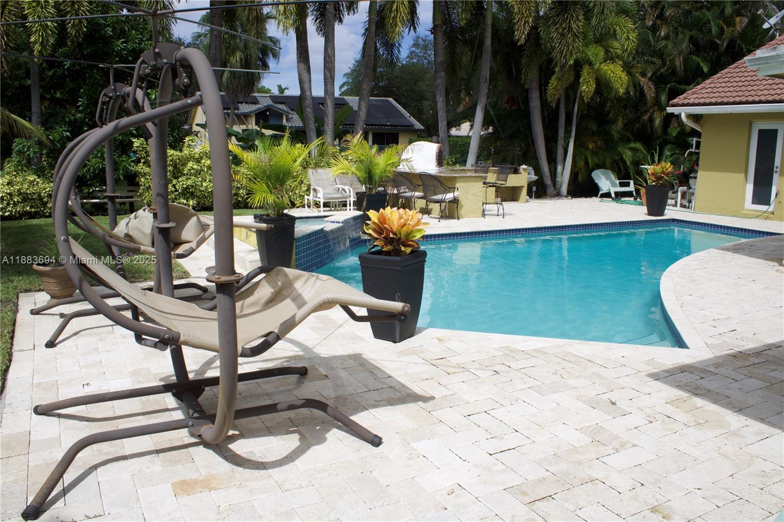 Luxury, comfort, and functionality. Step into the oversized master suite featuring a spa-like bathroom with a supersized shower, ceiling-mounted rainfall system, soaking tub, and a custom-designed walk-in closet with divided sections for maximum organization. The home is secured with impact windows and doors, and the spacious kitchen is built for gathering—complete with a large counter bar that invites family and friends to come together. Enjoy the beautifully designed backyard oasis with a sparkling pool, waterfall feature, and serene waterfront views. Feel the refreshing breeze as you relax outdoors, or fire up the built-in brick pizza oven for the ultimate entertaining experience. Granite countertops throughout add the perfect finishing touch to this already impressive home.