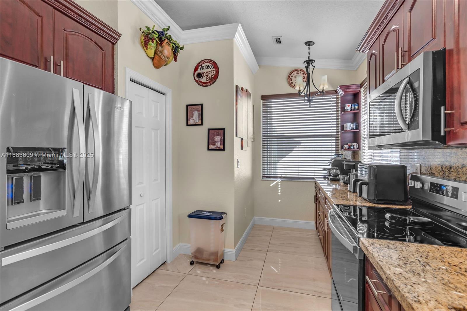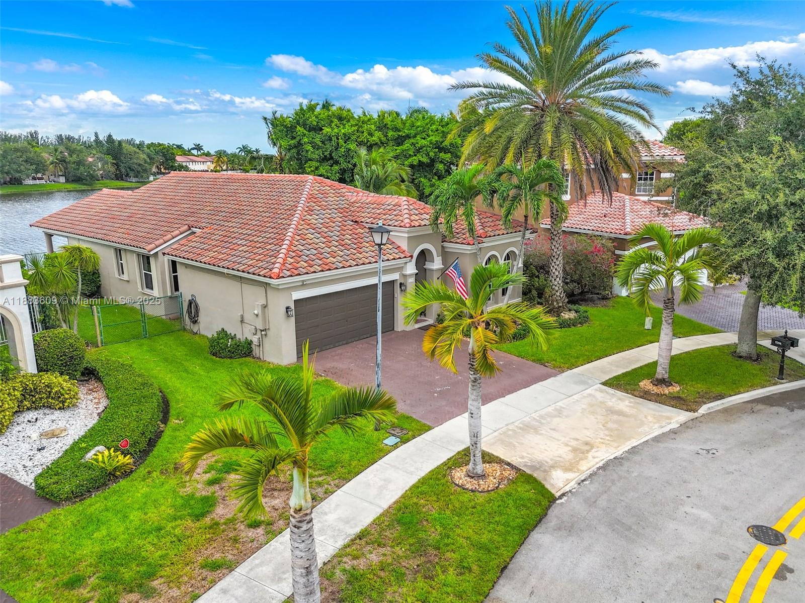 This beautifully remodeled single-story lakefront home is tucked away on a peaceful street and sits on an oversized lot of nearly 10,000 sq. ft. with more than 80 feet of water frontage, offering stunning sunset lake views, & a fully private yard with a pool, spa, & custom covered terrace ideal for entertaining. Featuring 4 bedrooms & 3 bathrooms, the home offers a split floor plan, high ceilings, a remodeled kitchen & bathrooms, oversized porcelain tile floors, crown molding, recessed lighting, & spacious living, dining, & family rooms. Large primary suite, walk-in closet, upgrades such as a newer tile roof, accordion shutters, & a 2-car garage add peace of mind. Somerset Country Club/Vizcaya is a 24-hr gated community, easy access to I-75, the Florida Turnpike, shopping, and dining.