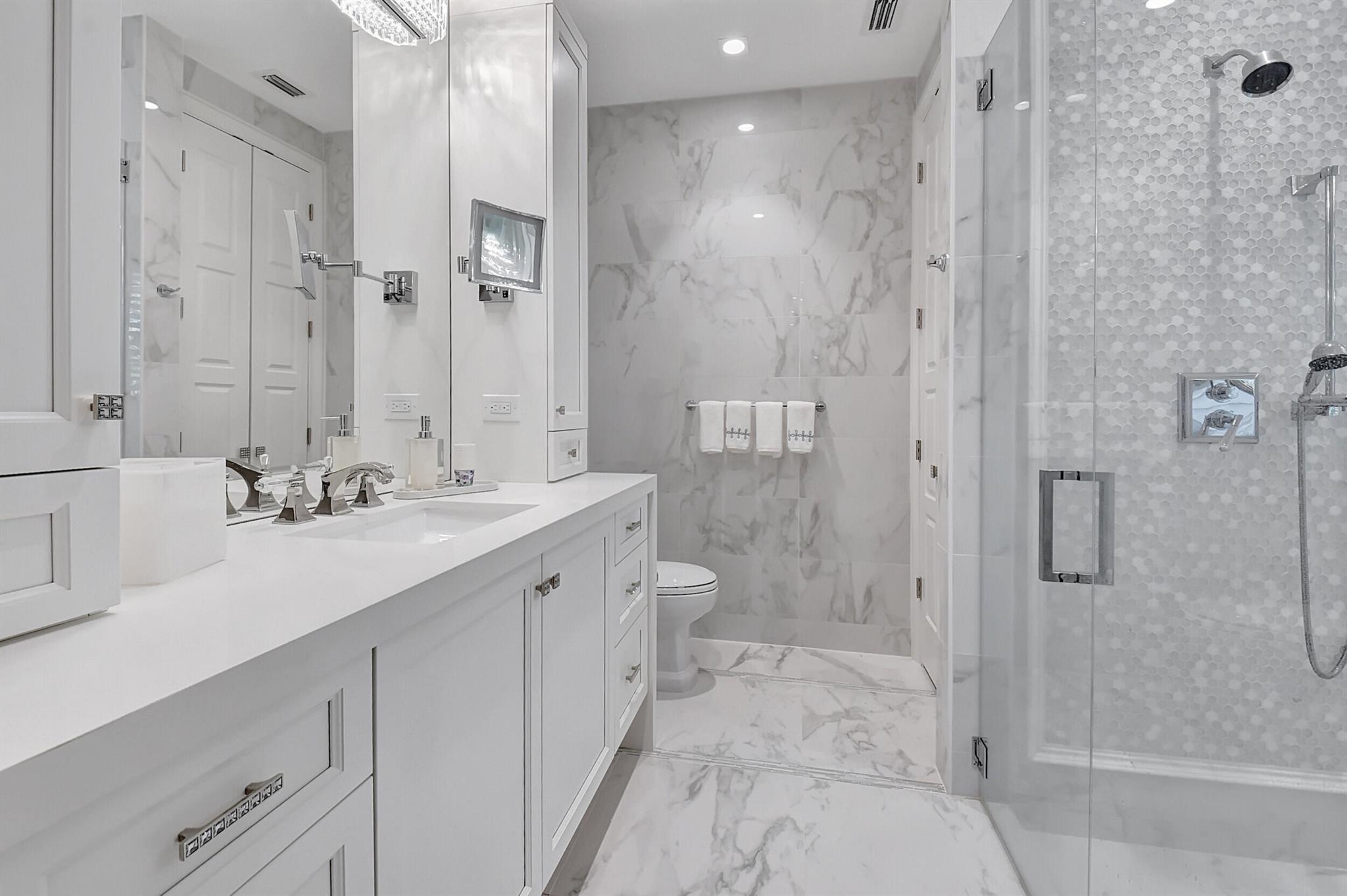 FULLY RENOVATED two-story, 3 bedroom + office home in St. Andrews Country Club! The interior is light and bright, with a wide open floor plan and custom designer details throughout. Gourmet kitchen with built-in Miele appliances and Sub-Zero refrigerator. Master suite has spacious closets and 2 master bathrooms. The office is appointed with custom built-in cabinets and desk. Outside is a large patio area with resort-style pool with spa, abundant lawn space, and lake views. Located in the Fairway Terrace section with concierge services.