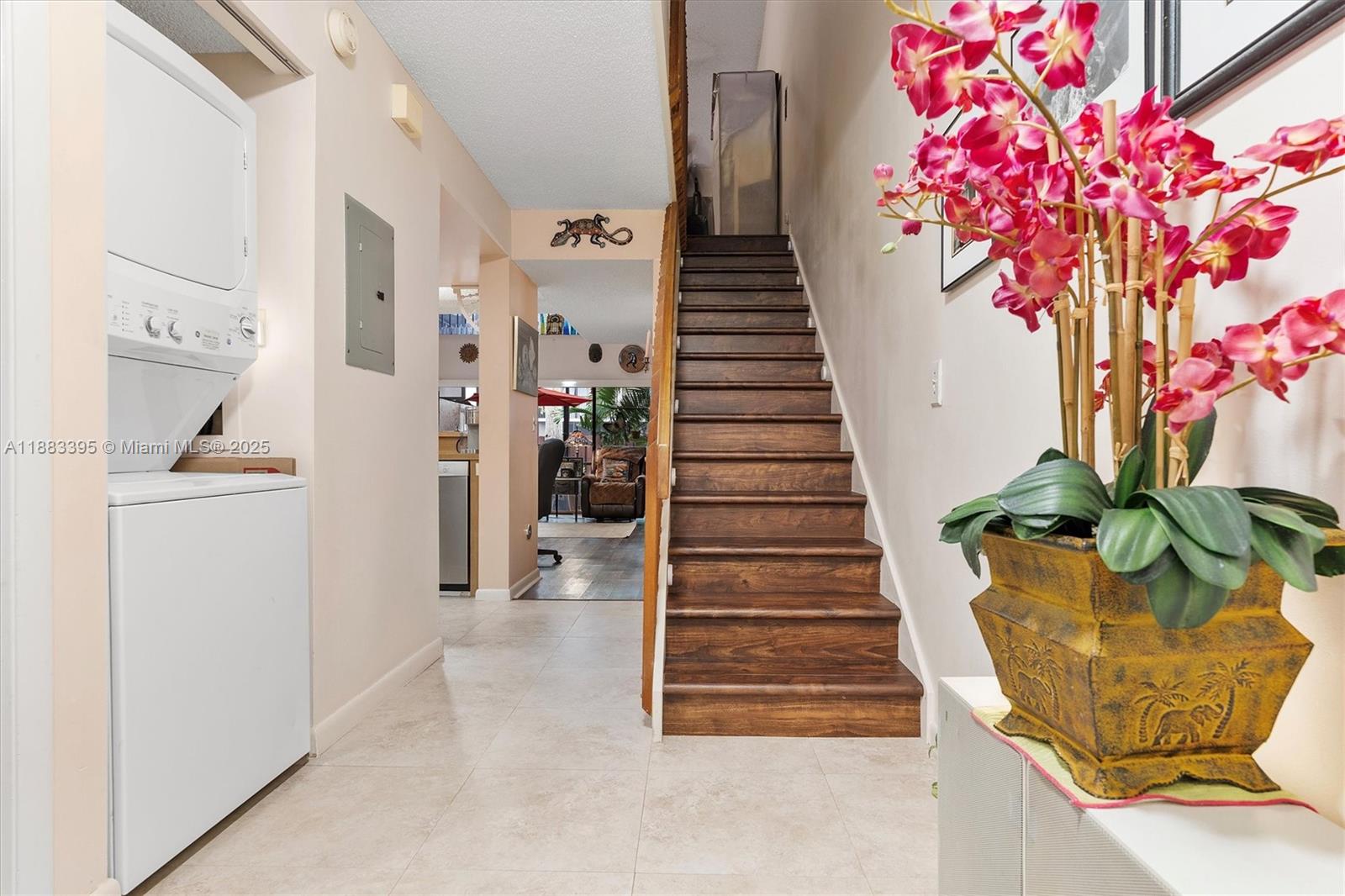 Flooded with natural light from a 2-story screened porch, this 2-bed/1.5-bath plus loft townhome impresses with striking loft-style windows. Renovated kitchen with stainless steel appliances. The main living space features tile and luxury vinyl flooring in neutral tones that flow seamlessly throughout. One-bedroom and half bathroom on 1st floor. Primary suite with 2 large closets, full bathroom, plus a versatile loft provides comfort and flexibility on 2nd floor. Updates include A/C 2021, newer water heater, washer & dryer. 2 parking spaces. HOA covers exterior & roof. Amenities include pool, basketball court, playground, & guest parking. Minutes to Griffin Rd shops and dining. Close to all major highways, schools & universities. FHA/VA. Mortgage savings may be available for buyers of this listing.