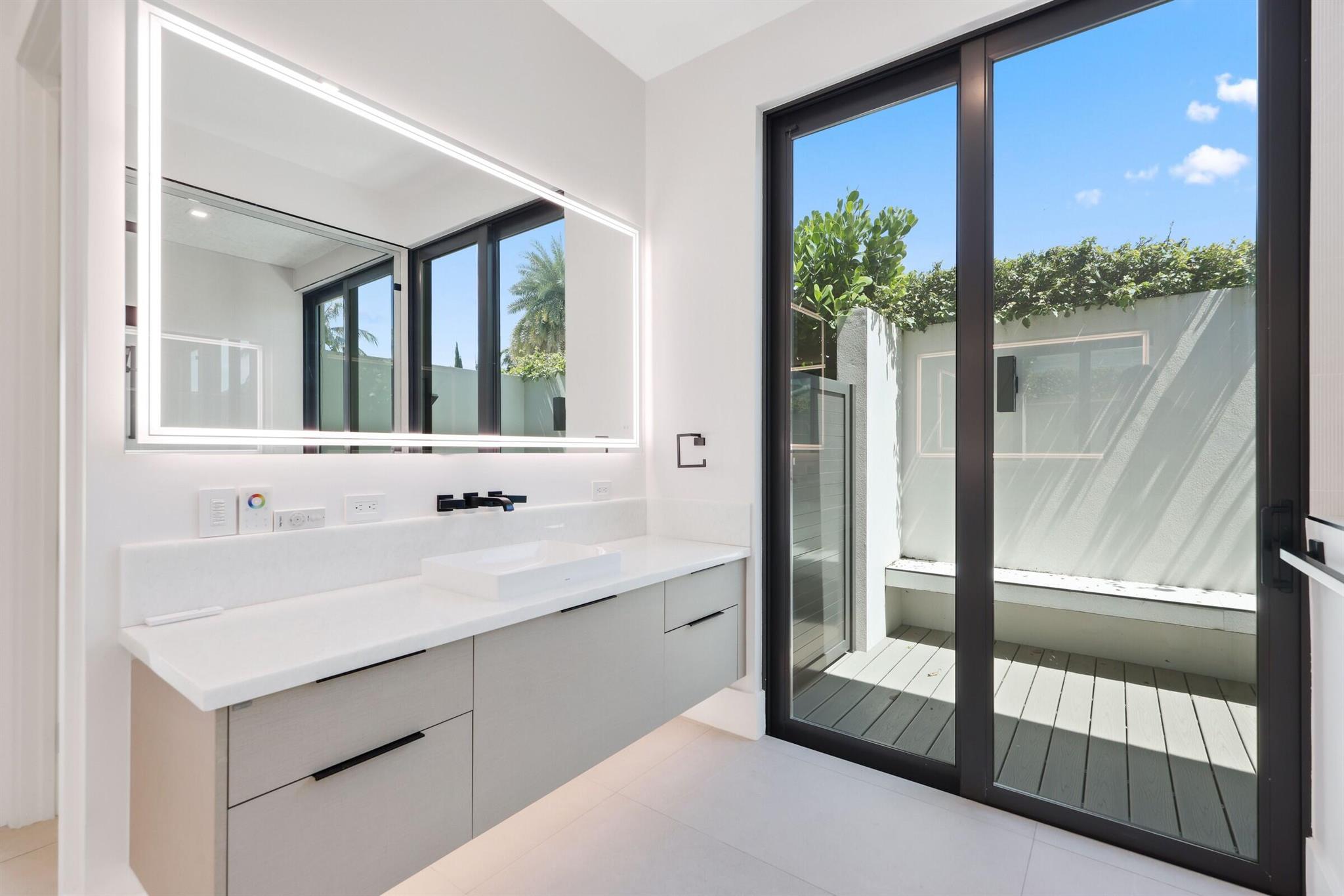 Welcome to your private waterfront oasis in the heart of Delray Beach. Built in 2020 and designed by the late, world-renowned architect Richard Jones, this extraordinary estate offers a seamless blend of modern design, soaring ceilings, and refined coastal living.From the moment you enter, the grand glass staircase and dramatic entryway set the tone for what awaits inside. The home features six spacious bedrooms, six and a half bathrooms, and over 4,500 square feet of carefully crafted living space. Walls of glass invite natural light throughout, while open living and dining areas create the perfect environment for both everyday living and large-scale entertaining.The gourmet chef's kitchen is outfitted with premium finishes and professional-grade appliances, serving as the heart