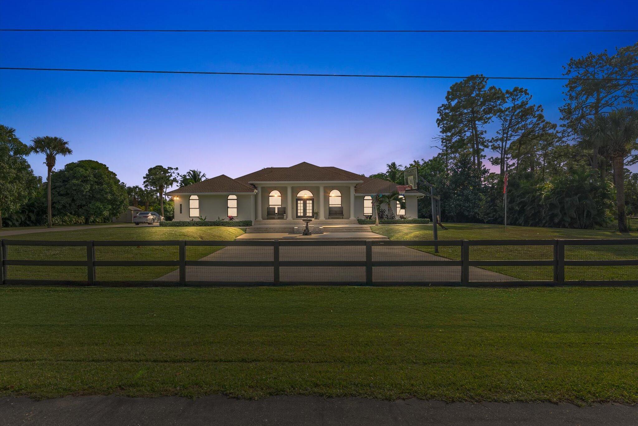 Perfectly Located on the North end of The Acreage on a paved road, fully fenced with gated entry, right off of Northlake Blvd, this exquisite 1.4 Acre estate offers the perfect blend of privacy, space, and luxury. This Freshly painted, stunning residence boasts Beautiful Marble floors, Vaulted Ceilings, 4 spacious bedrooms, an office/den, indoor laundry room, a 3 Car Garage with separate side loader, encompassed in an abundance of comfortable living space. A wealth of natural light highlights this thoughtfully designed Split Floor Plan seamlessly flowing into the spacious Open Floor Plan of the living and dining areas, offering a separated bonus room right off of the Master Bedroom creates a warm, yet sophisticated ambiance throughout.